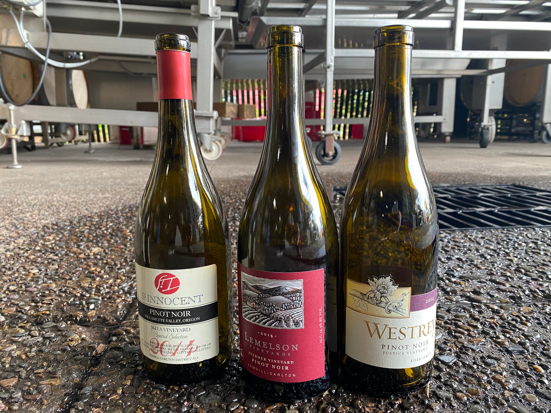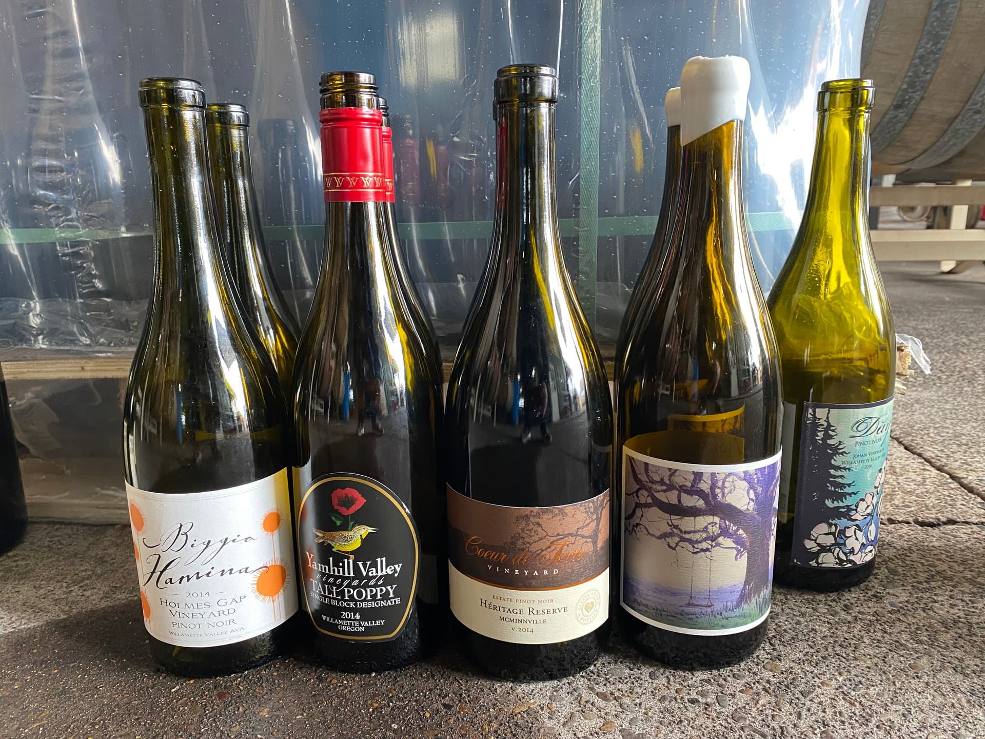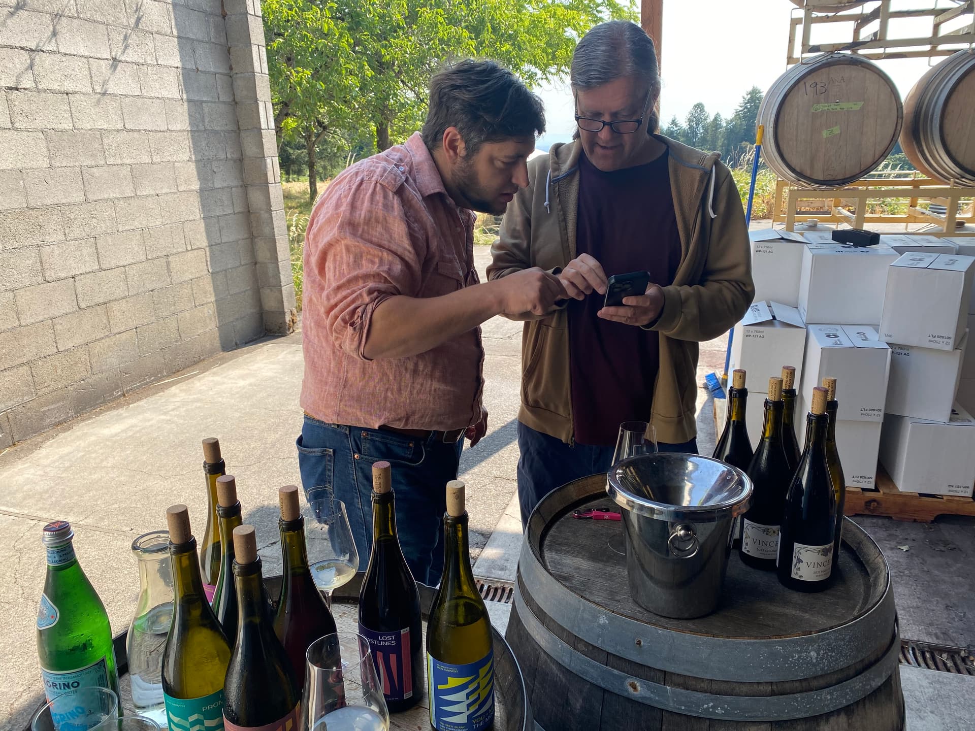 My first stop was to see Saul Mutchnick and Vincent Fritszche at their current facility on SE Eola Hills Road. I didn’t realize until getting there that they share their current space with Will Hamilton, who greeted me at the door as he was starting another group’s tasting (poor planning on my part as I had an appointment with Will the next day). Between preparing to bottle 2023s next month and plans for them to move after Vincent bought a place, the cellar was a bit of a mess but you could tell real winemaking happens here.