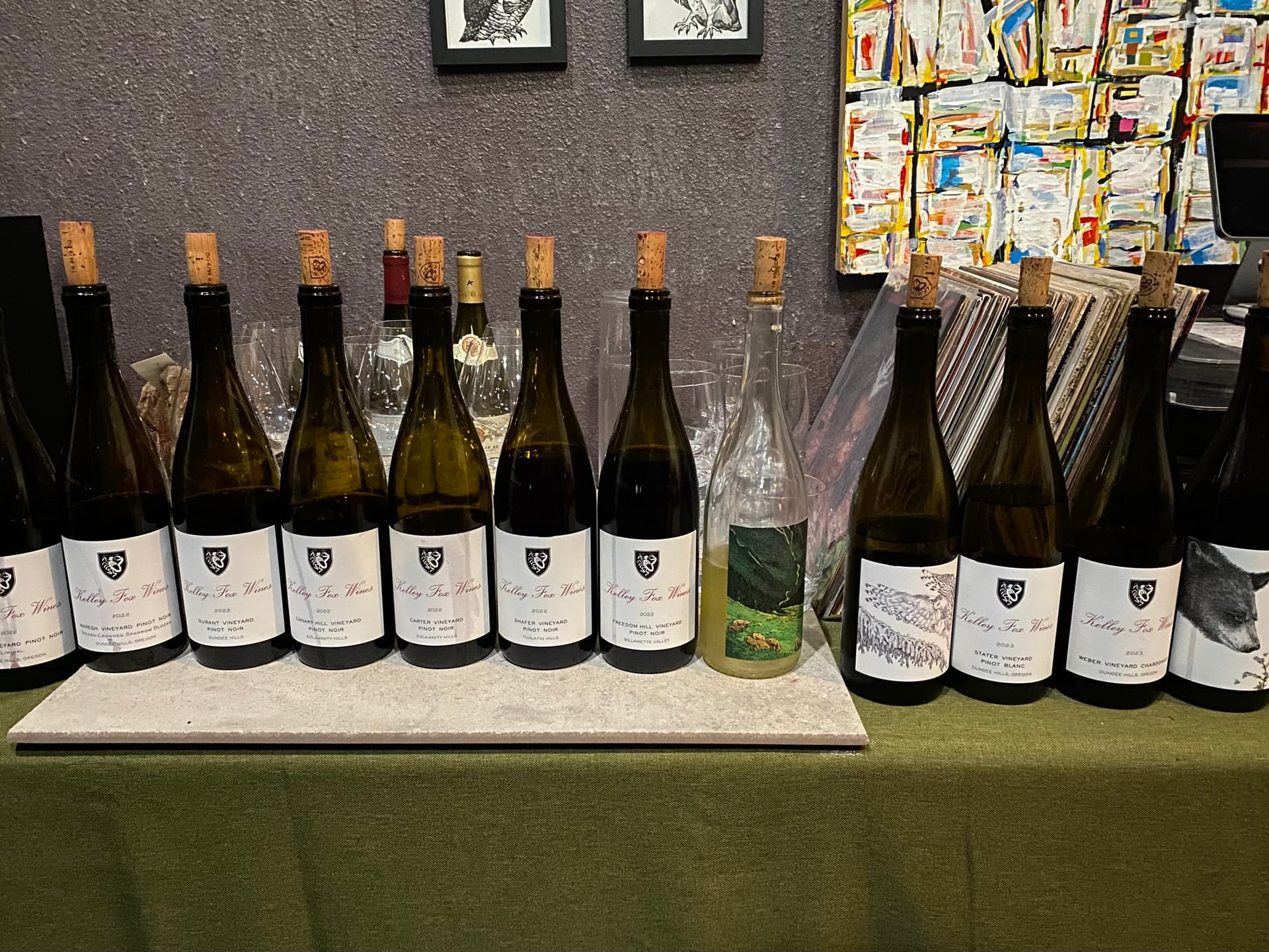 My next stop was up north in Gaston to meet with Jonathan at Kelley Fox. We went through many of Kelley’s 2022 single vineyard pinot noirs and some other odds and ends. Jonathan mentioned that Kelley is particularly proud of her 2023 whites and I can see why. Of note, she made 3 pinot blancs this vintage.