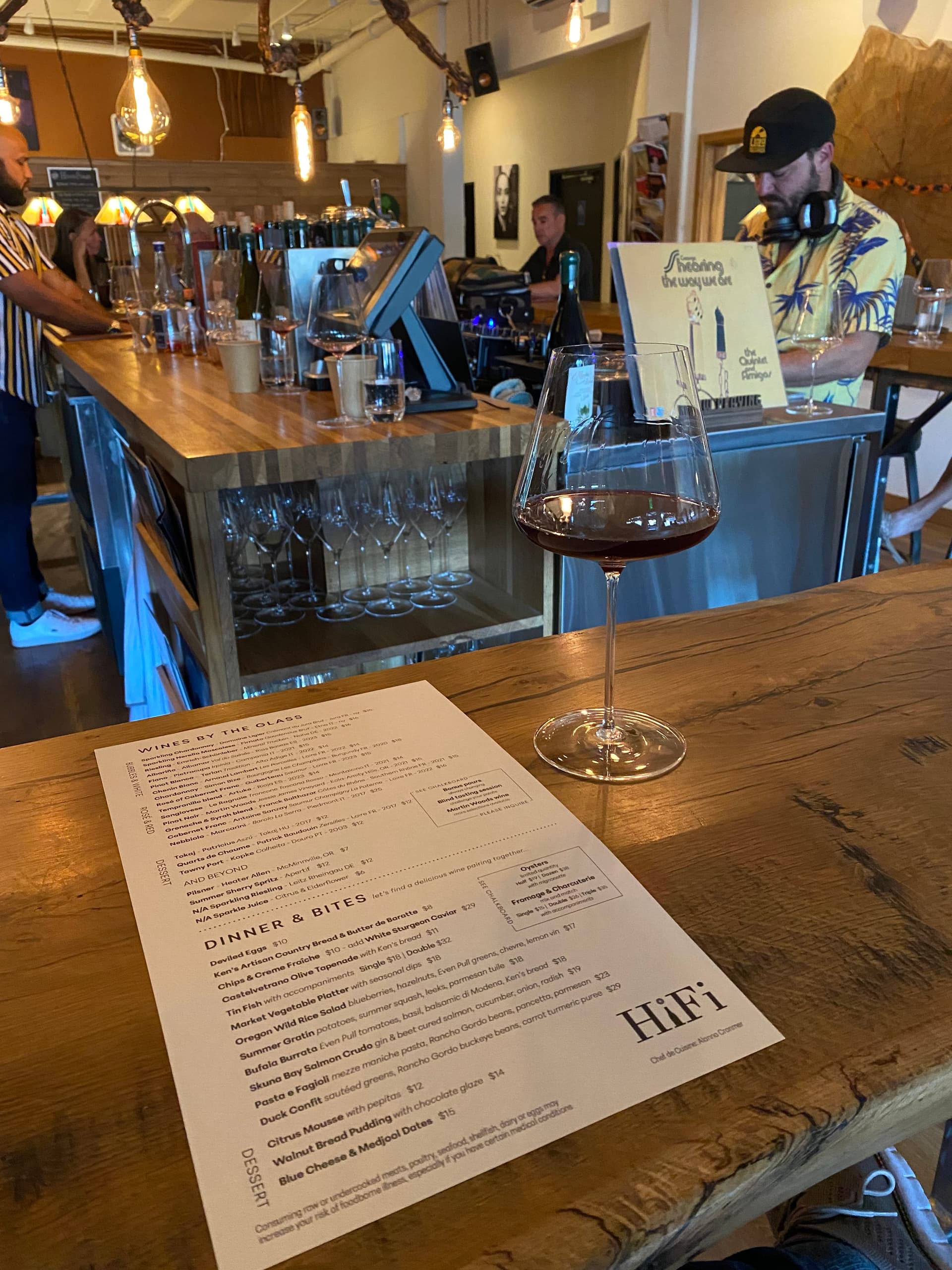After checking into my hotel, I drove down to Hi-Fi Wine Bar in McMinnville to wind down the night with some wine, snacks, and music on a great sound system.