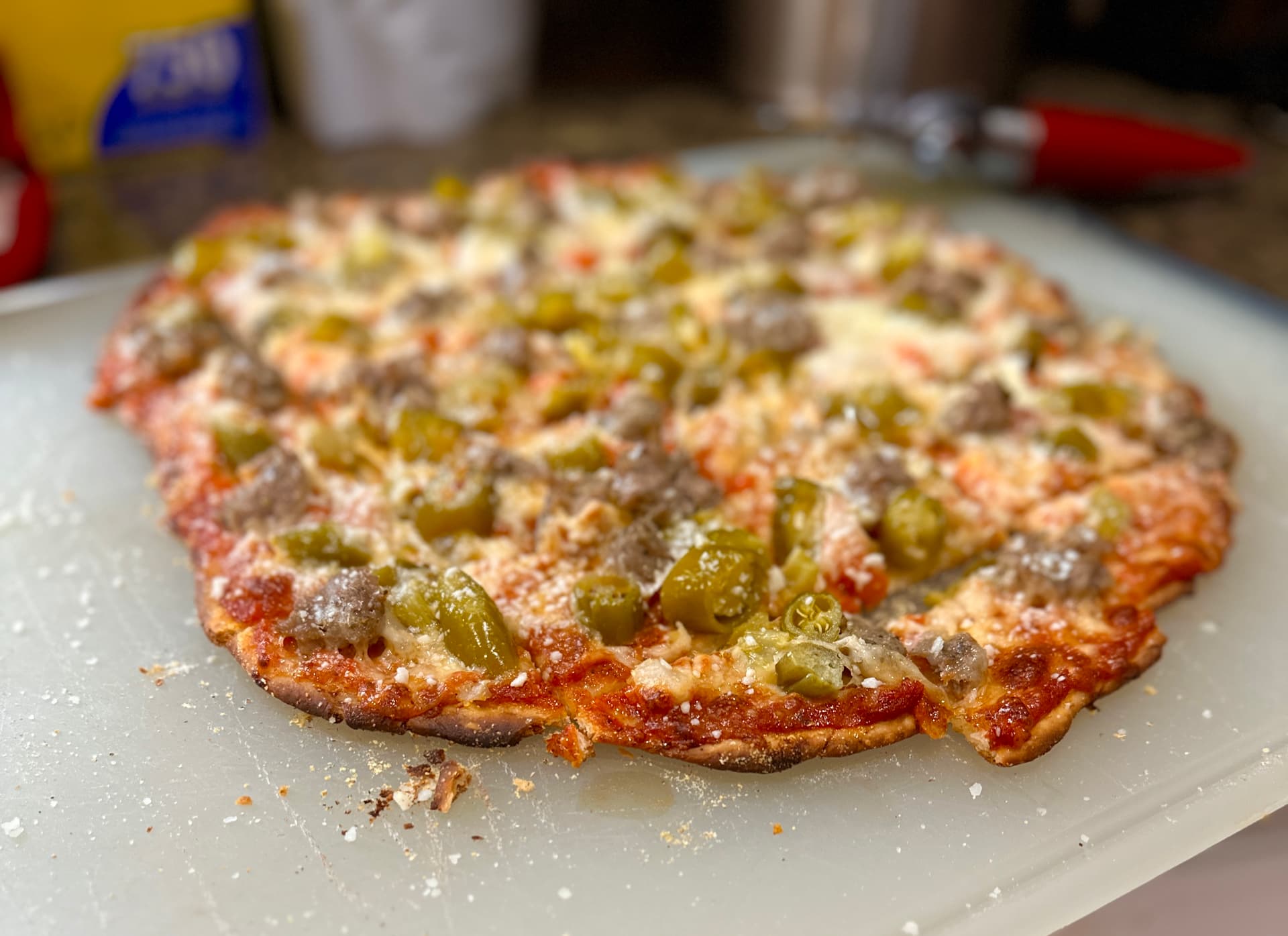 I followed Kenji’s recipe(s) in the link above pretty much exactly. Homemade sauce, sausage, dough.
