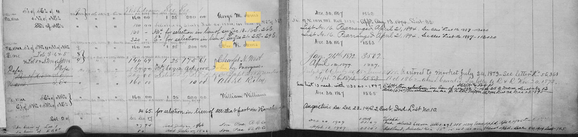 In 1878 Morgan acquires the patent to 160 acres to the west of his holding via a bounty land warrant awarded to Cornelius McLaurin