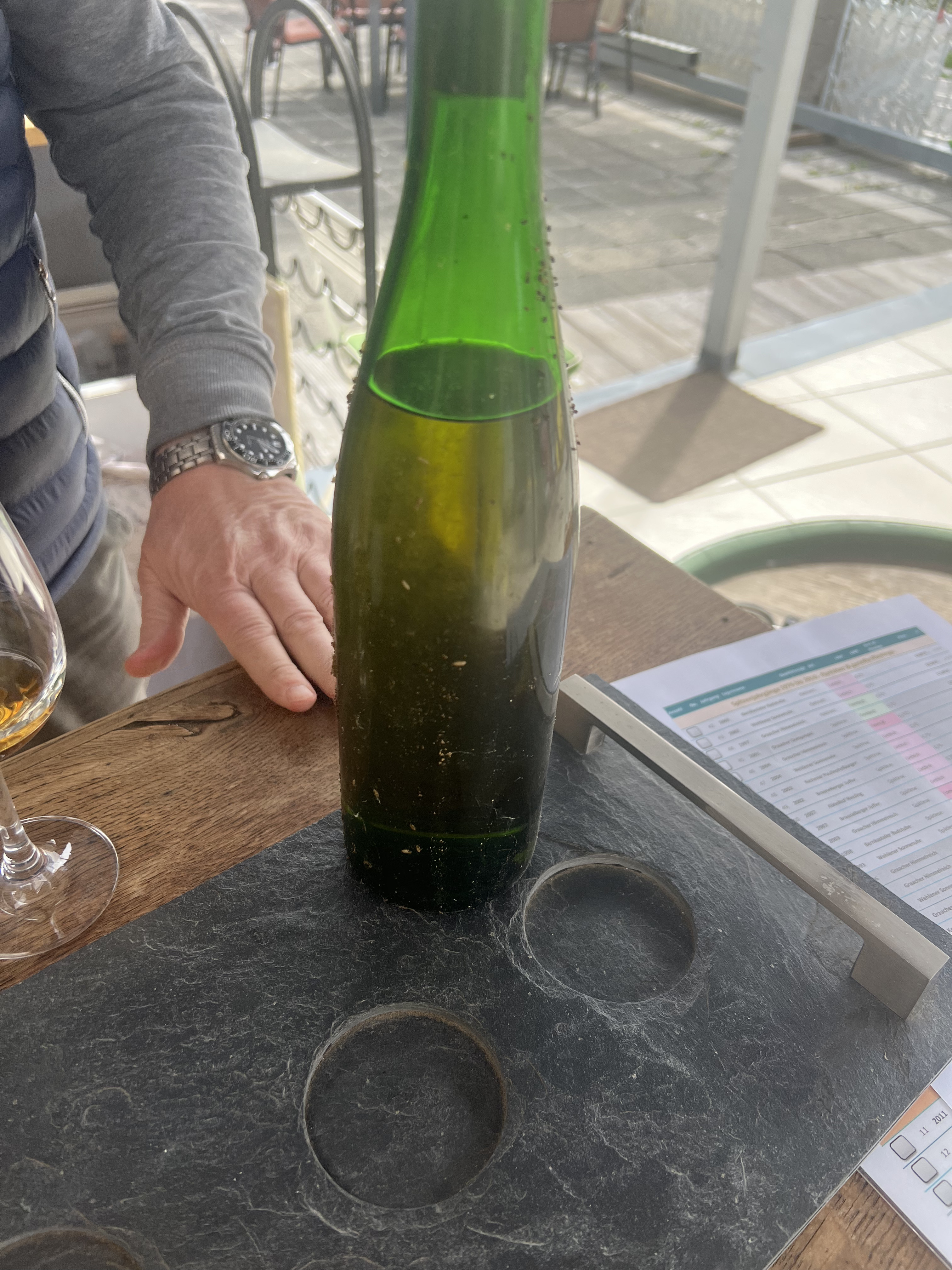 And we finished off with something I brought myself. This is the first bottle from a case in my own cellar, and this bottle has been shipped a few times now so may not be in perfect condition. I was curious how the Eisweins are developing so I thought tasting this together at the estate would be nice.