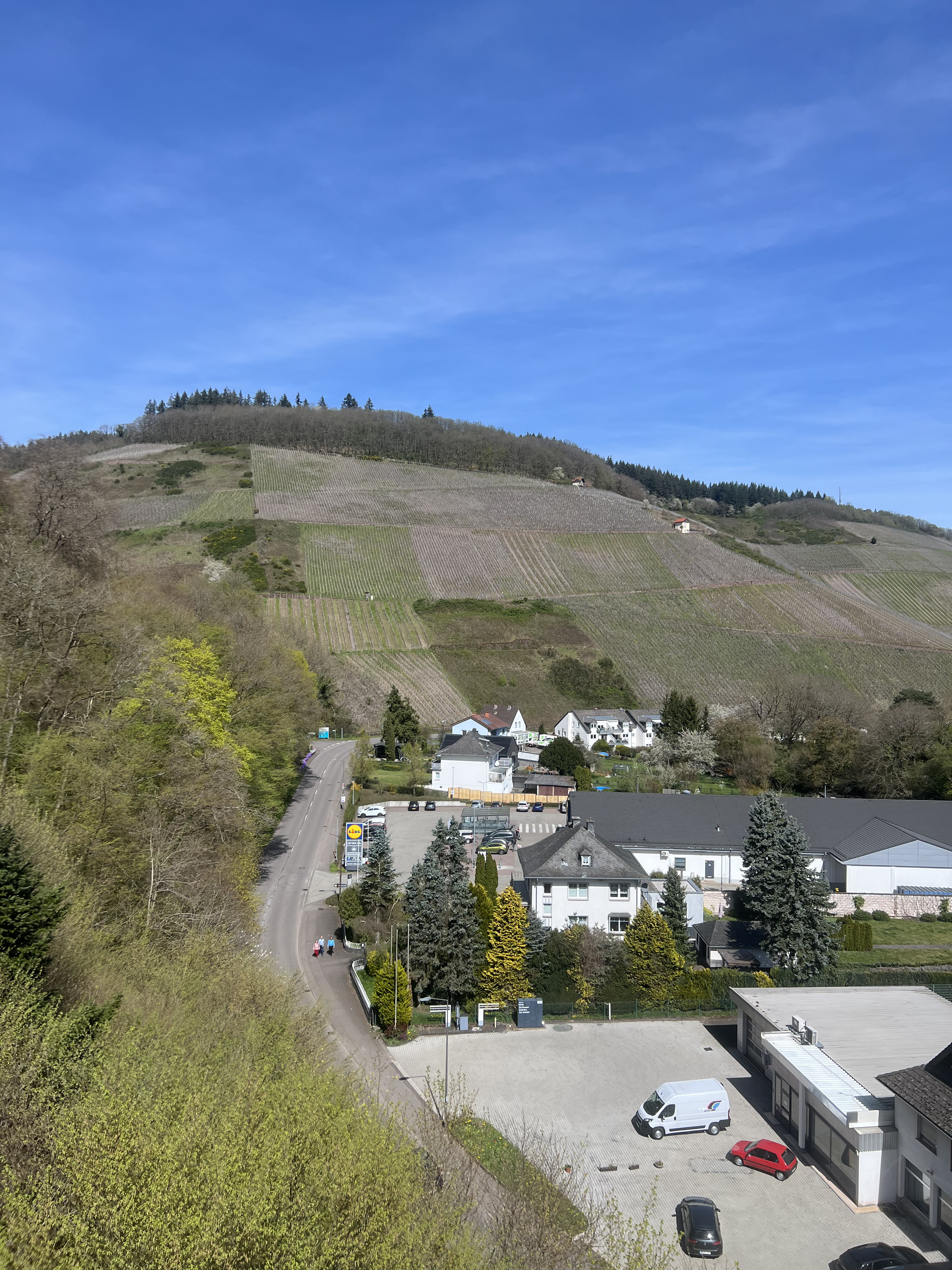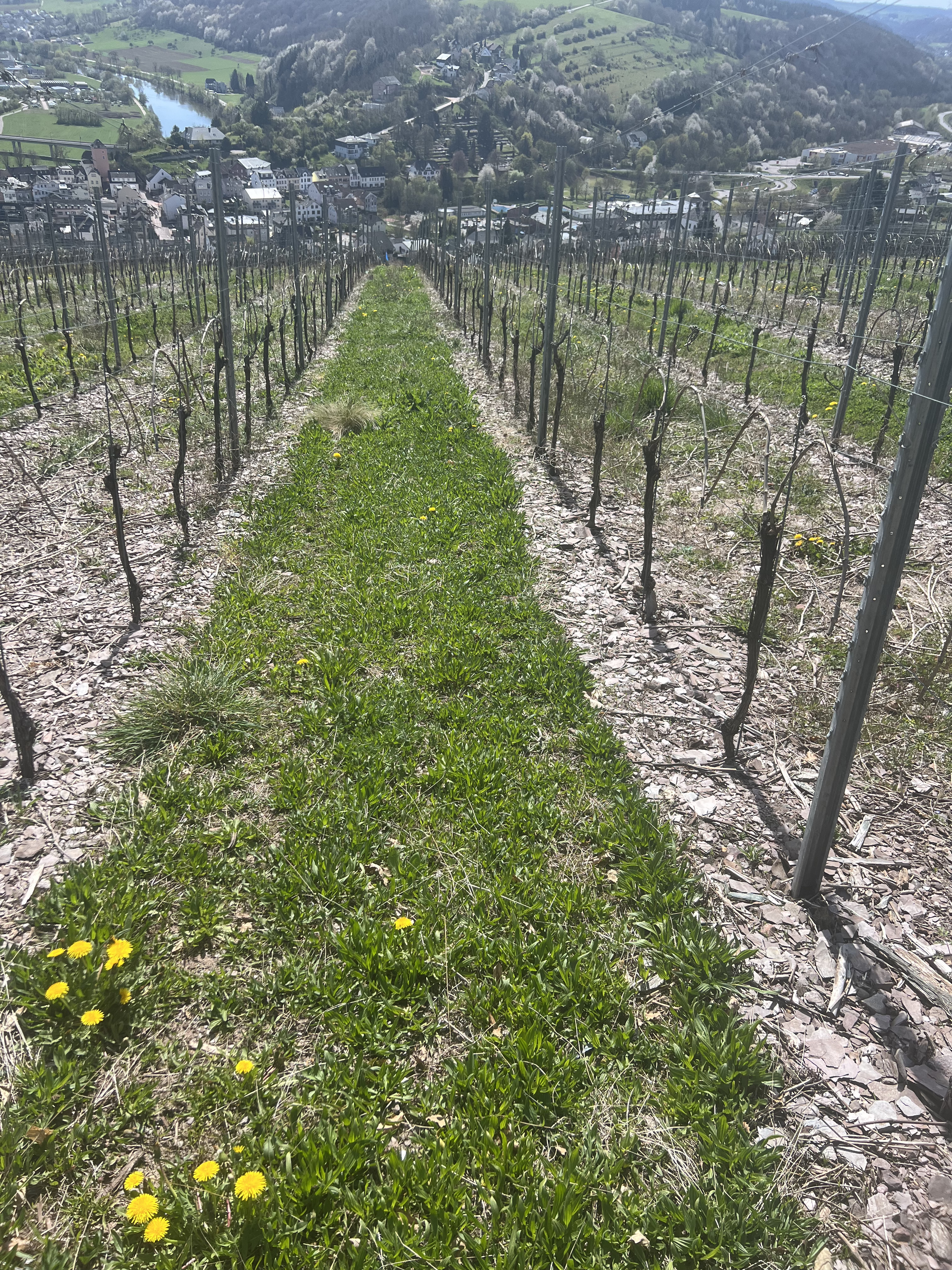Saarburg was amazingly sunny when I arrived, and I had about 2 hours until my tasting at Zilliken. I decided to hike up (hardly a hike really, since it lasted about 2 minutes…) Saarburg Castle. Very nice views. Even better views were to come from taking the Saarburger Sesselbahn (Cable Car) up the Rausch vineyards. I then hiked down the vineyards and took a look at some of the vines. No budbreak yet.