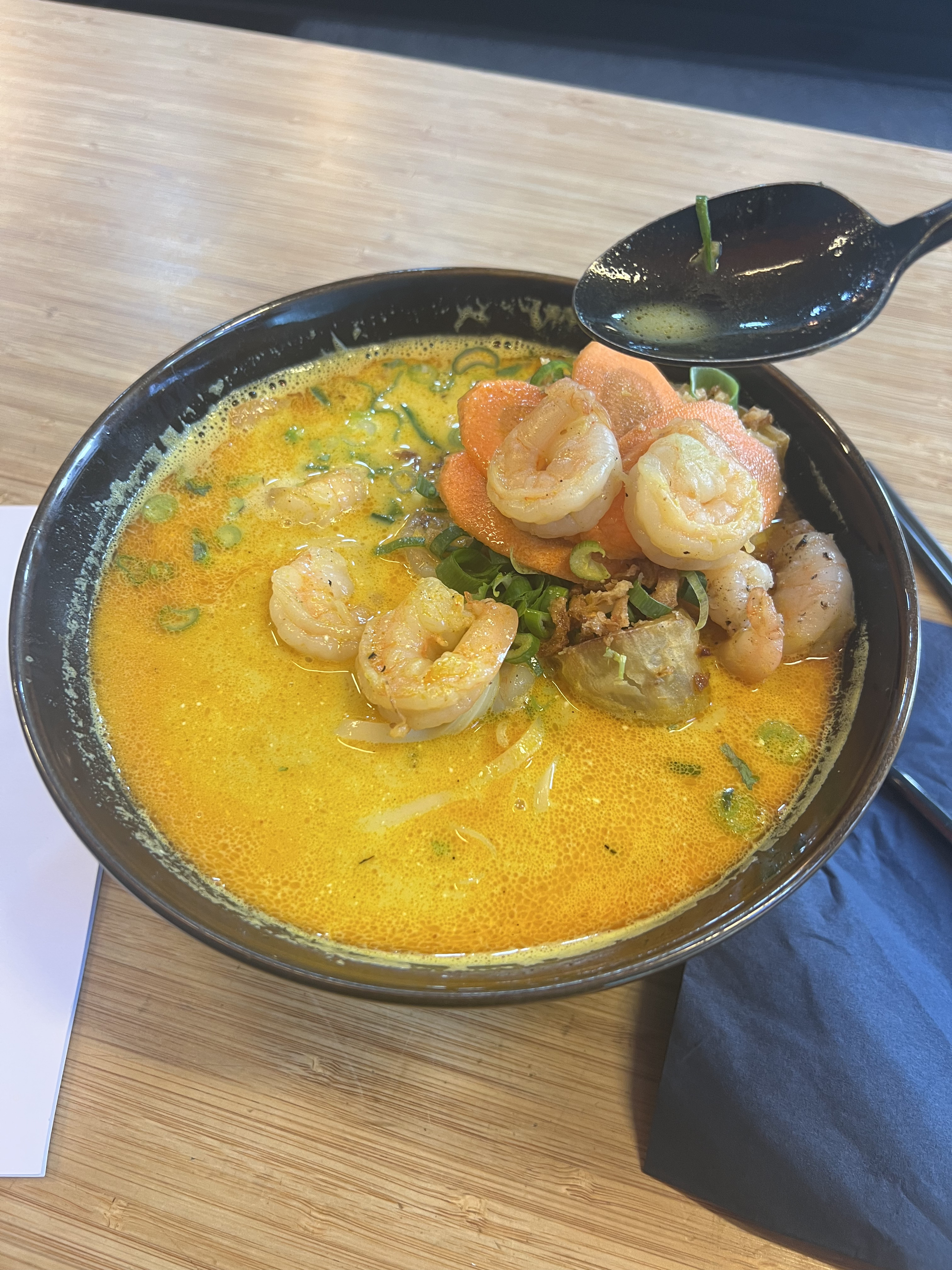 I ordered the large curry soup noodle with shrimp and the Wan Tans. Coming from someone who is Chinese, I love the Wan Tans (though I usually spell it as Wontons). The curry soup noodle was also wonderful and fresh and I finished it all, but in my opinion could use just a touch more salt.