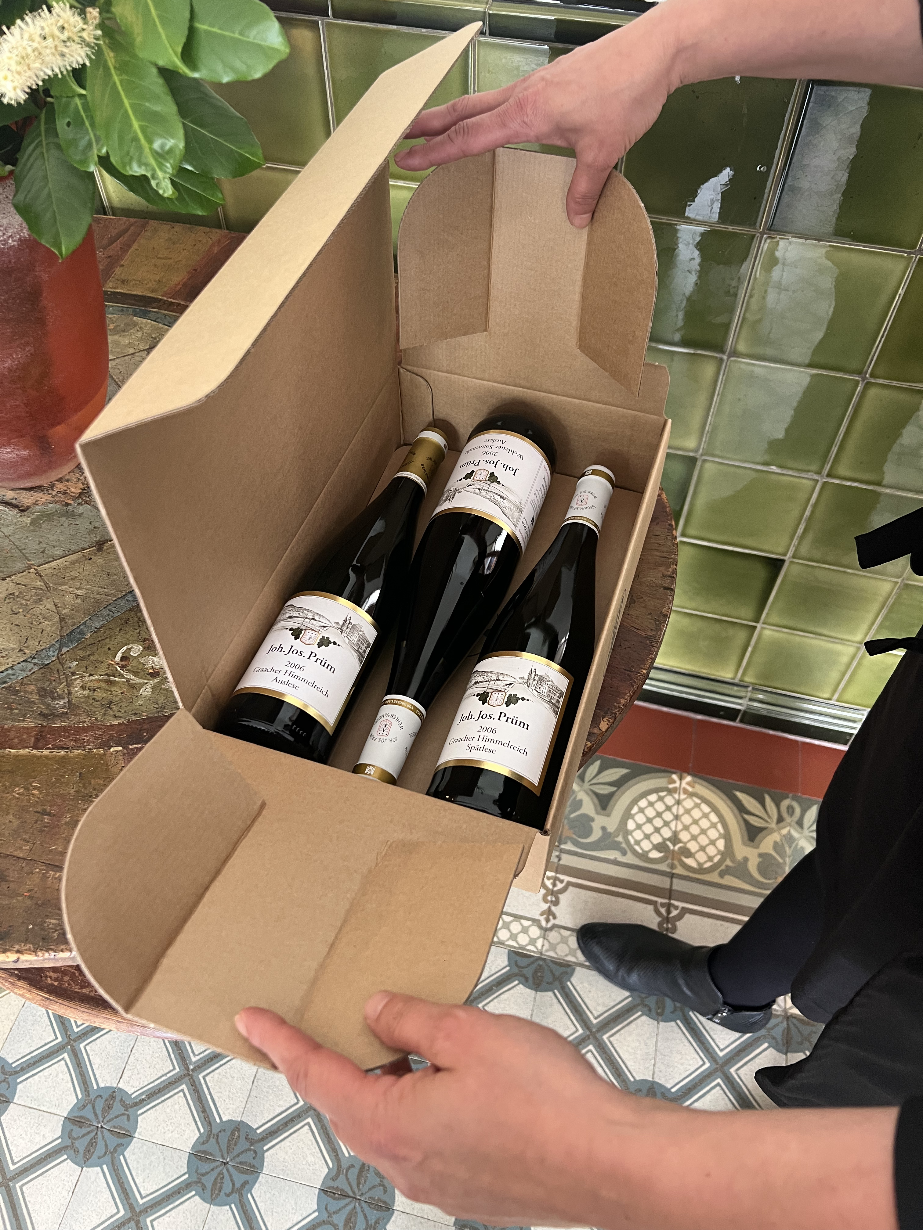 My tasting was a very intimate one hosted on a small table in the tasting room which had an amazing view over the Wehlener Sonnenuhr. I was initially met at the door by Amei Prüm, and welcomed in by Carine Patricio and Dr. Manfred Prüm, who are some of the most hospitable people that I met so far. Originally, we were supposed to finish at 1PM since they were off to Nahe for a tasting at Schlossgut Diel at 4PM, but we went on for another hour! When I mentioned that I couldn’t get a reservation at either of the 3 star restaurants, Carine very kindly called Schanz and was able to convince them to add an extra table for me! Thank you Carine!!! She and Manfred were also so kind to gift me with a case of their 2006s from Graacher Himmelreich (Spatlese, Auslese, Auslese GK). It is such a shame that I can’t take these home with me because of my luggage limit…