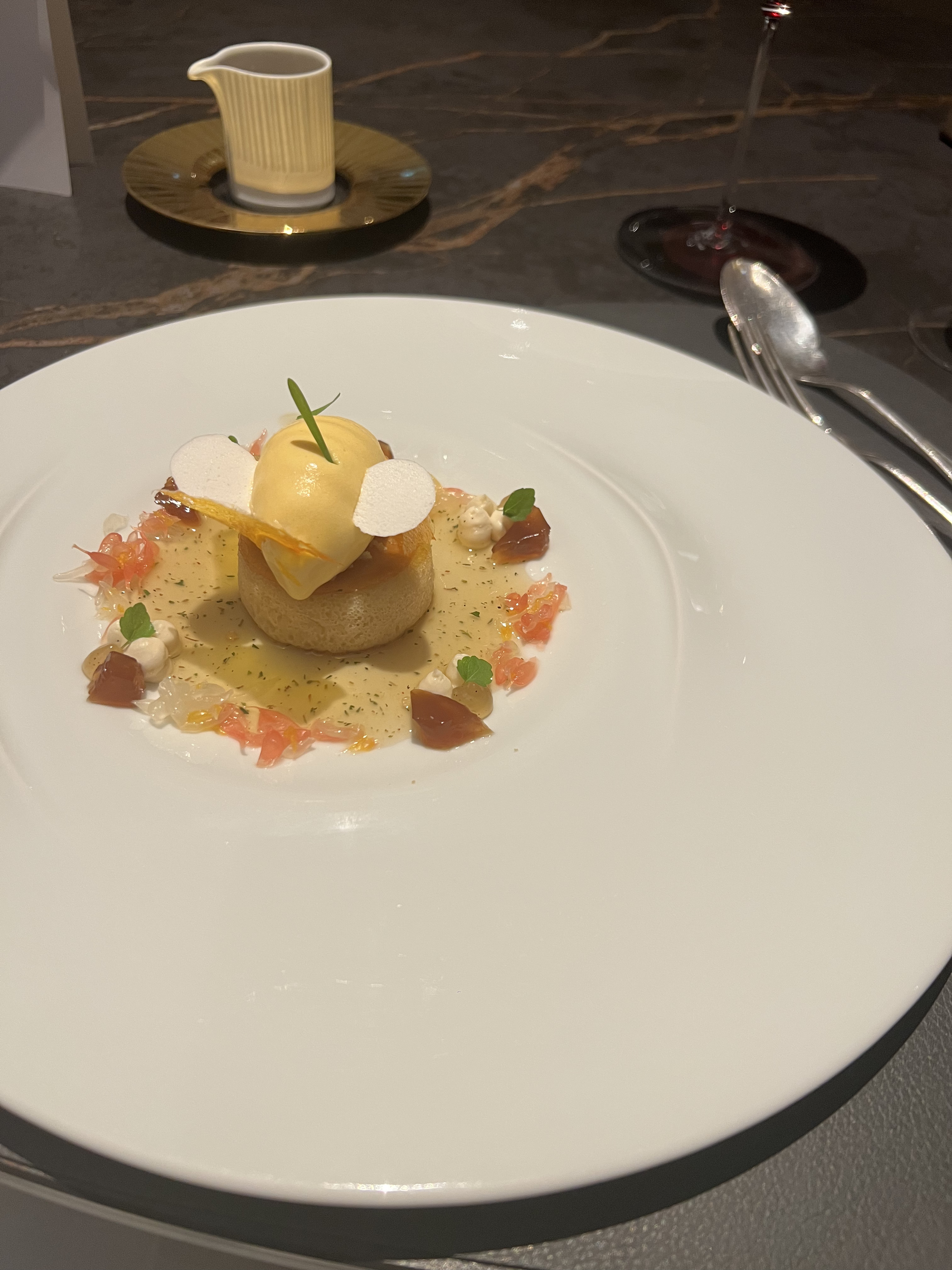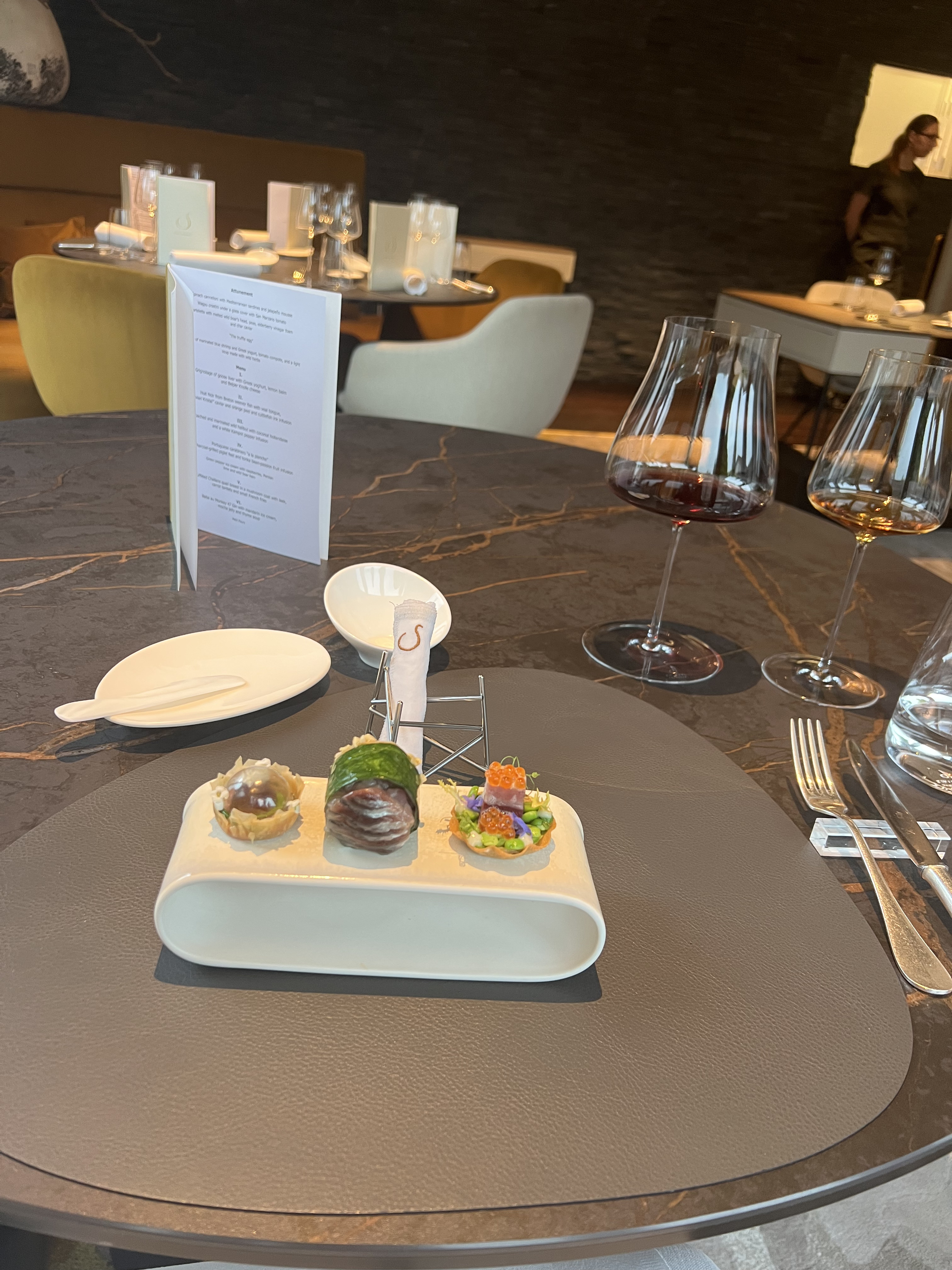 The head chef Thomas Schanz comes from a French culinary background, previously working as sous chef at Waldhotel Sonnora before 2012. However, his dishes don’t seem to be completely belonging to traditional French cuisine, and I can find some Asian and Nordic influences. His tasting menu is extremely innovative, with a very bold use of various different infusions and sauces, from tonka bean & passion fruit to cardamom to orange peel.