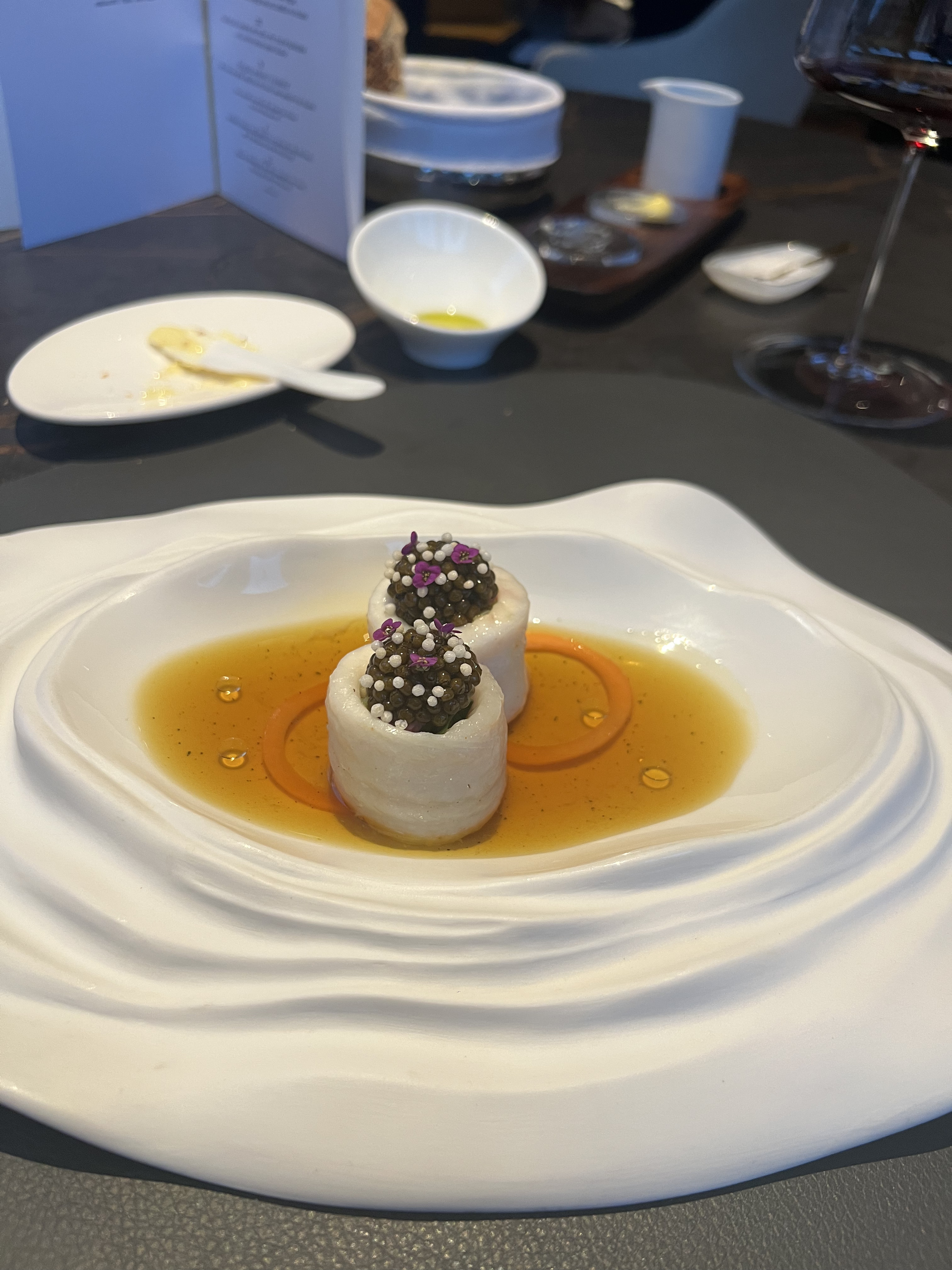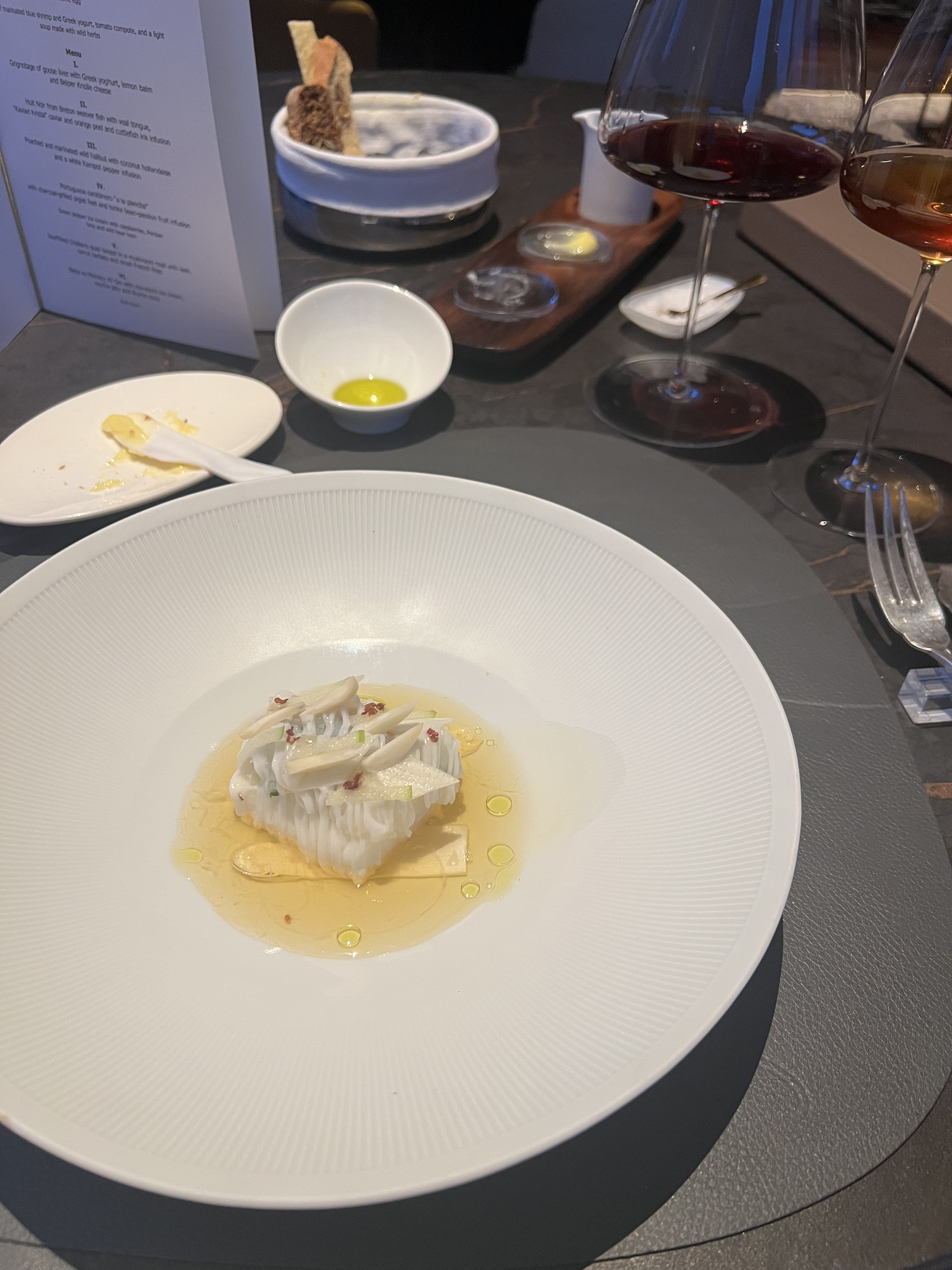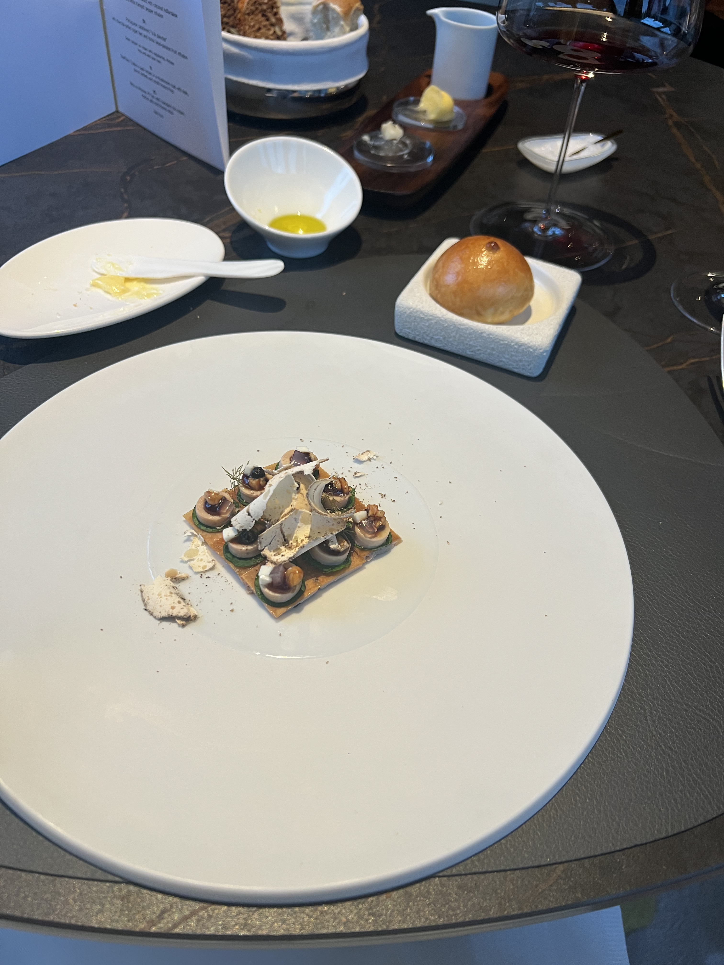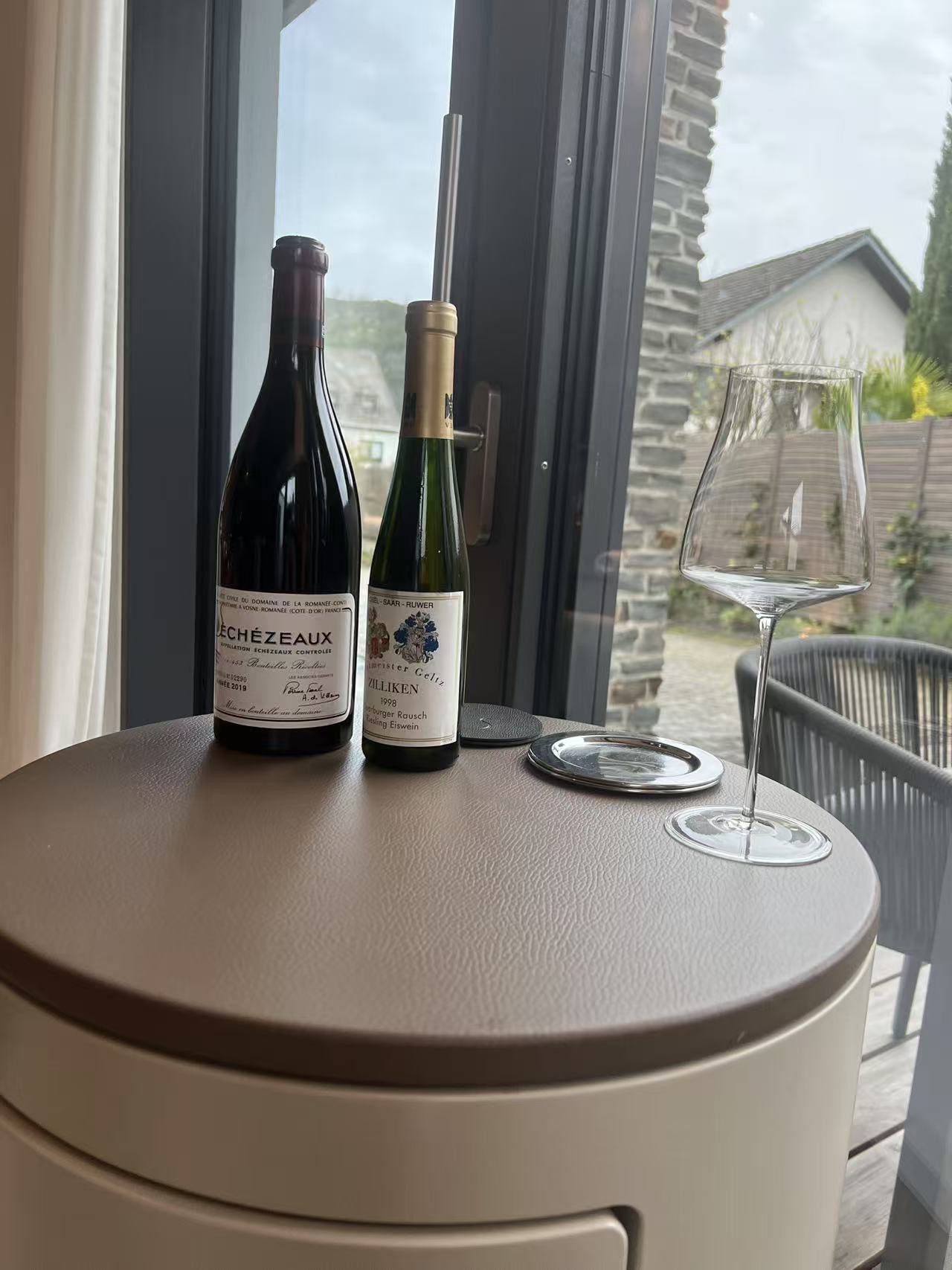 Finally, after Schloss Lieser, I went to Schanz for dinner. Thanks again to Carine for arranging this! Janine, the head sommelier at Schanz, welcomed me. She is super knowledgeable and curates a great list, which she calls her “bible”. I opened a 2019 DRC Echezeaux, which I think is a wine in an odd phase right now. Even then, its potential is not too high–DRC isn’t really the best producer for Echezeaux. I opened this knowing it wouldn’t be amazing, but I was curious how the 19s are doing, and the price was too good to resist–Janine says that she wants to make it an attractive option on the wine list, and she has succeeded!