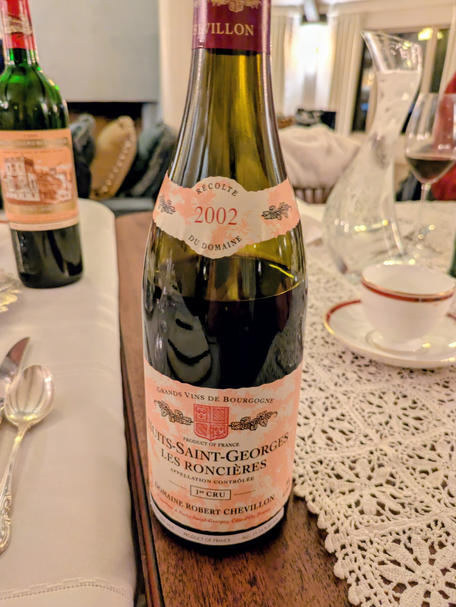 2002 Dom. Robert Chevillon ‘Les Roncieres’ 1er [Nuit Saint Georges] I enjoyed this greatly, finding it to show ripe raspberry jam types of flavors. If blinded, I would have thought this to be New World and aging very well.