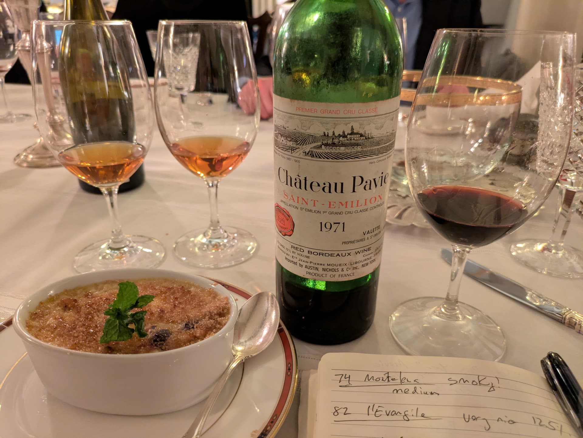 1971 Pavie [St Emilion] Still alive and showing smoky, tertiary character like forest and mushroom.