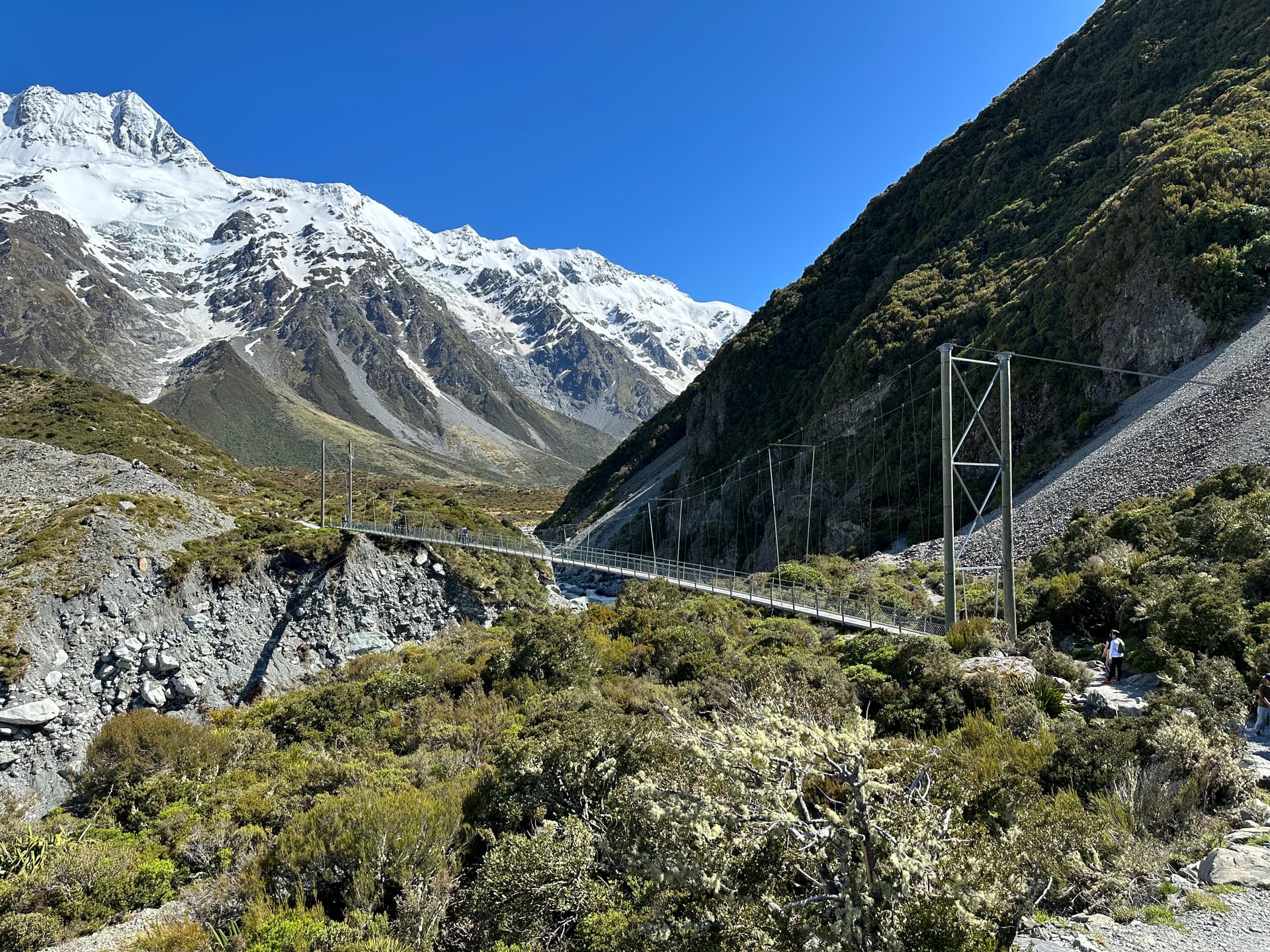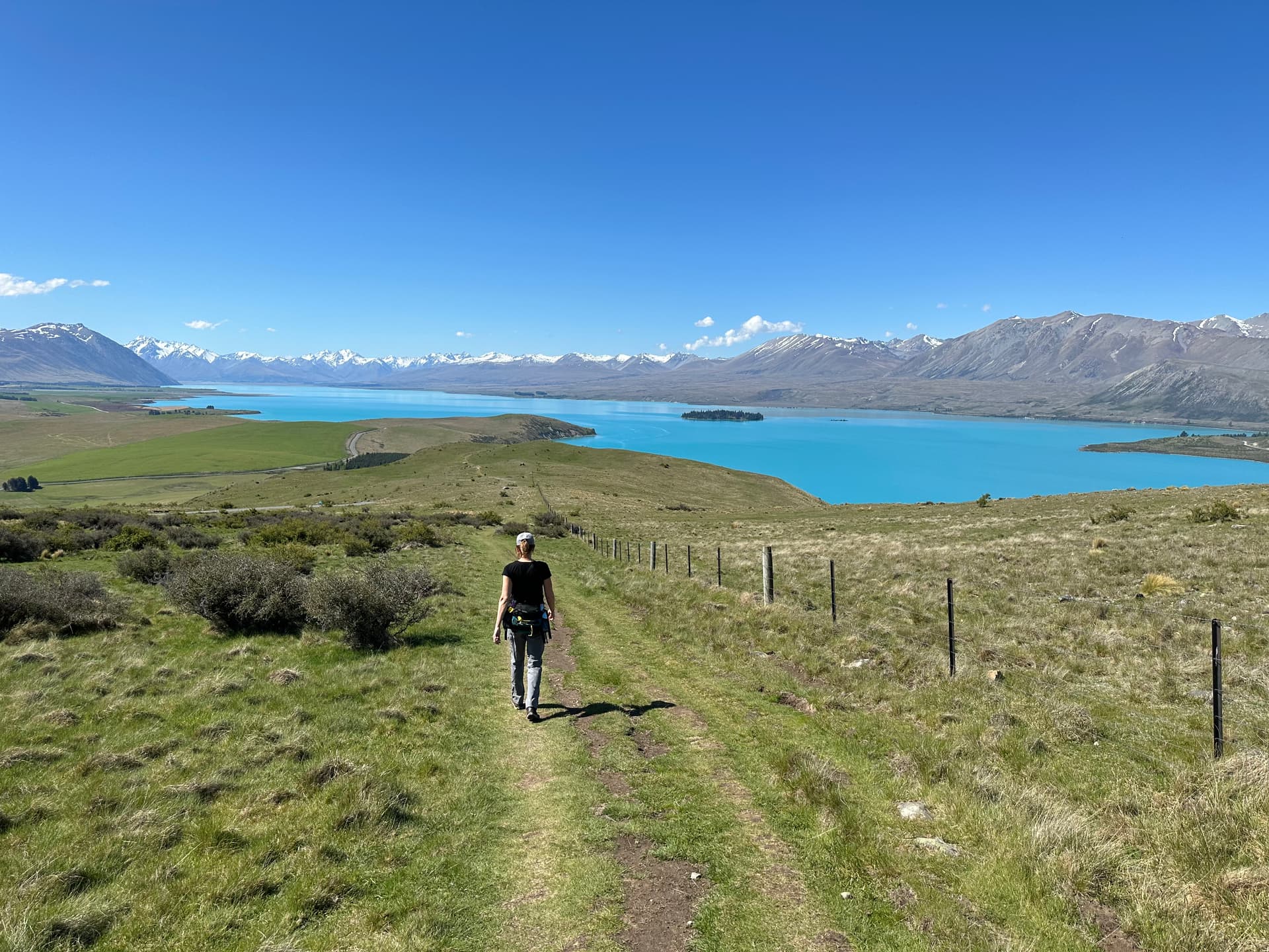 Day 3, on Lake Tekapo. Beautiful and worth an overnight (but only one). The lakeside “town” here is pedestrian, but the food here is decent enough and the town feel is totally different from isolated Lake Pukaki (that’s tomorrow), which has none of that. We should have made reservations at the (modest) Japanese restaurant, Kohan, but did not, so we ended up with lunch and dinner at the Ramen Tekapo, (Thai/Ramen) restaurant, which was good enough and part of the primitive vibe. Nothing is fancy here. Stayed at the Galaxy Boutique Hotel, a family run operation, and our room had a very nice view (over a few rooftops) of the lake and surrounding mountains. Great hike that day up the Mt. John Observatory. Steep hike up and a LONG meandering way down. I’d rather do it that way (clockwise) than the reverse.