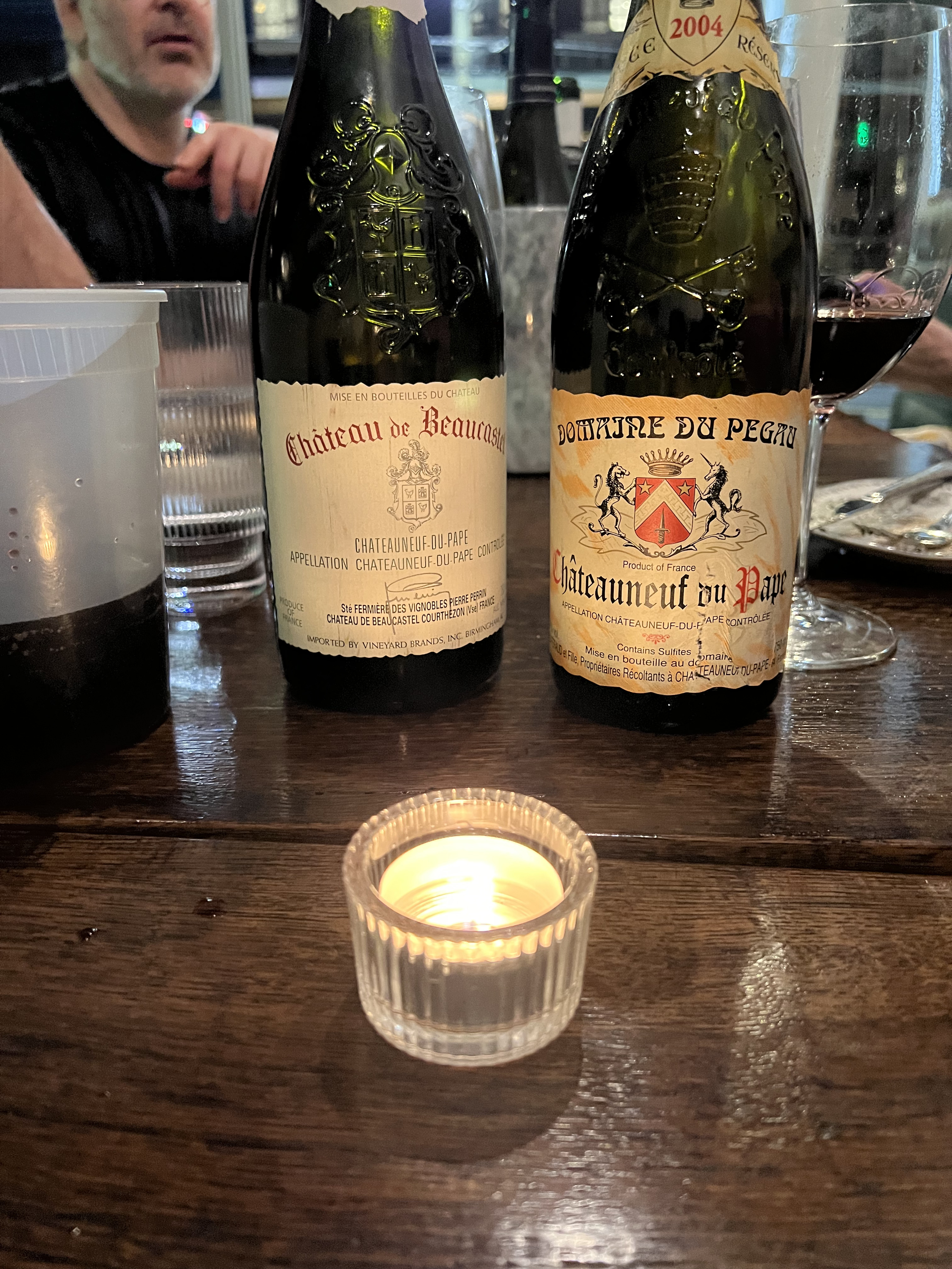 Champagne, 20+ year old Riesling, 1980s Napa Cab, 2004 Chateauneuf-du-Pape, and ‘09/’10 Mugneret-Gibourg. What more could you possibly ask for?