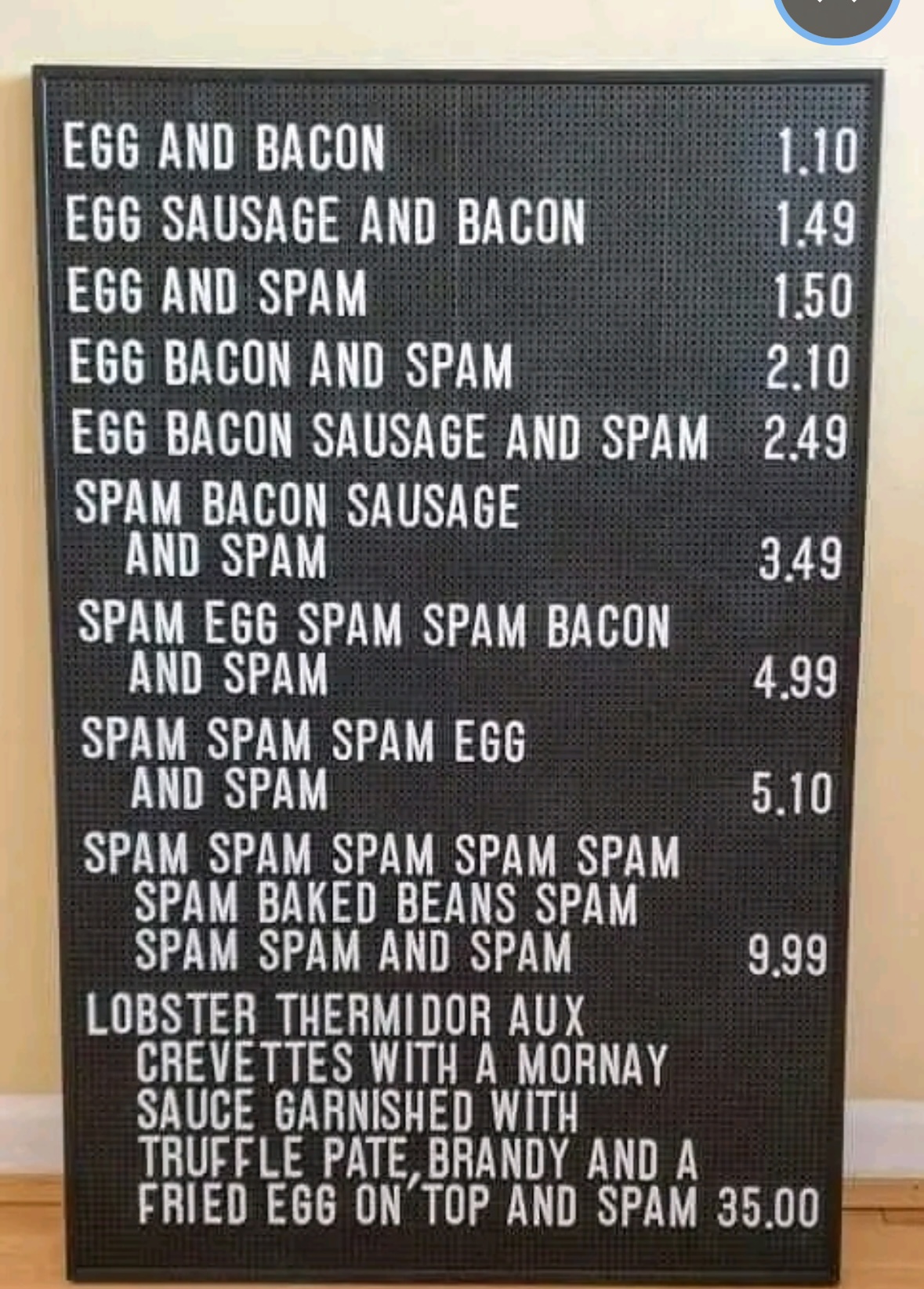 I hear the second last one is good, and if you don’t like beans they can substitute it with Spam …
