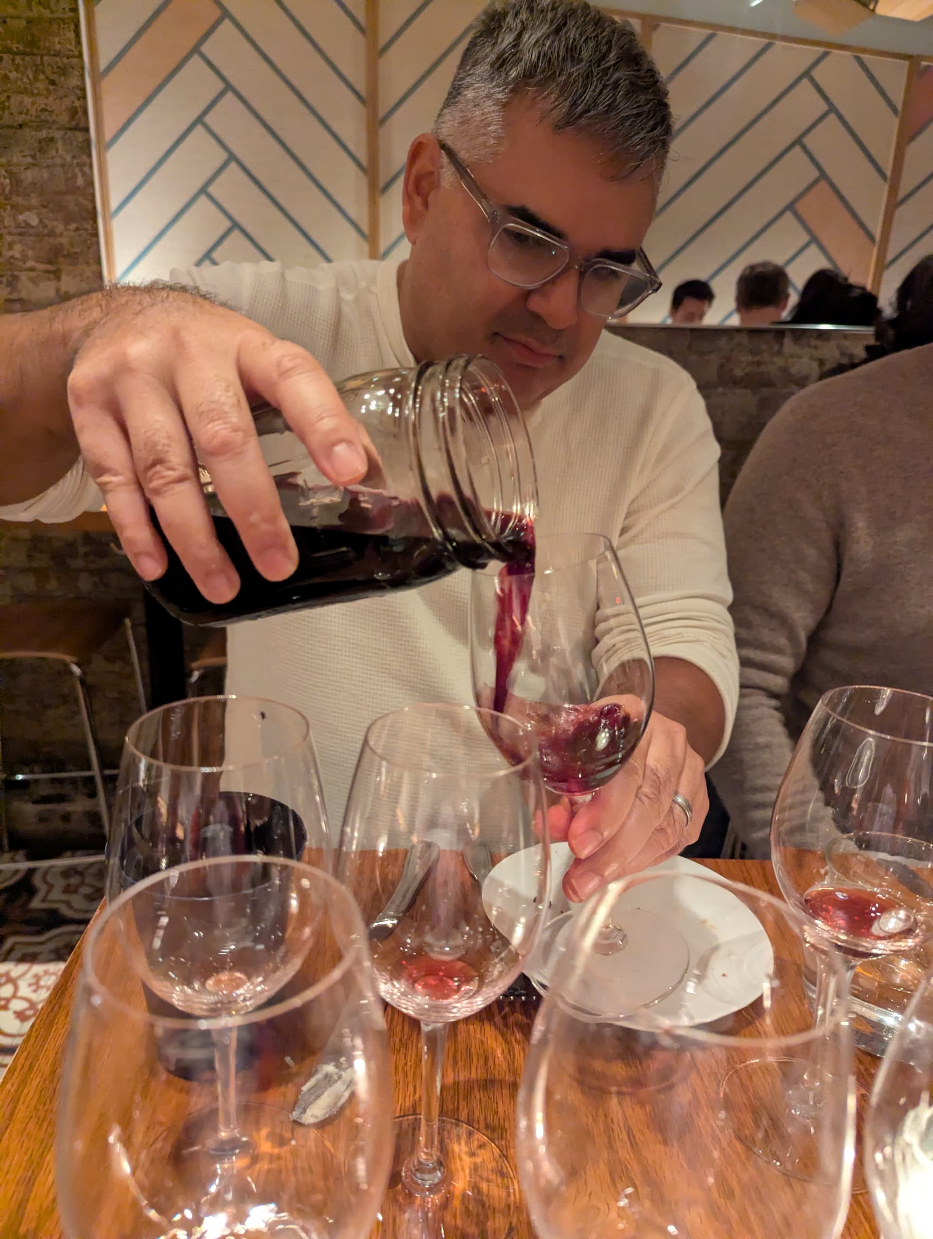 For some reason halfway through I stopped asking for the bottles and missed pics. So there was a chappelet that was very good, an rdv, the egon mueller that was so delicious, a surprising ny Riesling, an alsatian grand cru Riesling that needed more time or air or both, peters roussannes(?), more Syrah, and plenty of others I’m forgetting. A lovely time as always and always humbling to guess cab when it’s clearly syrah.