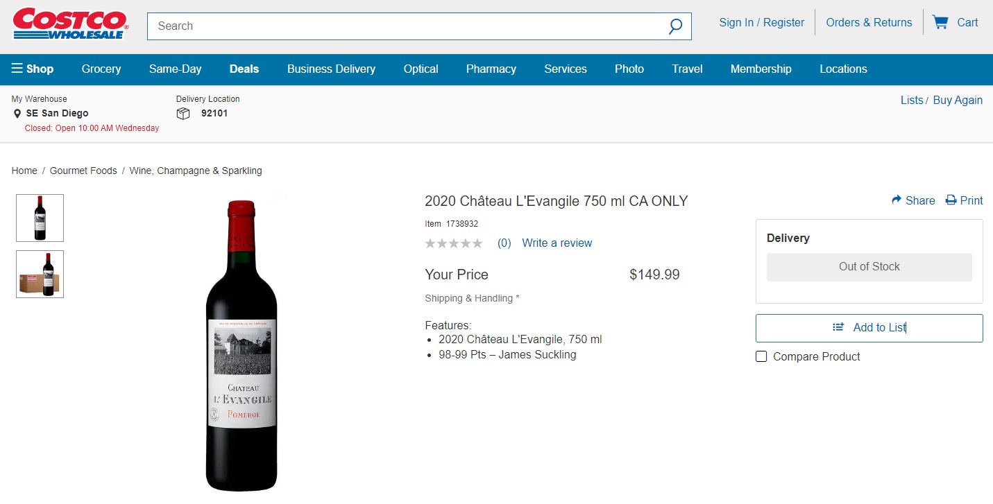 Their online wine presence has never made sense. I remember years ago they had a wide selection online, but pretty much shut it down. In between this, the 2012 Dom for $150 and the 1999 Dom gift baskets for $50 a decade ago, it just makes no sense.
