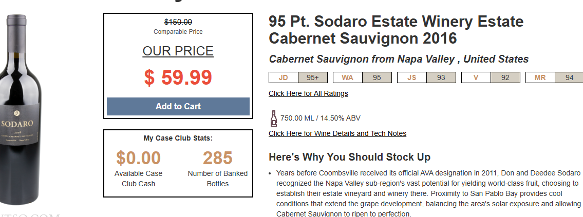 I would be a bit surprised to see ABC on WTSO, a little sad even. Their wines are so consistently excellent, but I suppose we are in a wine market downturn. No details on the vintage, but could be the ABC 2021 Bien Nacido? It did get 94 from Vinous, but it retails on ABC’s website for $40. Could also be Chanin…