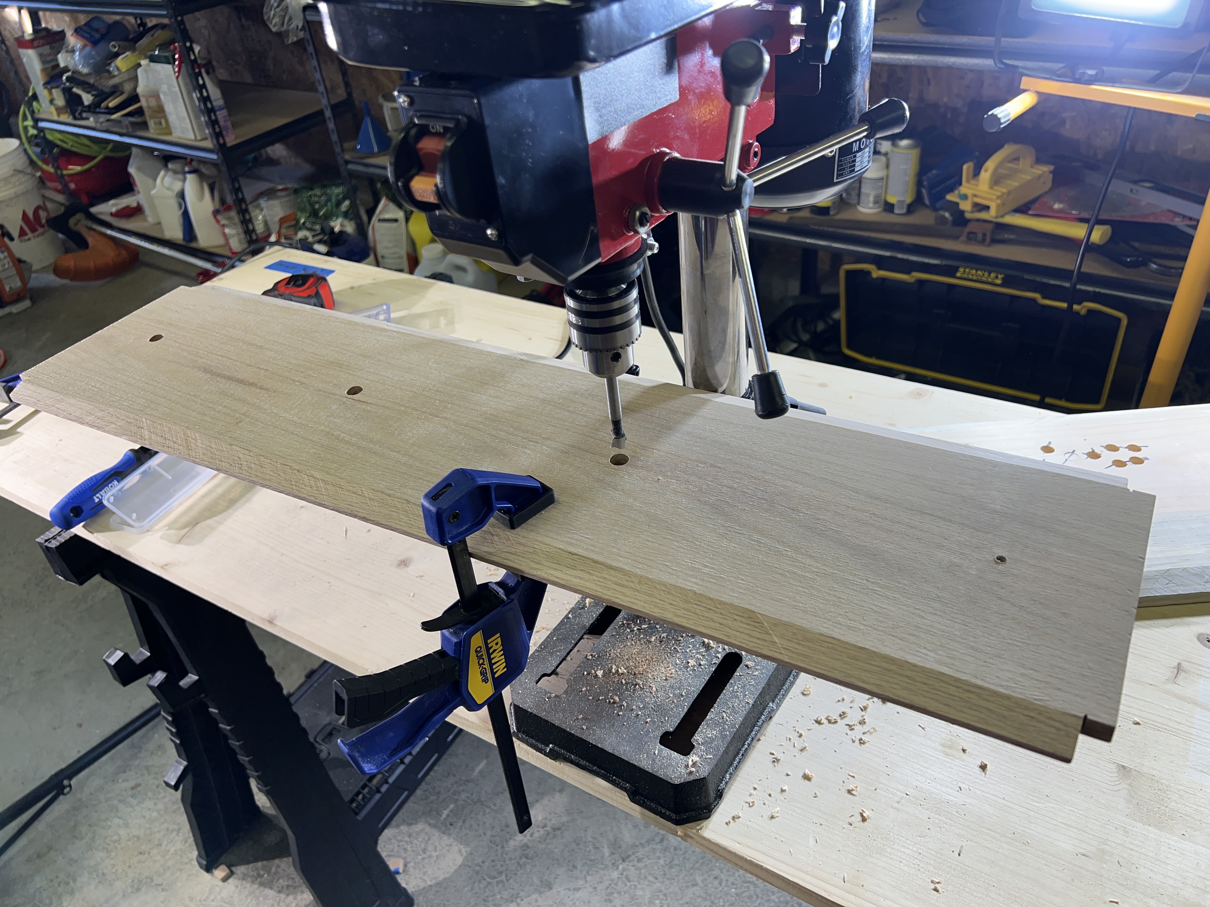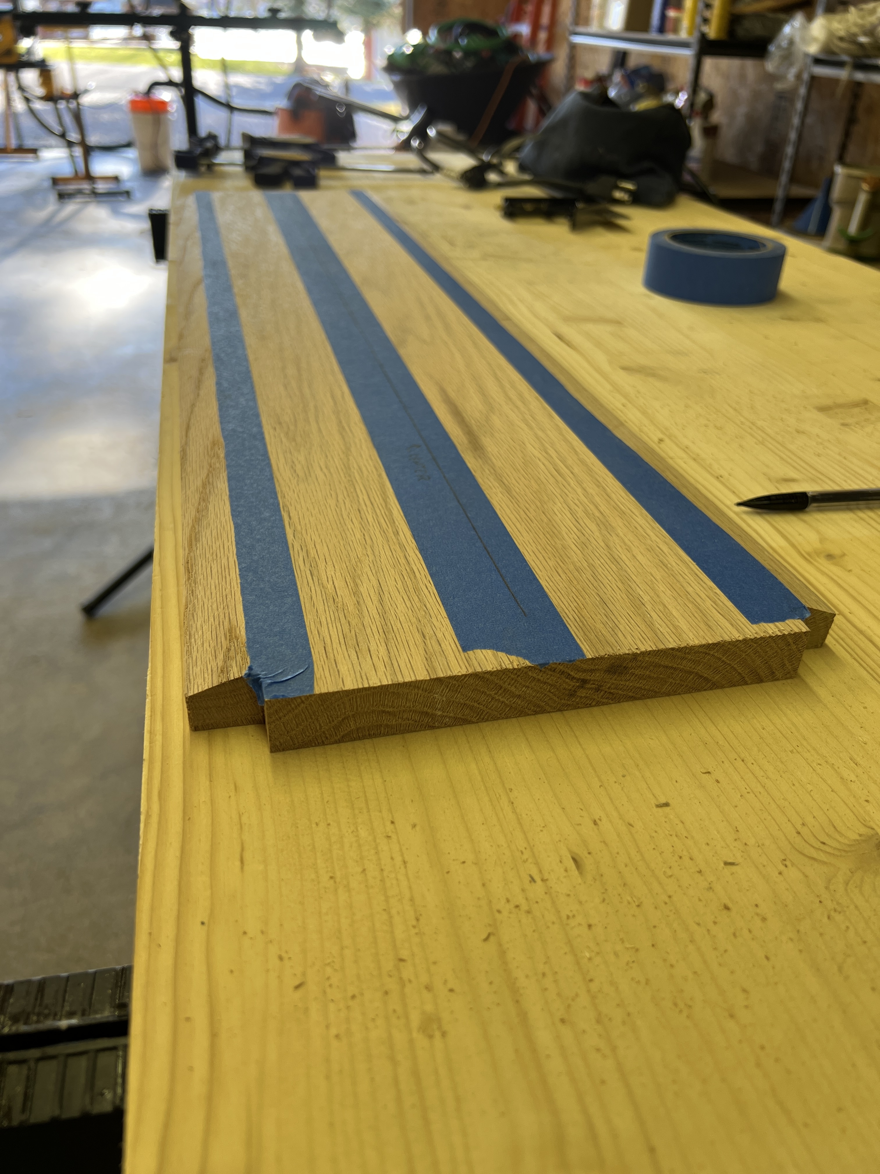 Today I built a threshold for the cellar door. Started with an oak 1×10, then I ripped to width, cut to length, notched the corners (for door trim), beveled the top edges, and cut rabbets to accommodate flooring.
