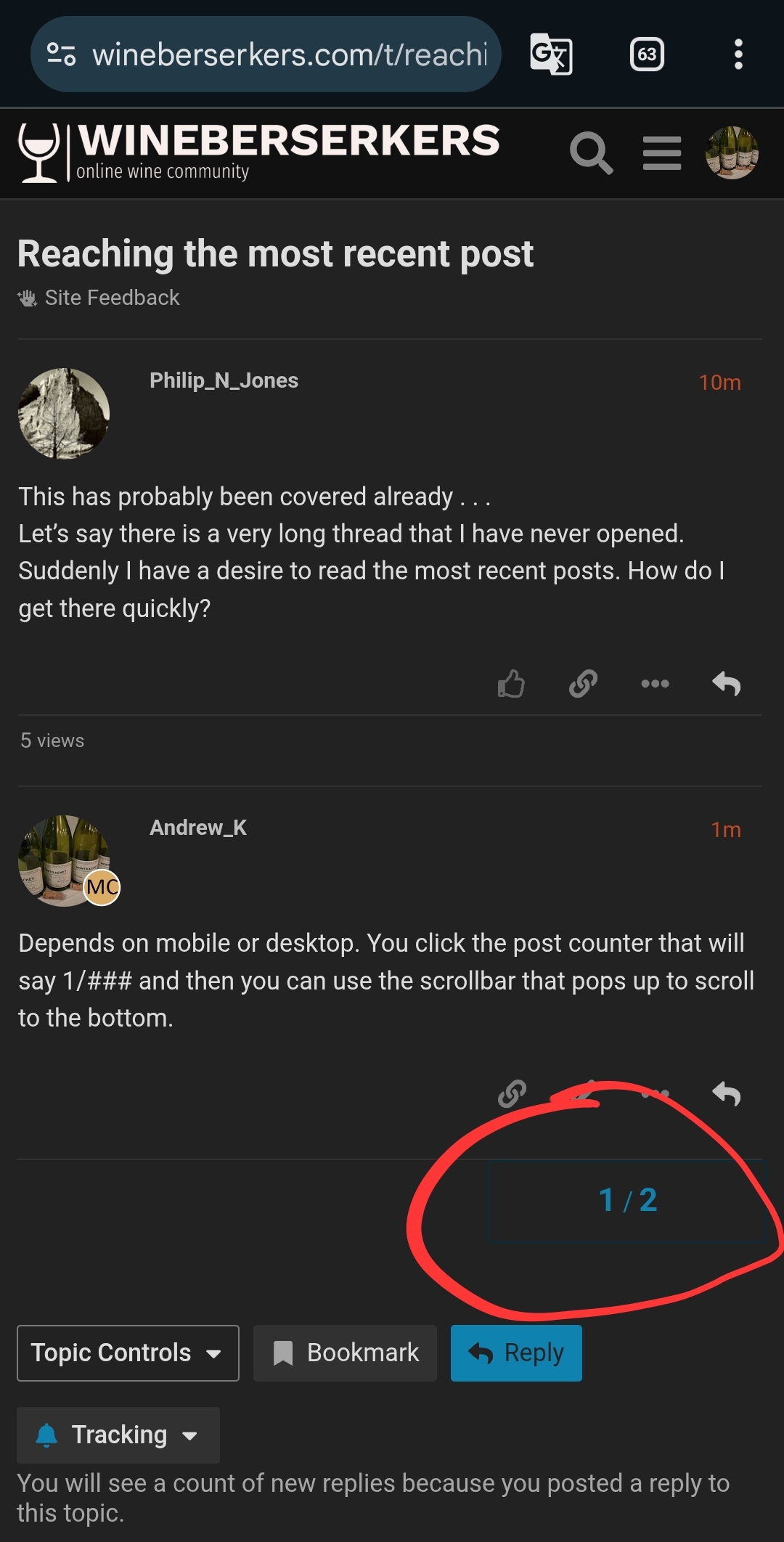 Let’s say there is a very long thread that I have never opened. Suddenly I have a desire to read the most recent posts. How do I get there quickly?