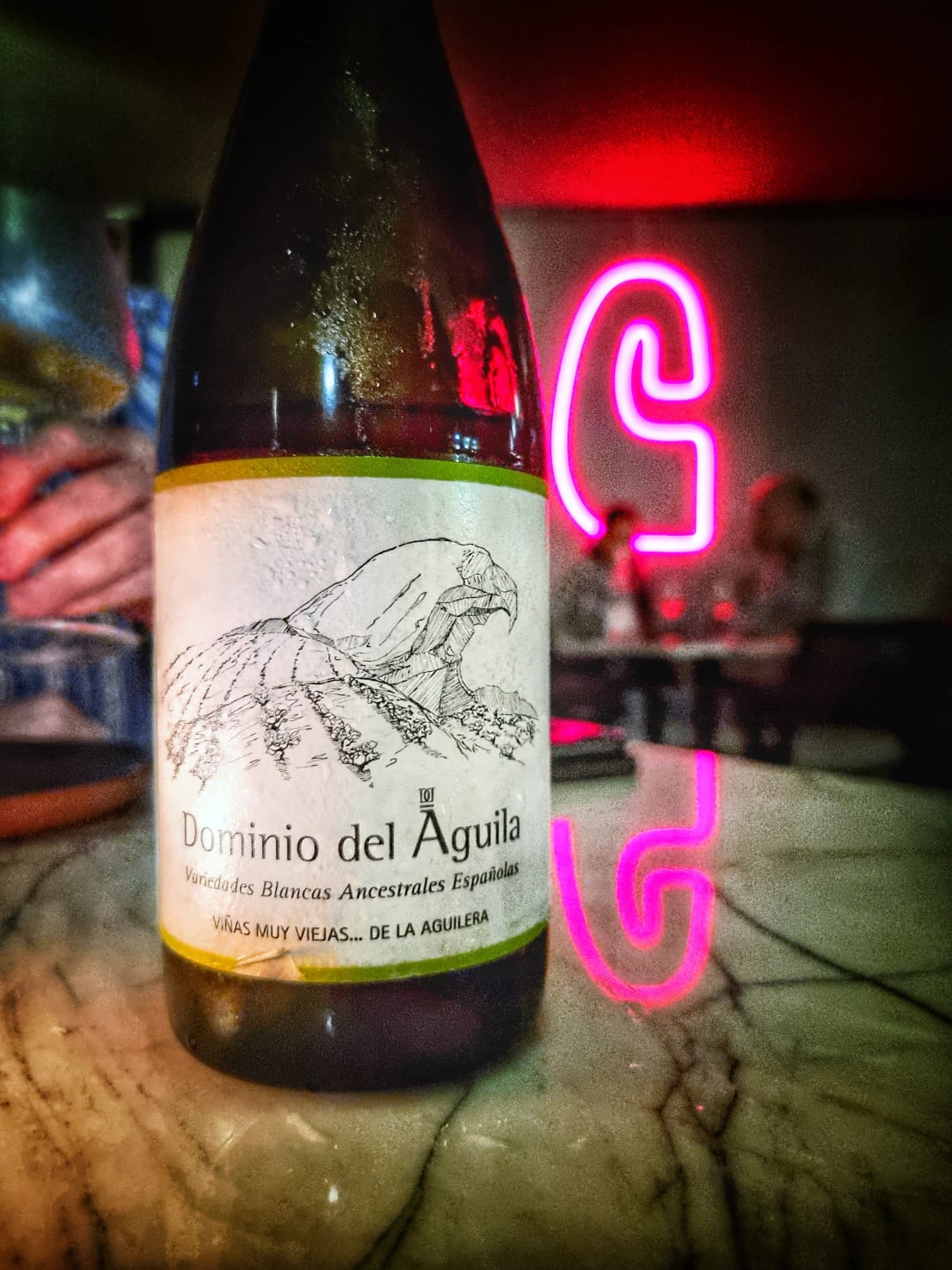On my last visit, Jorge mentioned his experimental whites. When I said I hadn’t tried them, he promised, “I’ll send you a few bottles in your next order.” Sure enough, three bottles showed up, each with a different label. I don’t know much about them, only that they’re special micro-lots of fewer than 300 bottles. They came from vintages with lower acidity that went through malolactic fermentation, made from a mix of local whites from very old vineyards, mostly Albillo with some Pirulés. Extremely floral, it crackles with toasted sesame oil, stone dust, lemon oil, and brined olives. Medium + in structure with a touch of creamy texture, it shows briny notes wrapped in fresh citrus and saline minerals on a high-pitched mid-palate. The finish is long and stony, with subtle hints of Indian spices.