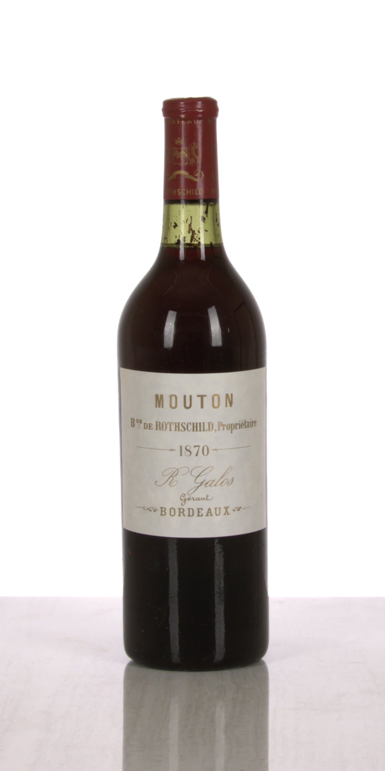 The content and printing on the label appear to be an accurate reproduction of the original label for the 1870 vintage. The wine bears a long maroon-colored Chateau Mouton Rothschild capsule, which was initially used on the 150th anniversary vintage (2003), which was physically released in 2006. The catalog description states: “reconditioned by chateau, excellent color.”