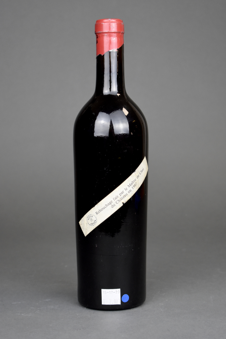 As with the 1870 Mouton, there is no visible evidence that this bottle was reconditioned by the chateau and there is apparently no back label or strip label so stating. Similarly, Heritage has repeatedly declined to answer my question as to whether the consignor provided any proof that this bottle was “reconditioned by [the] chateau” as claimed. Moreover, the plain red capsule on this bottle appears totally inconsistent with such a statement.