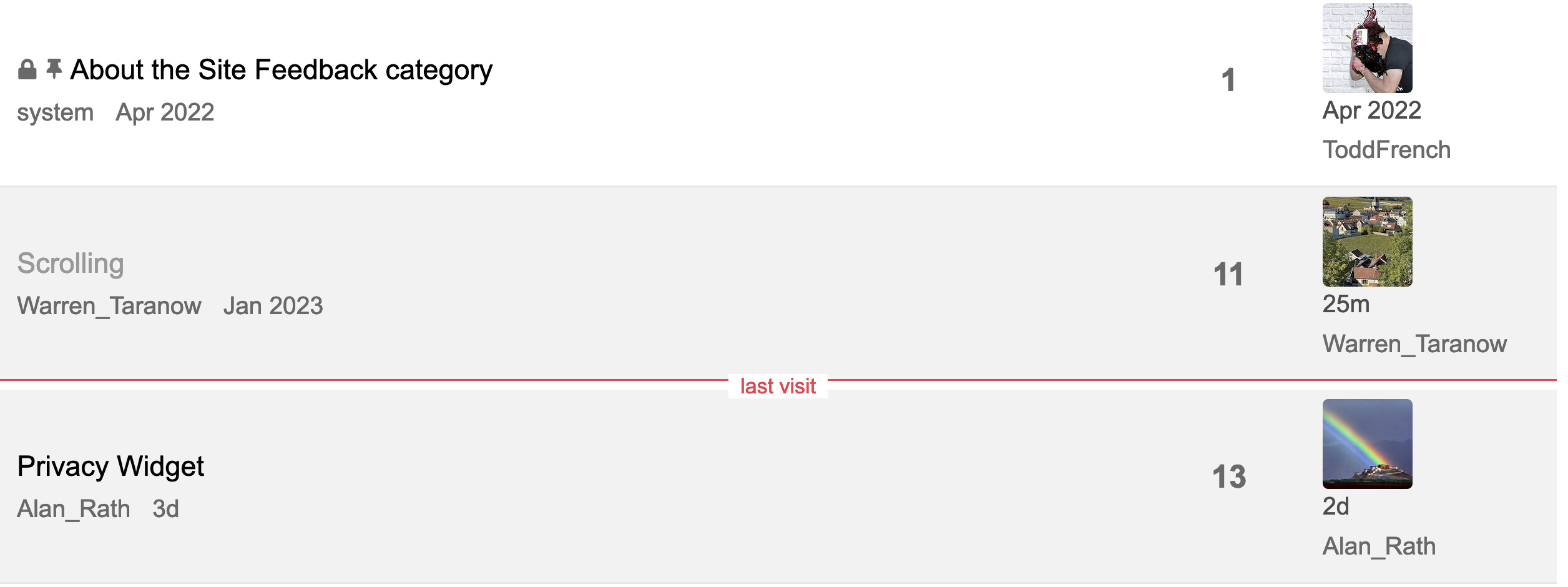 I’m still struggling with this. I just opened a 7 year old thread for the first time. On the leading page, I don’t see a “last reply”, “summarize this topic” or “the most recent reply”. How can I get to the end of the thread without an endless scroll? @ToddFrench , thanks for educating me here.