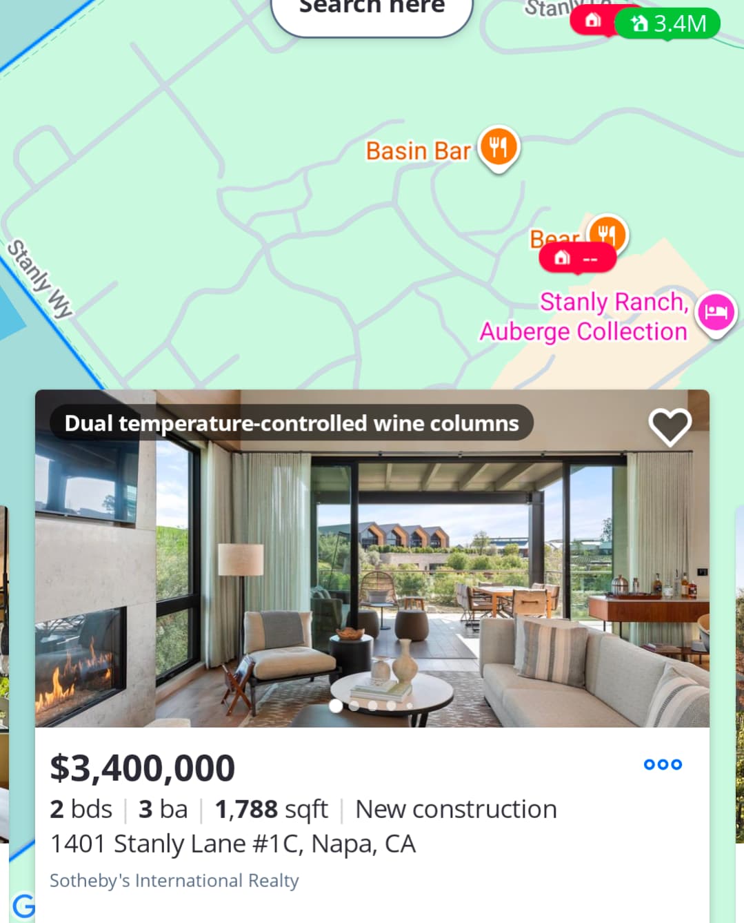 It’s not even a home, it’s a condo. Good god, a condo in Napa for 3.5m? What kind of crack was everybody involved in this smoking when they planned it? An 1800 sq ft condo in Palo Alto would be pricy at 3.5m. (OK, maybe not pricy if it’s new, but your commute is 5 minutes to wherever you work that lets you afford this.)