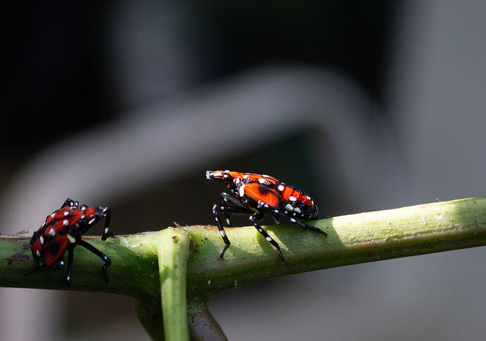 As a quick update (and a tiny N = 1 sample size), the number of Lanternfly nymphs is WAY down here. 30+ acre woodlot and very short of target species. Nymphs were swarming all over two Sweet Bay Magnolias last year, hundreds of them. This year…I’ve seen one.