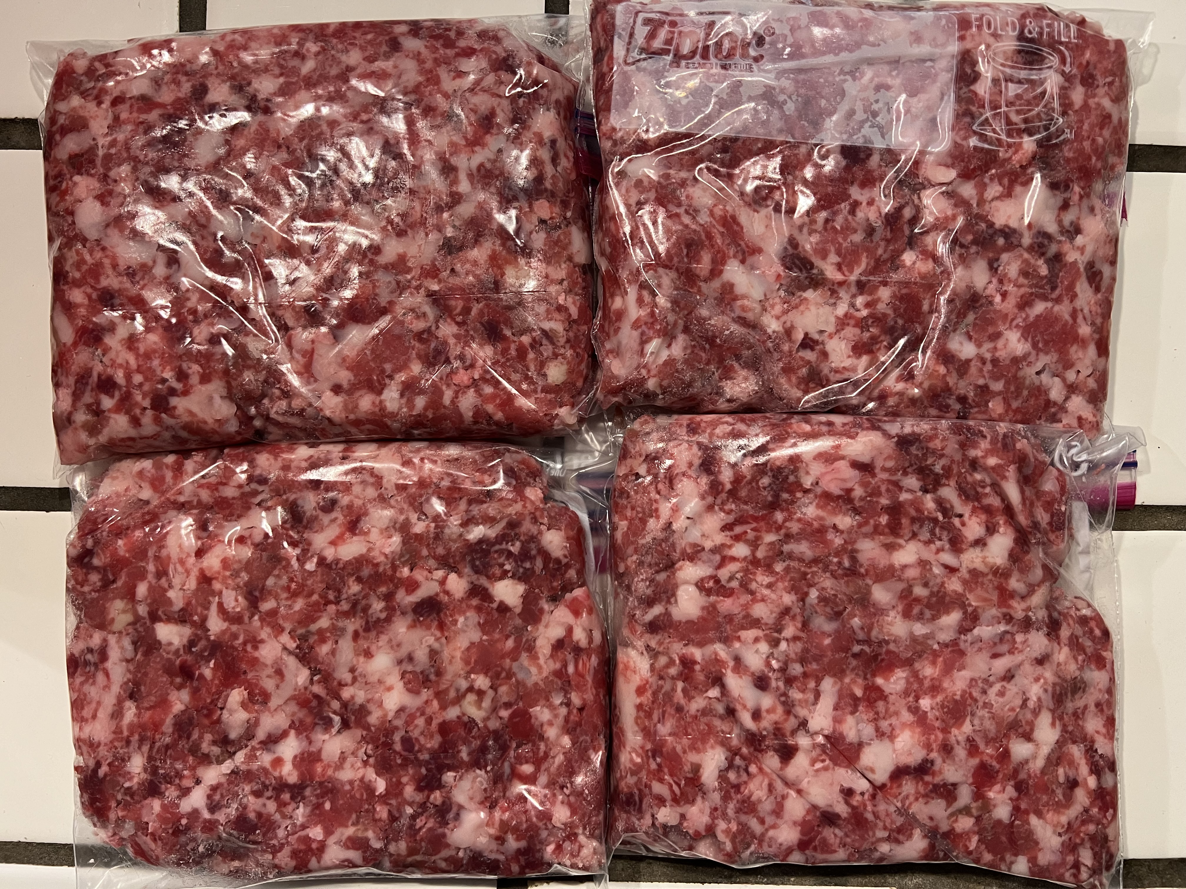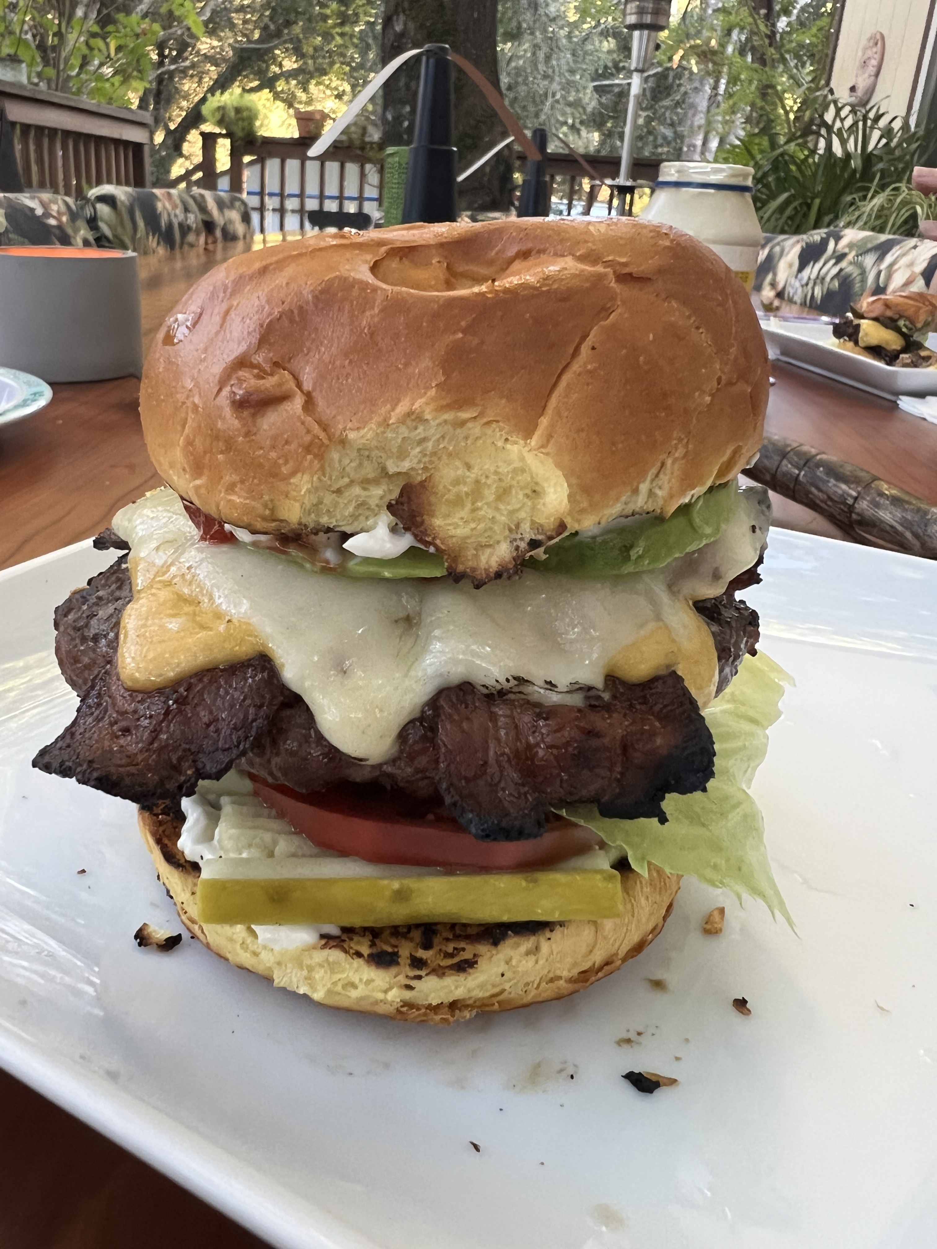 About a 70/30 blend. I took 1-1/2lbs and ran it through the grinder second time and made some burgers out of it. Kinda messed with the texture and was too crumbly. Flavor and juiciness was on point though. Bacon, Avocado, home grown Tomato, Claussen Dill Slices, Cheddar and Pepper Jack on Brioche.