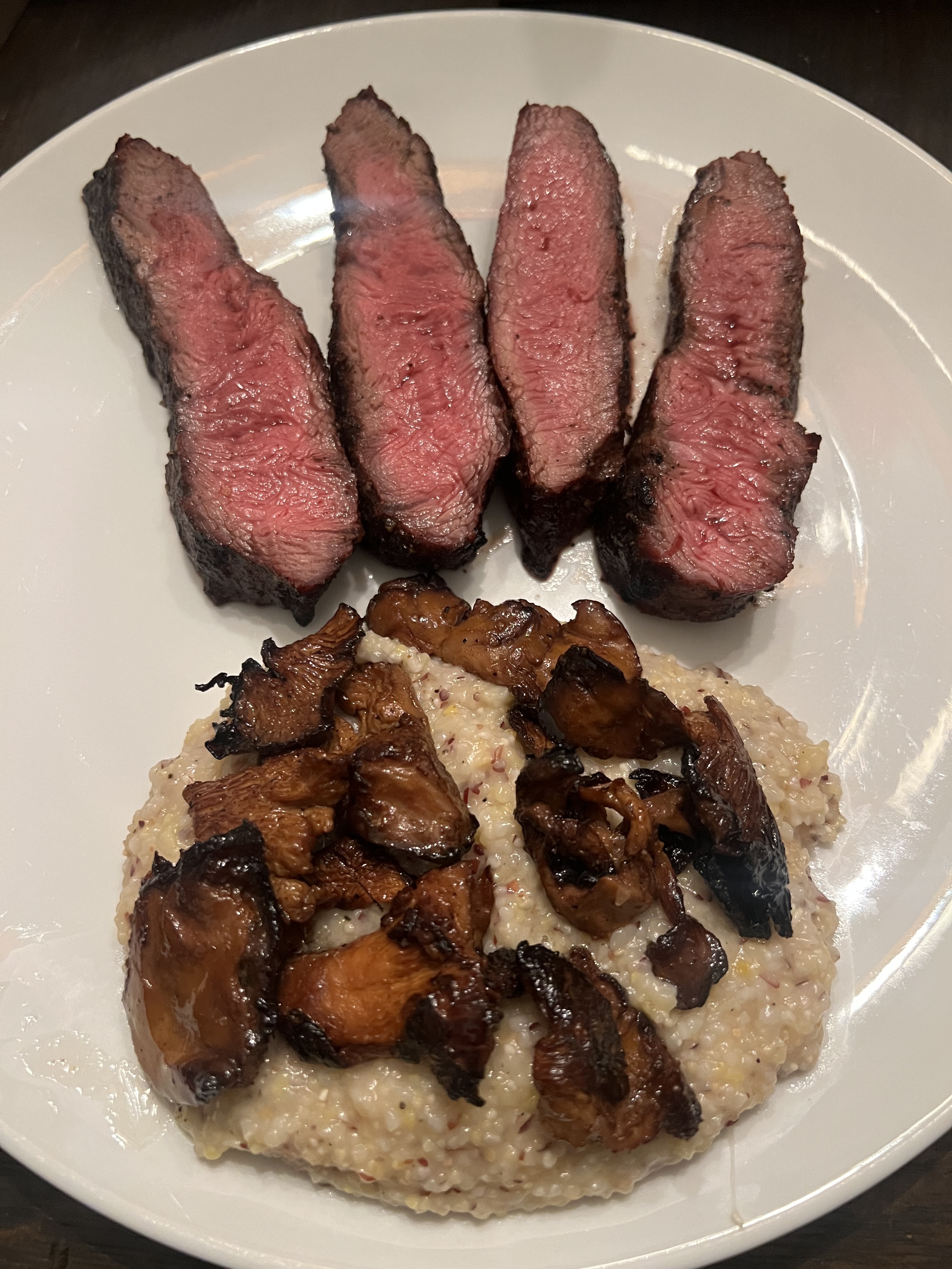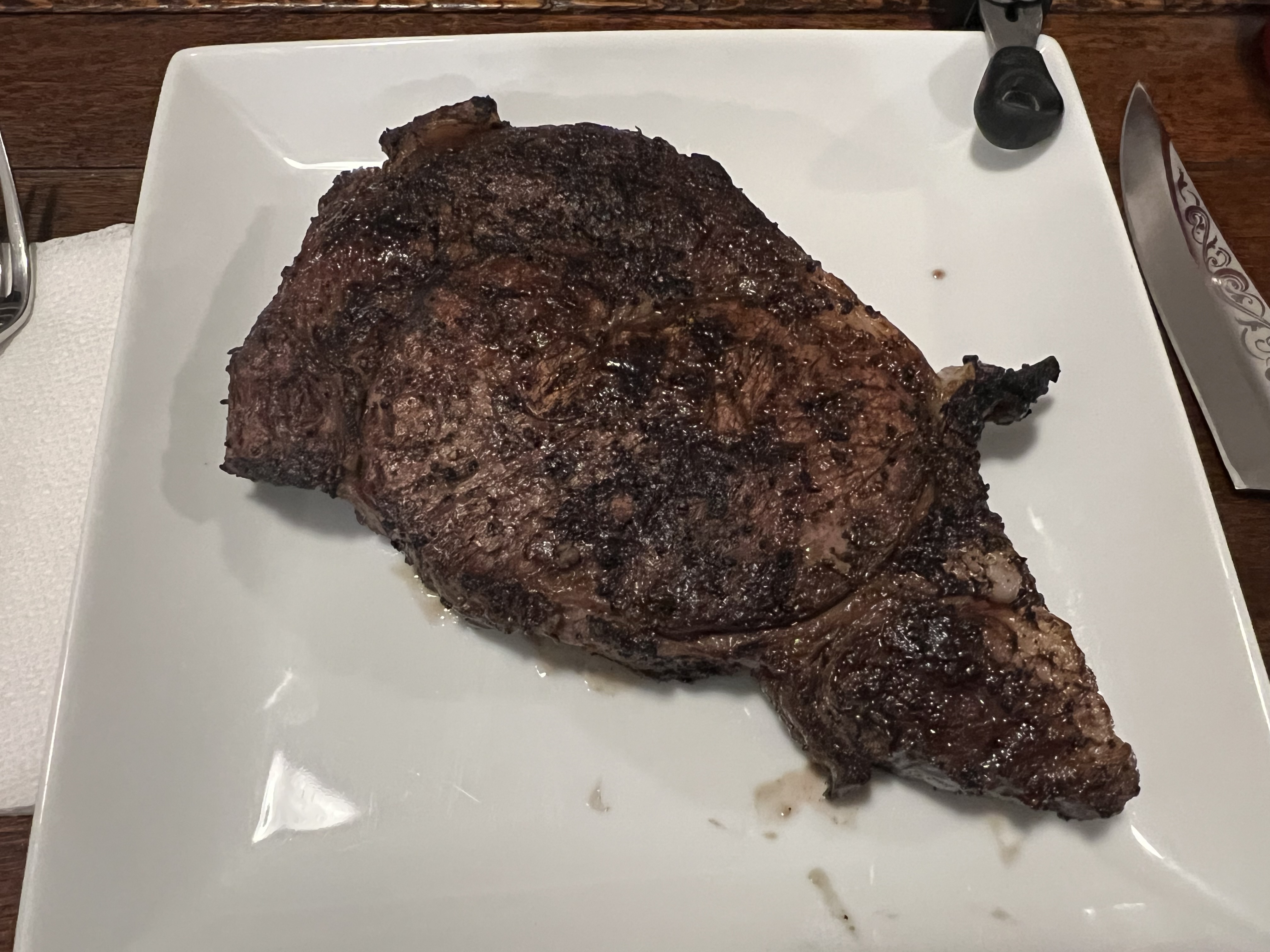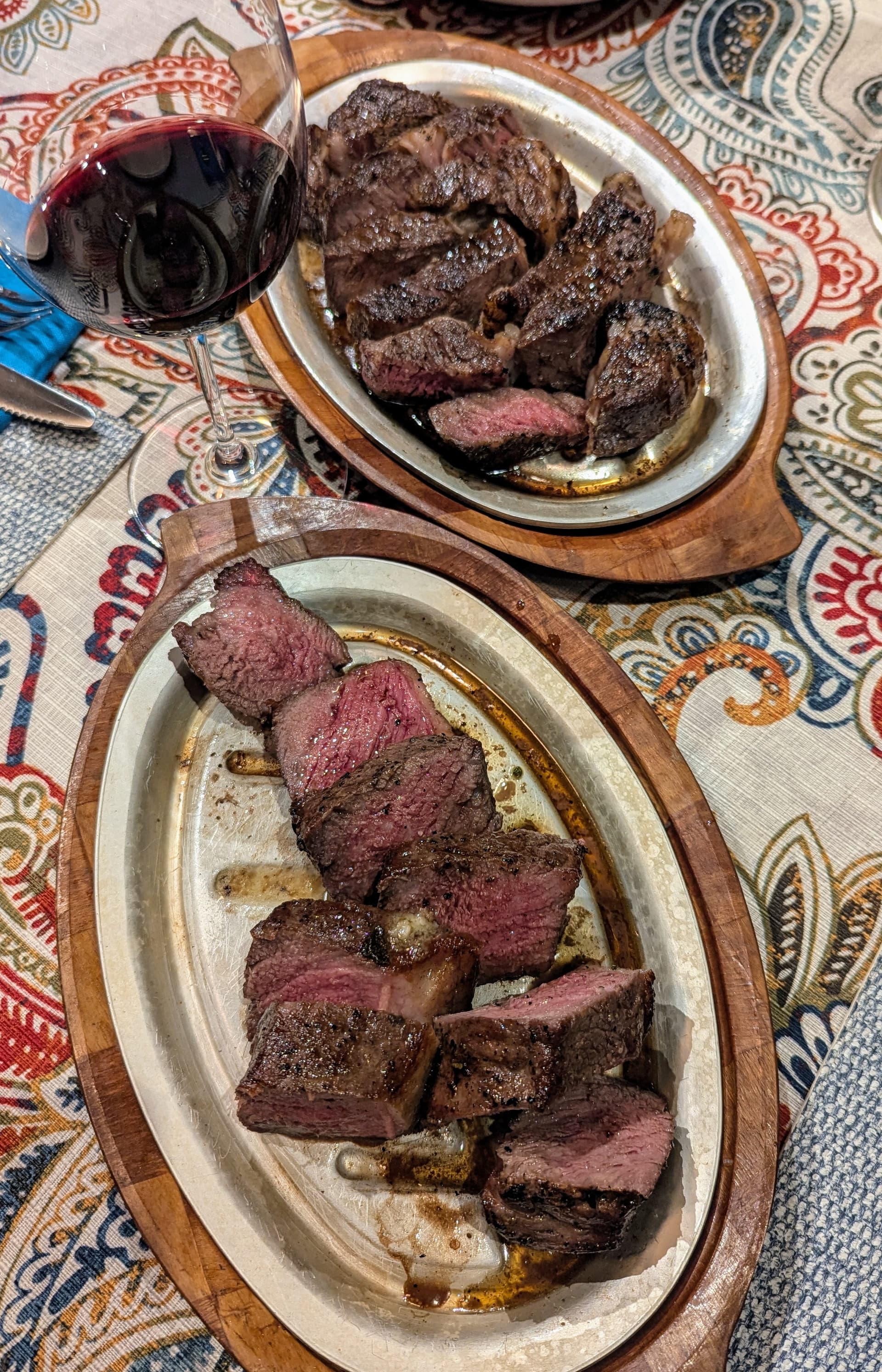 Not a great photo but the steaks were excellent. A Morgan Ranch ribeye and a Morgan Ranch NY strip. Enjoyed a nice 2019 Bougetz Amaryllis.