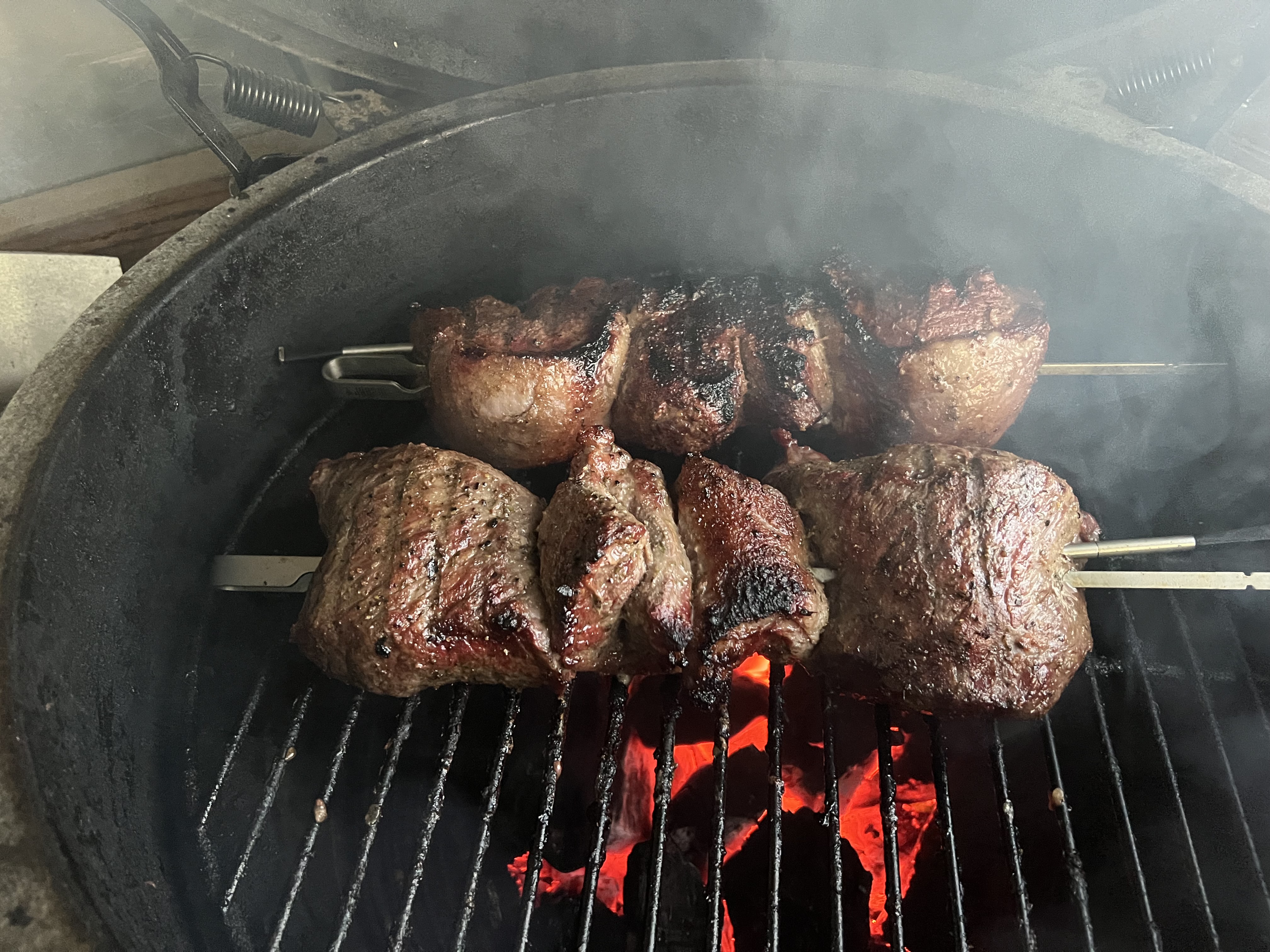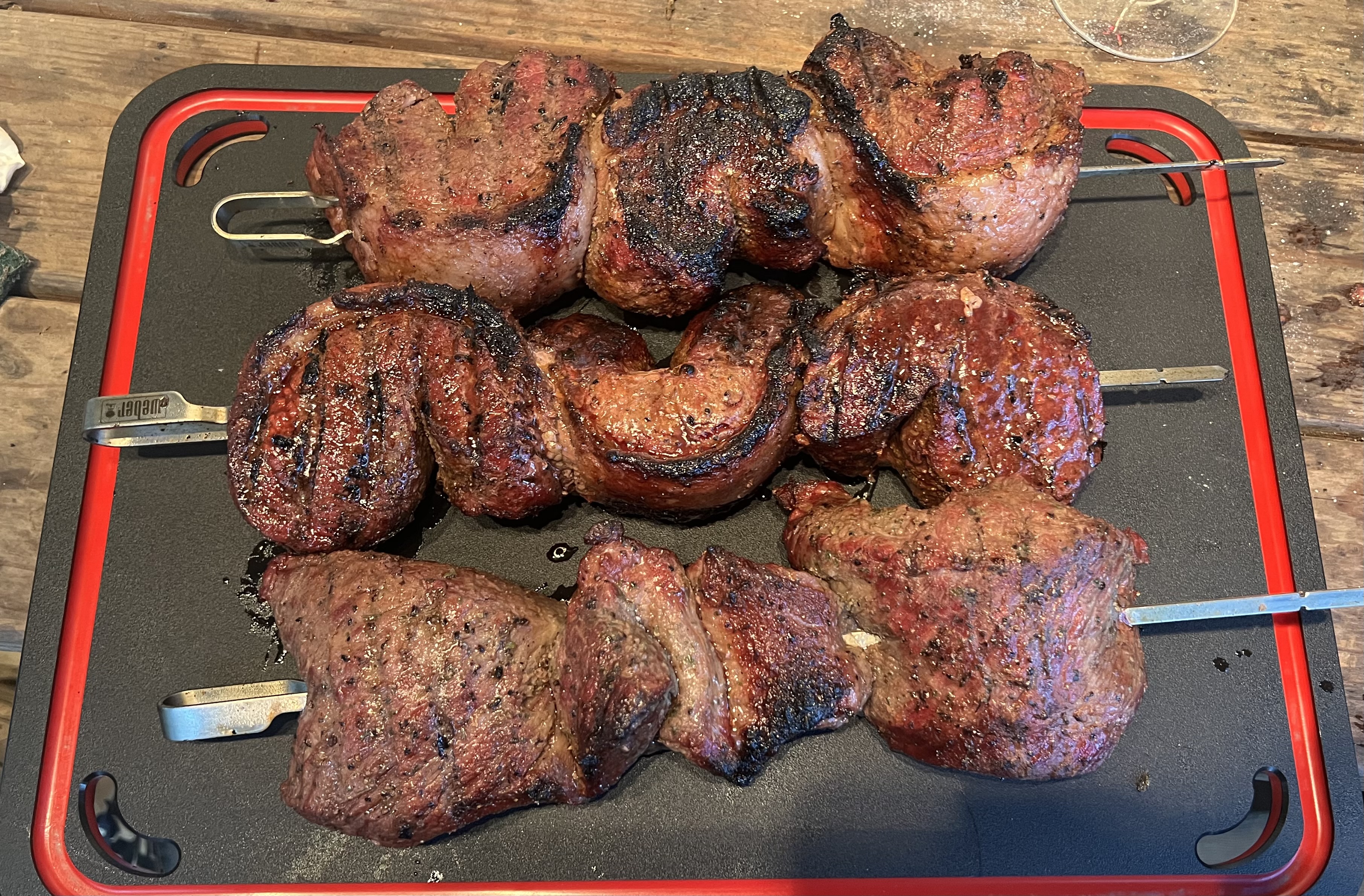 Last night we had a quick turnaround from my offline from the evening before and sis a Brazilian Steak Night for my Step-son‘s 40th. Not bad for being hungover and rundown on a 104° day. 2 Flannery Picanha and a prime Tri-tip
