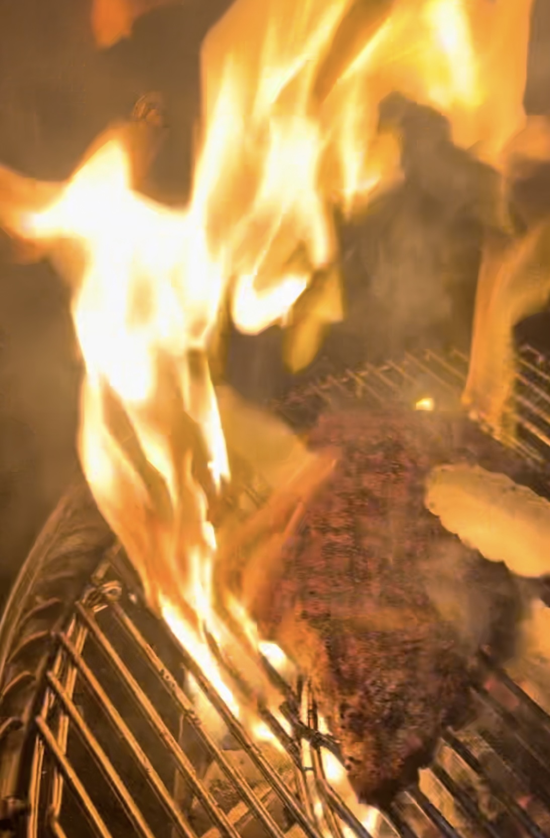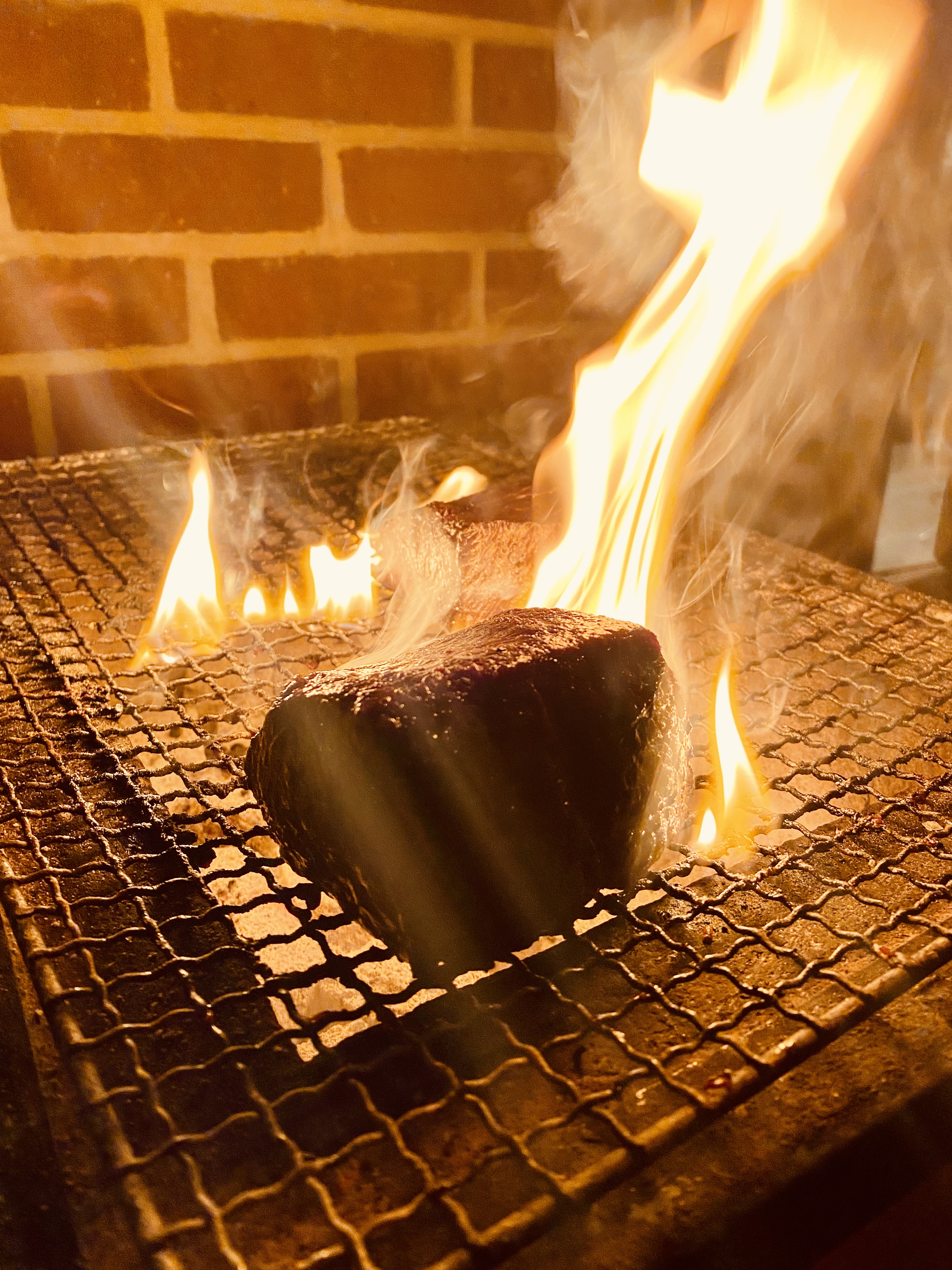 Cooked on my baby Konro. As the fat began to render there were some flare ups that actually worked to my advantage as it allowed me to get a really nice crust.
