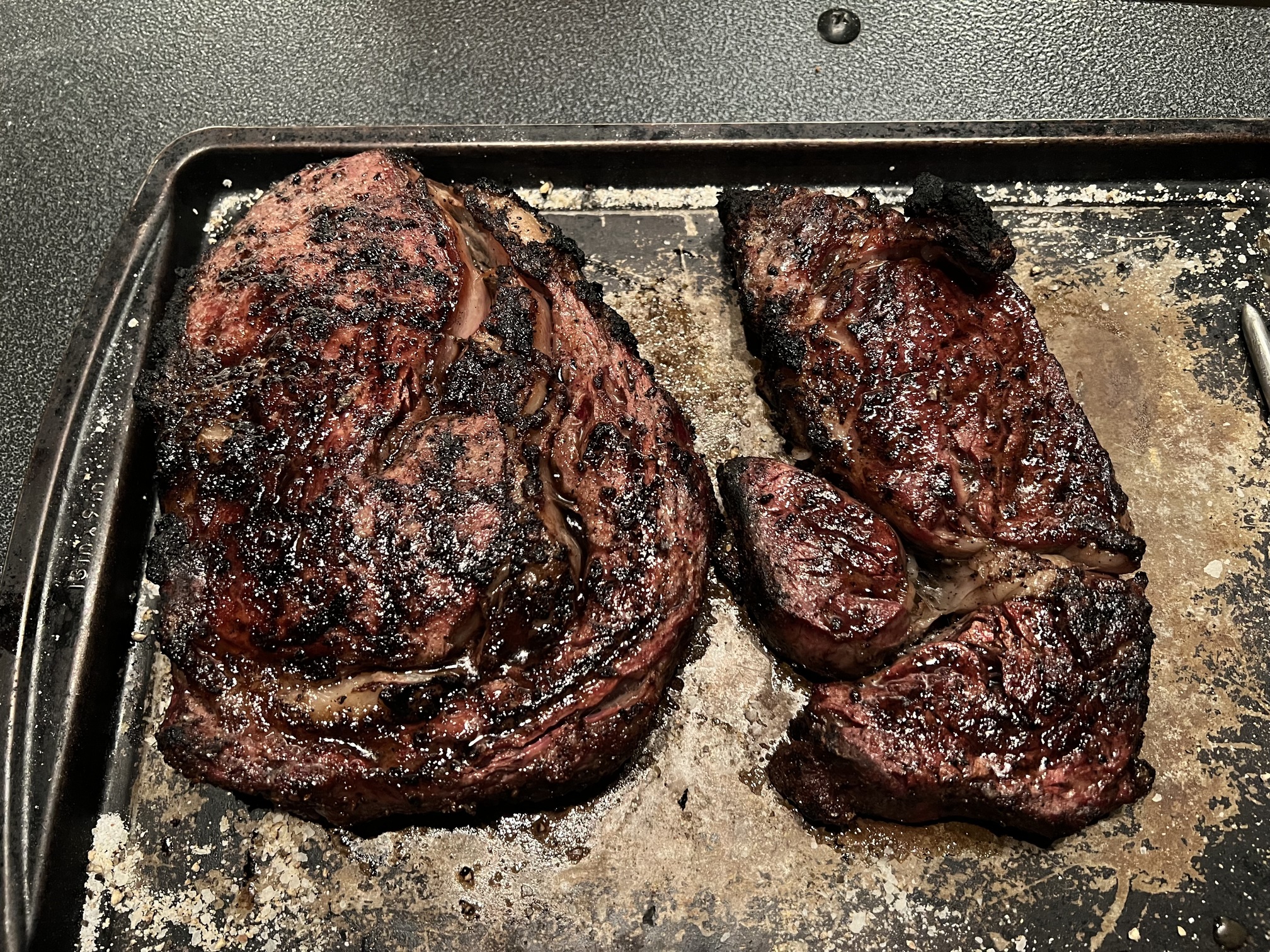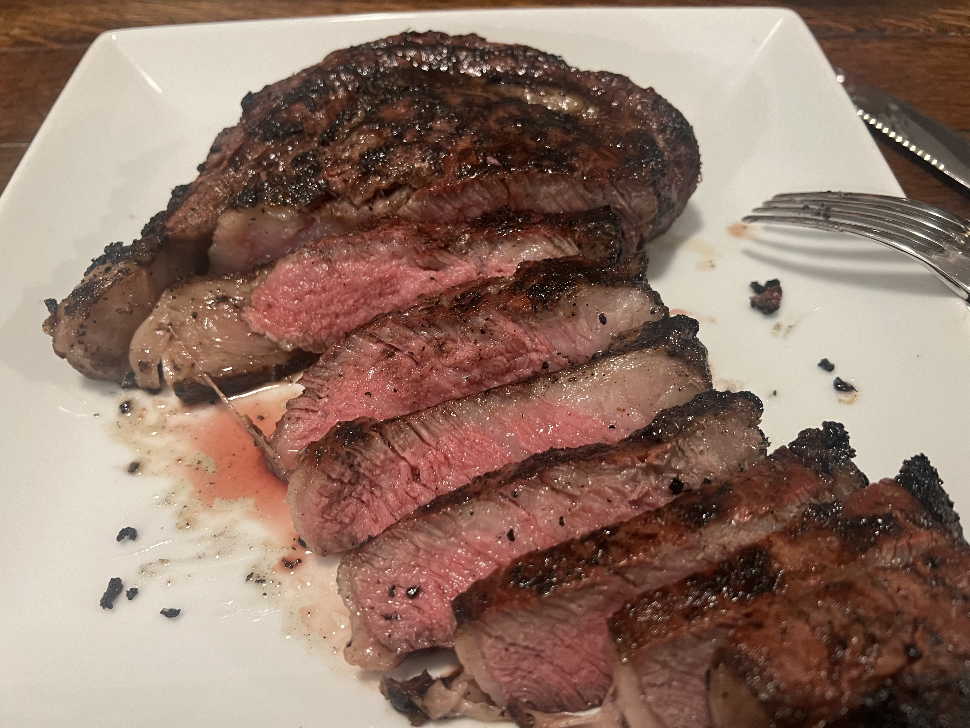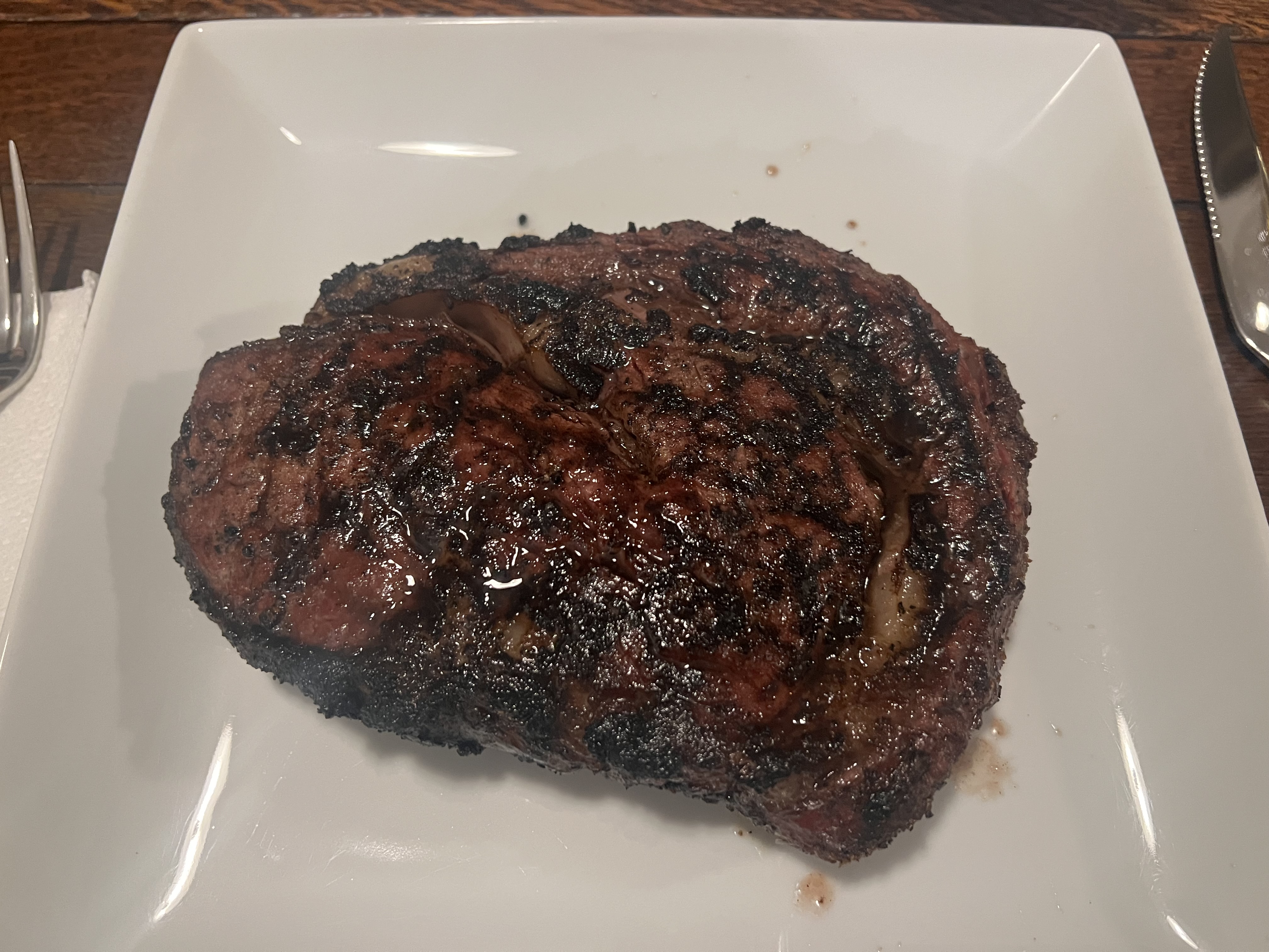 Another steak off a Morgan Ranch rib roast to celebrate one of my daughter’s friends being back for Thanksgiving. You know you’re doing a decent job as a parent when kids crash your place for dinner before going out on the town!