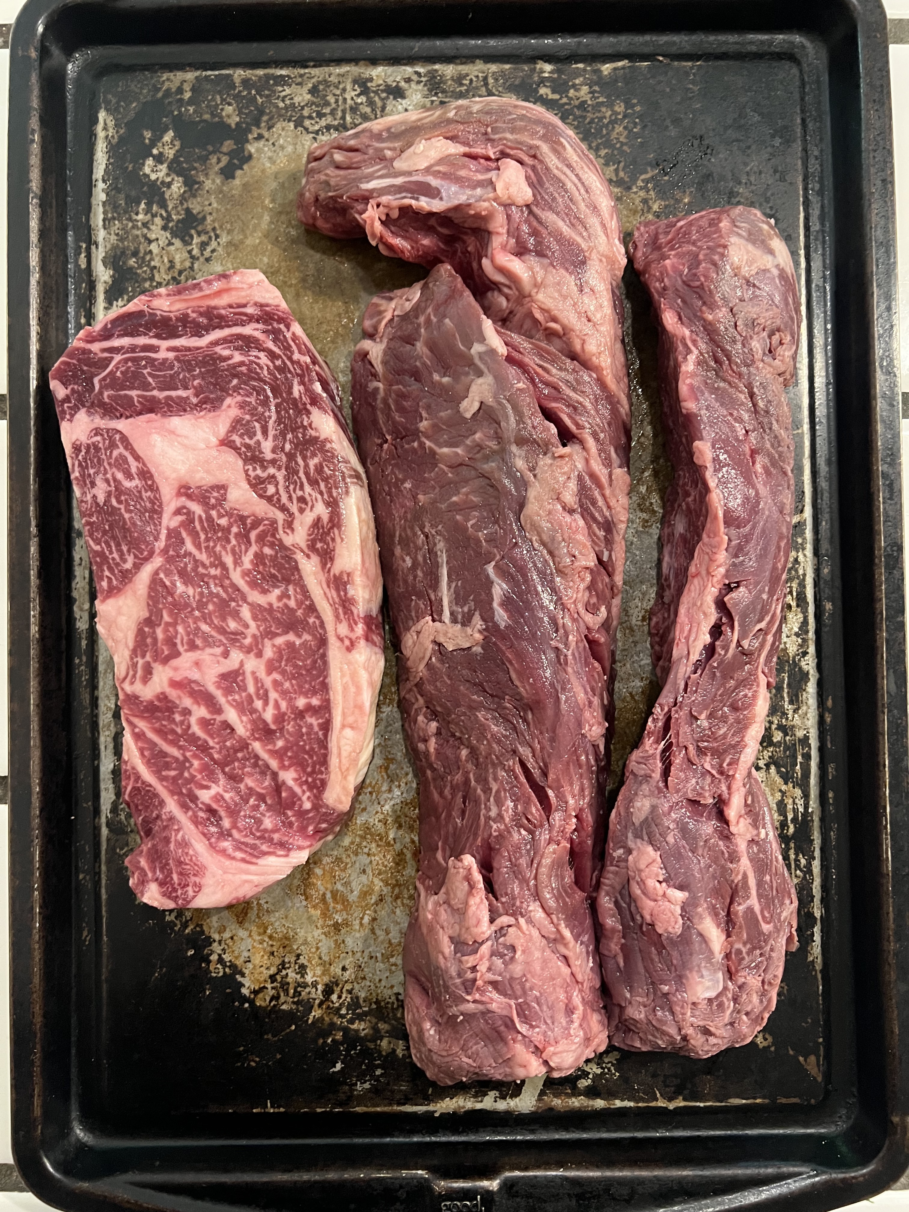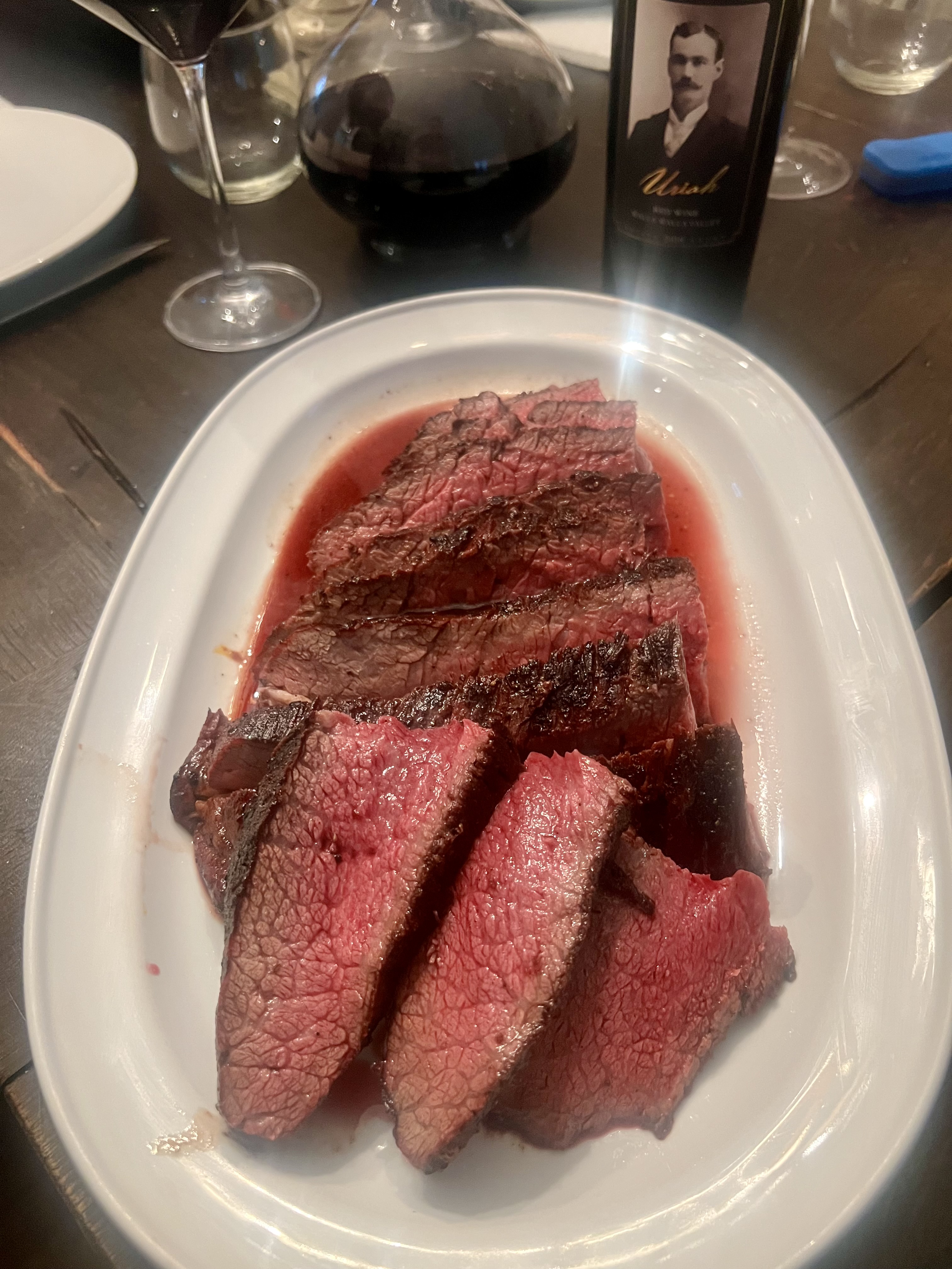 If you ask Dan what his favorite cut of meat is, you likely won’t get an answer. I will tell you thought, that if it is a really good day, he’ll take out a Coulette and trim it up. Last week he did just that. He kept part for himself and gave me the rest. I planned to grill it for a quick weeknight meal. A day later I took it out of the fridge to come to room temp and that’s when I made the mistake of leaving my house.