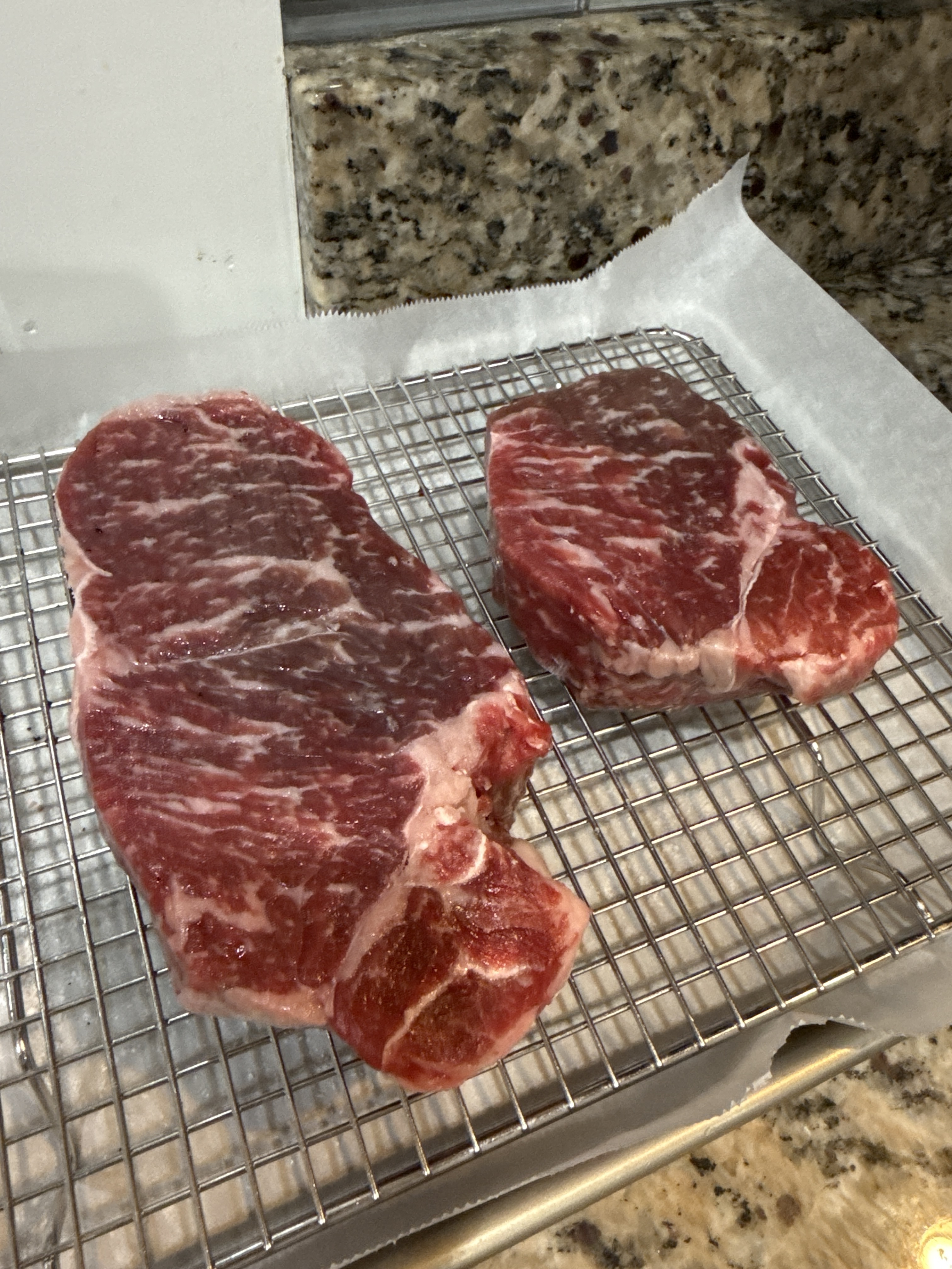 That’s pretty slumming with some Costco prime strips tonight. My favorite daughter is home. And she voted for steak. Will also have some fried green tomatoes and shrimp for a starter.