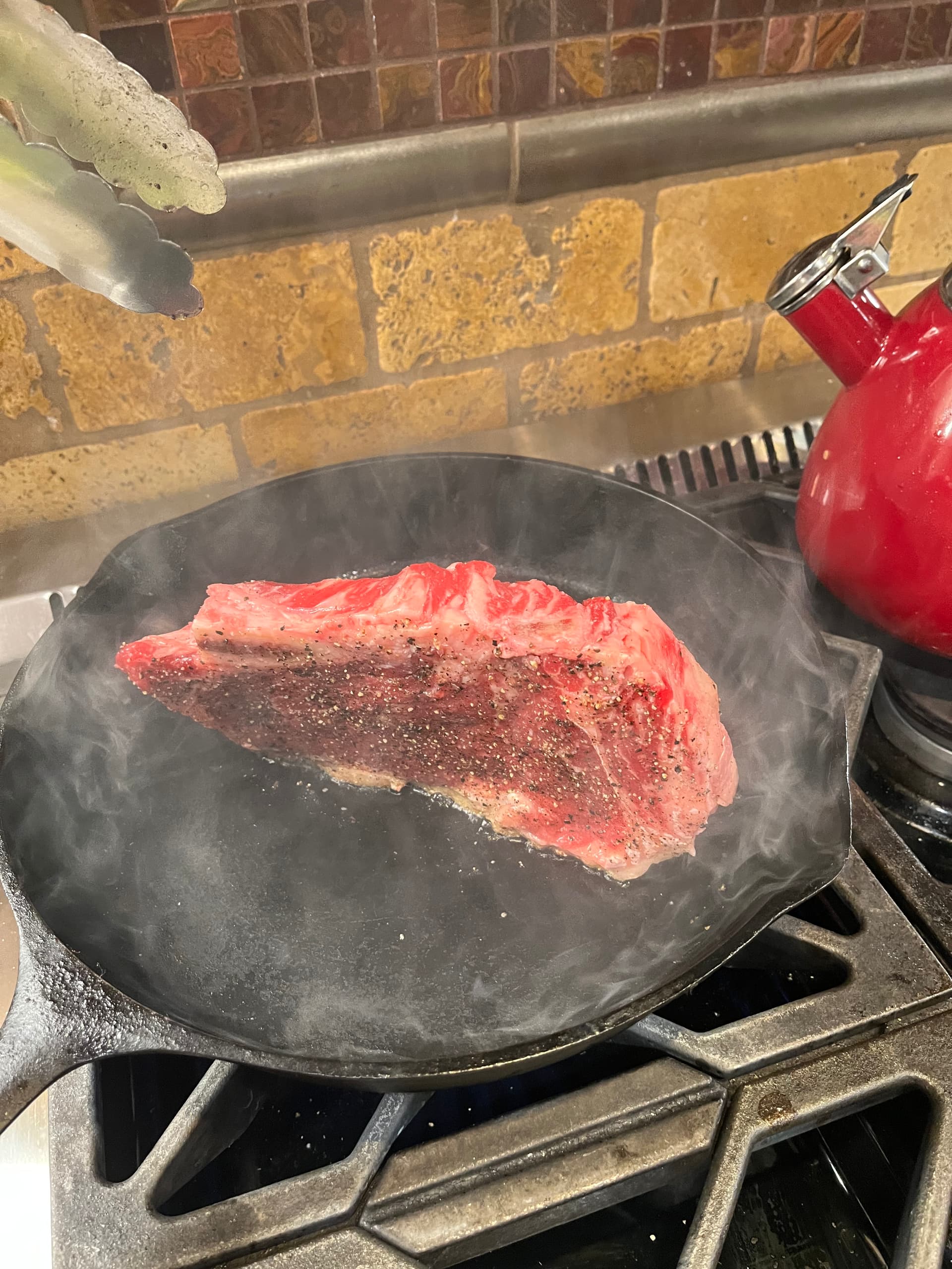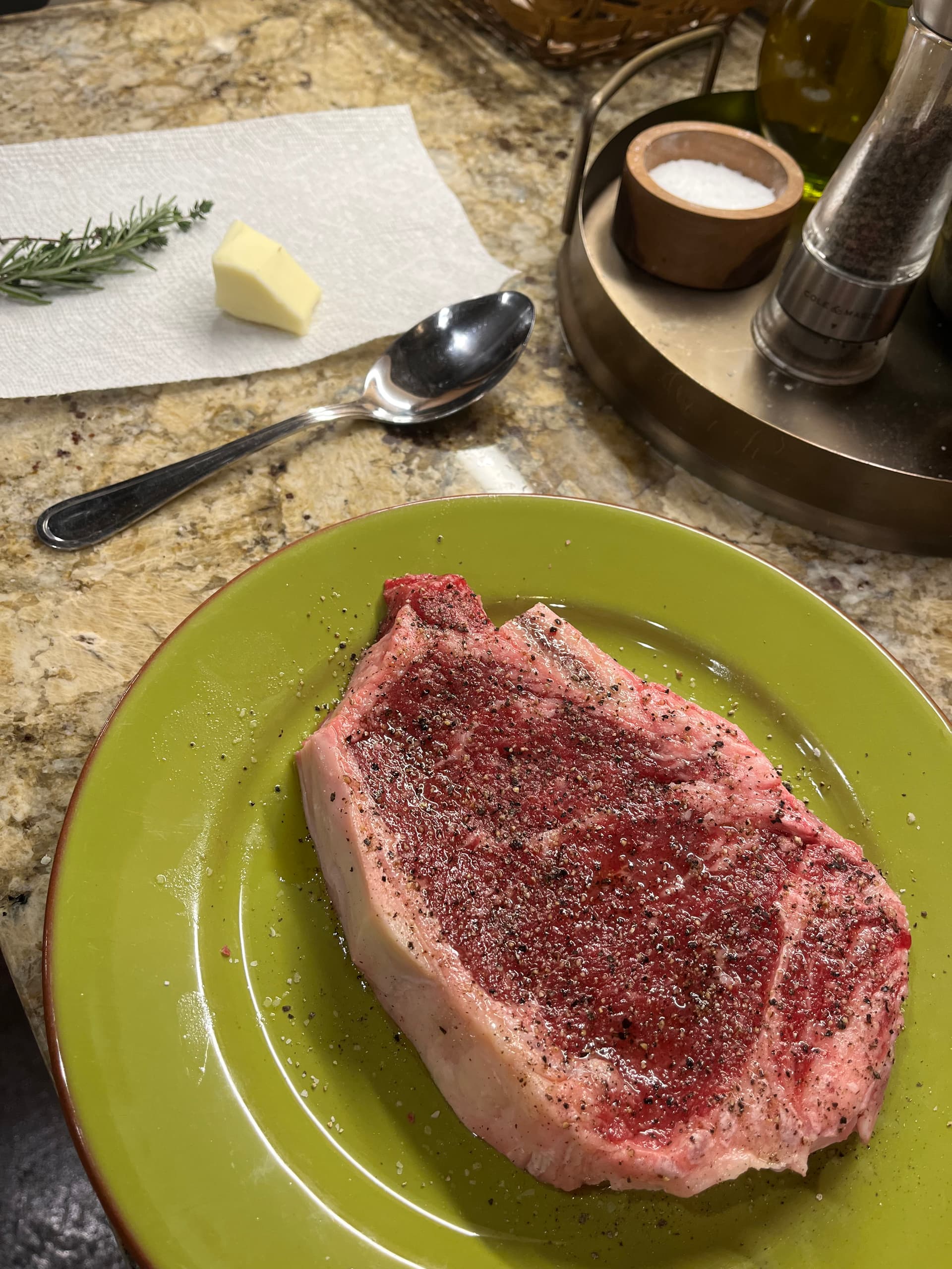 Powering our way through these ribeyes… last one is a little blurry, but I was ready to start eating!!!