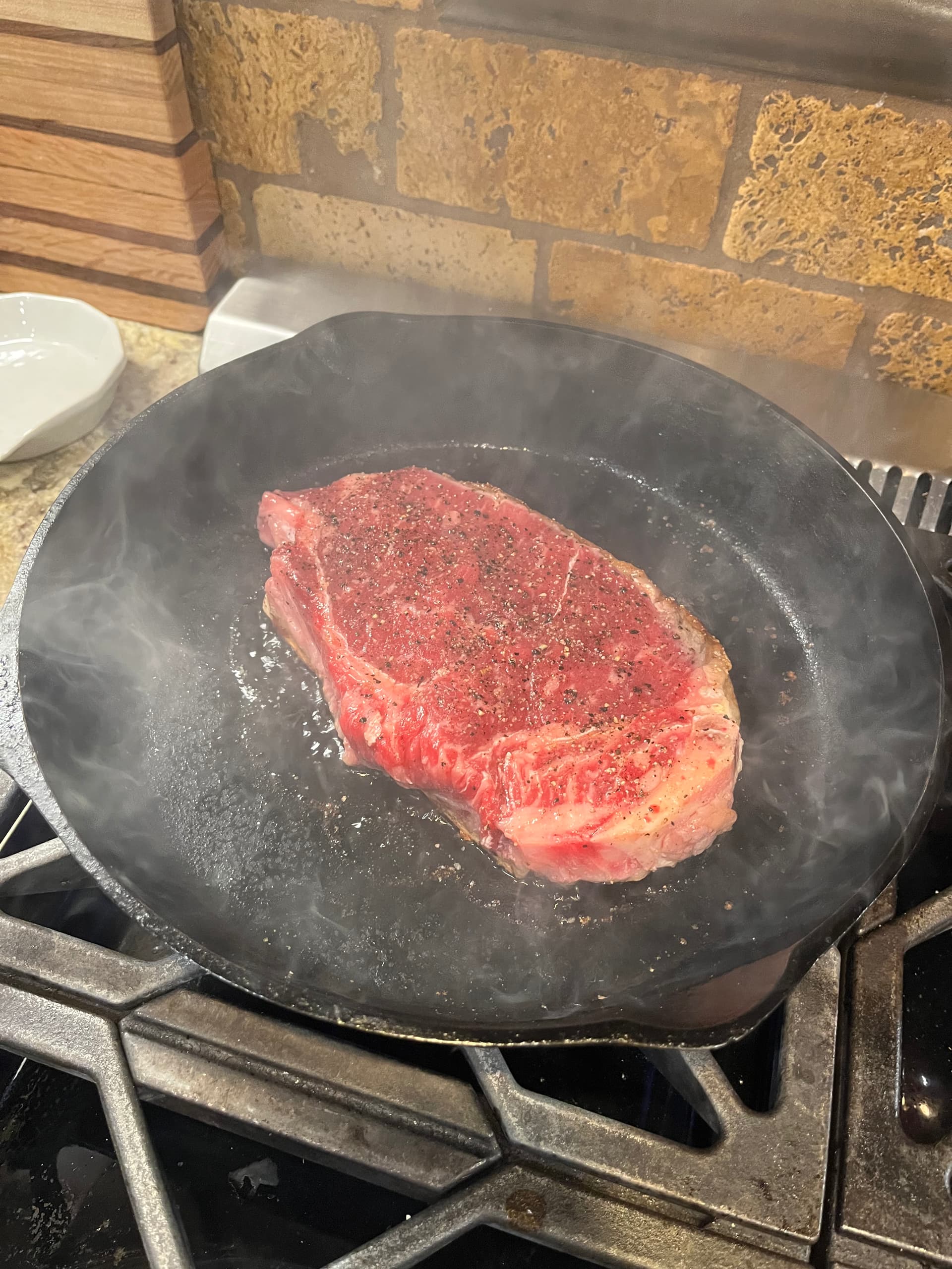 Just a plain old NY strip. It was frozen, threw in the circulator at 55 for about 30 minutes. Pulled out seasoned up then on the grill. Wife said it was extra beefy.