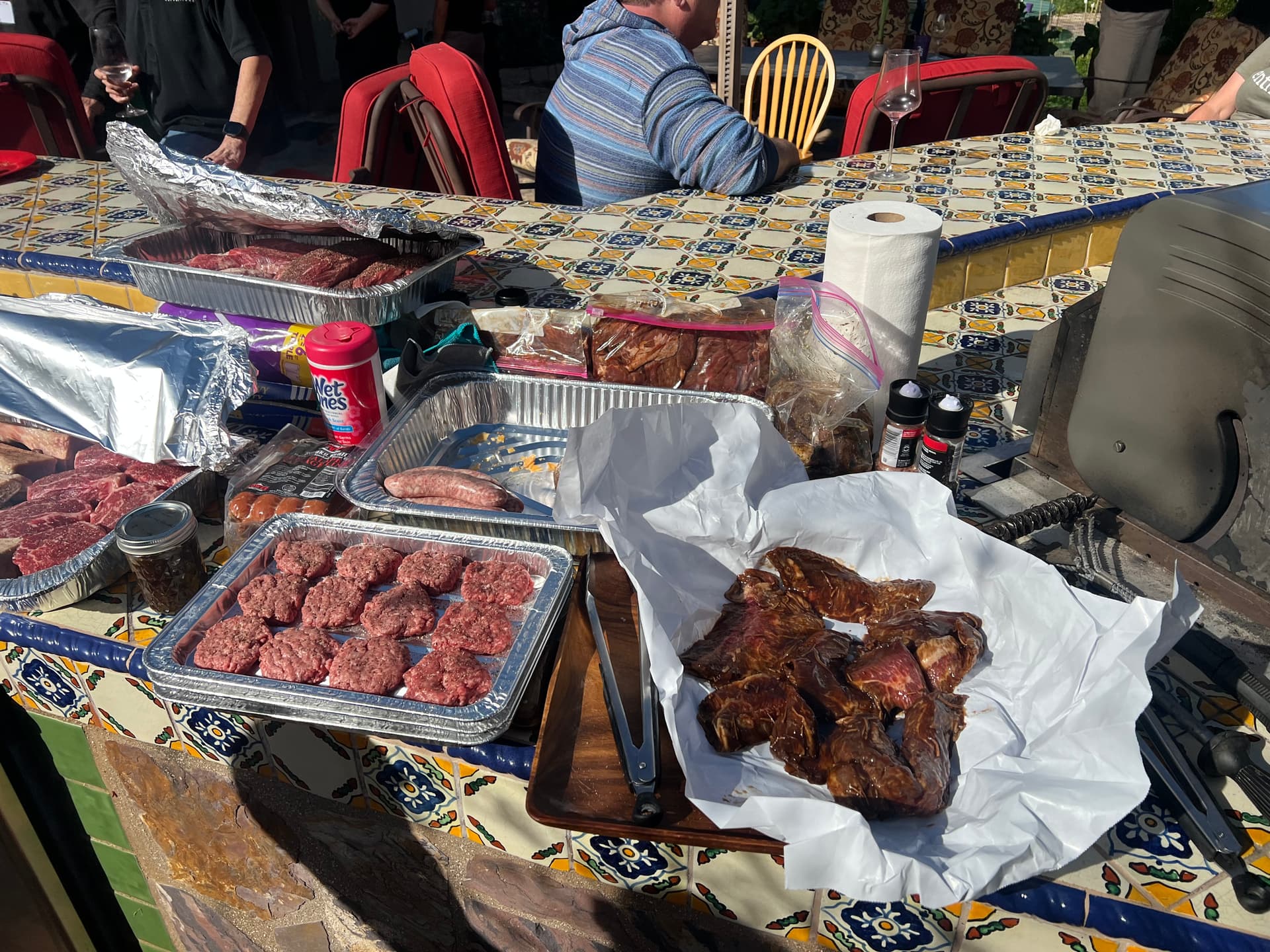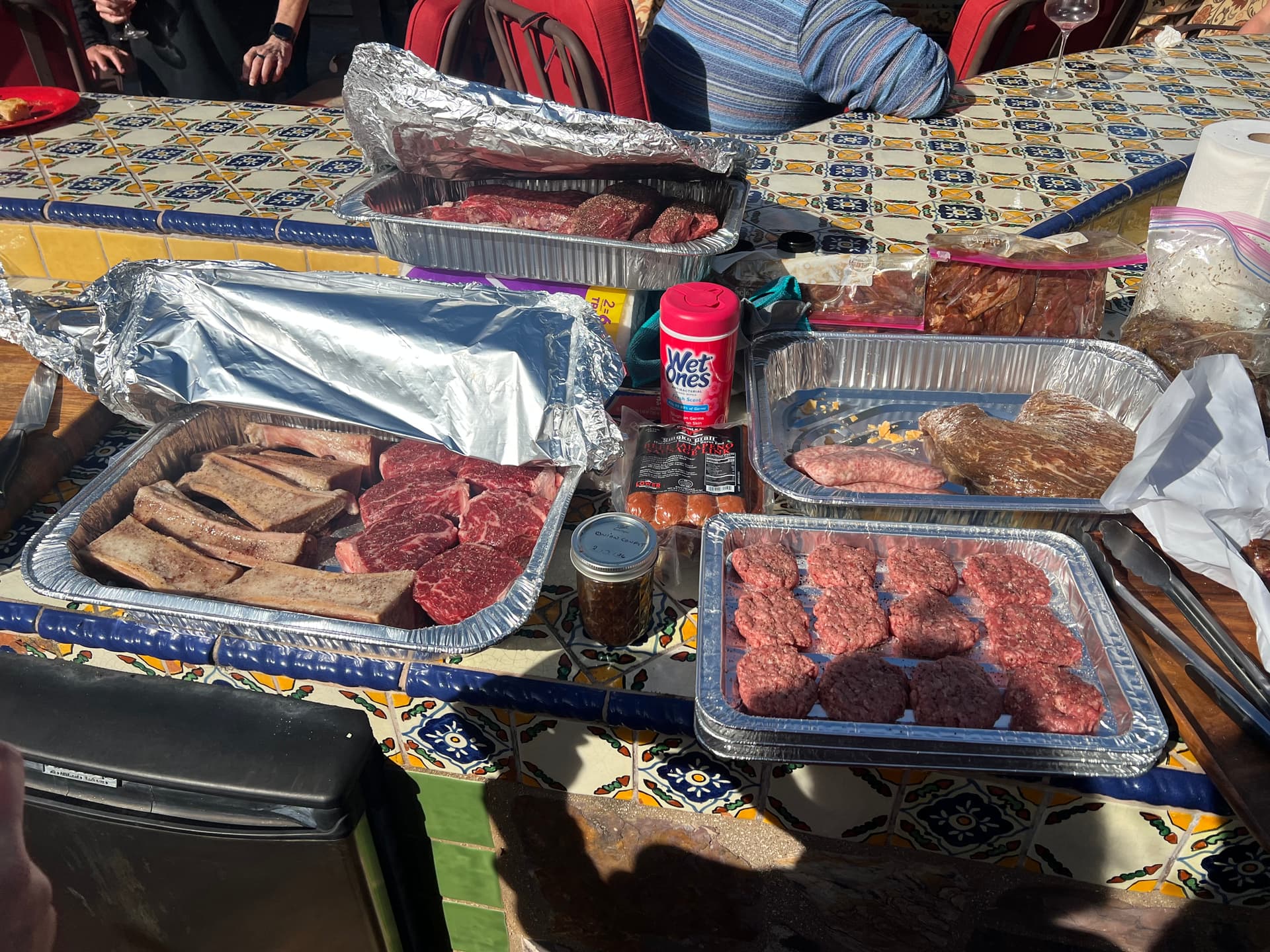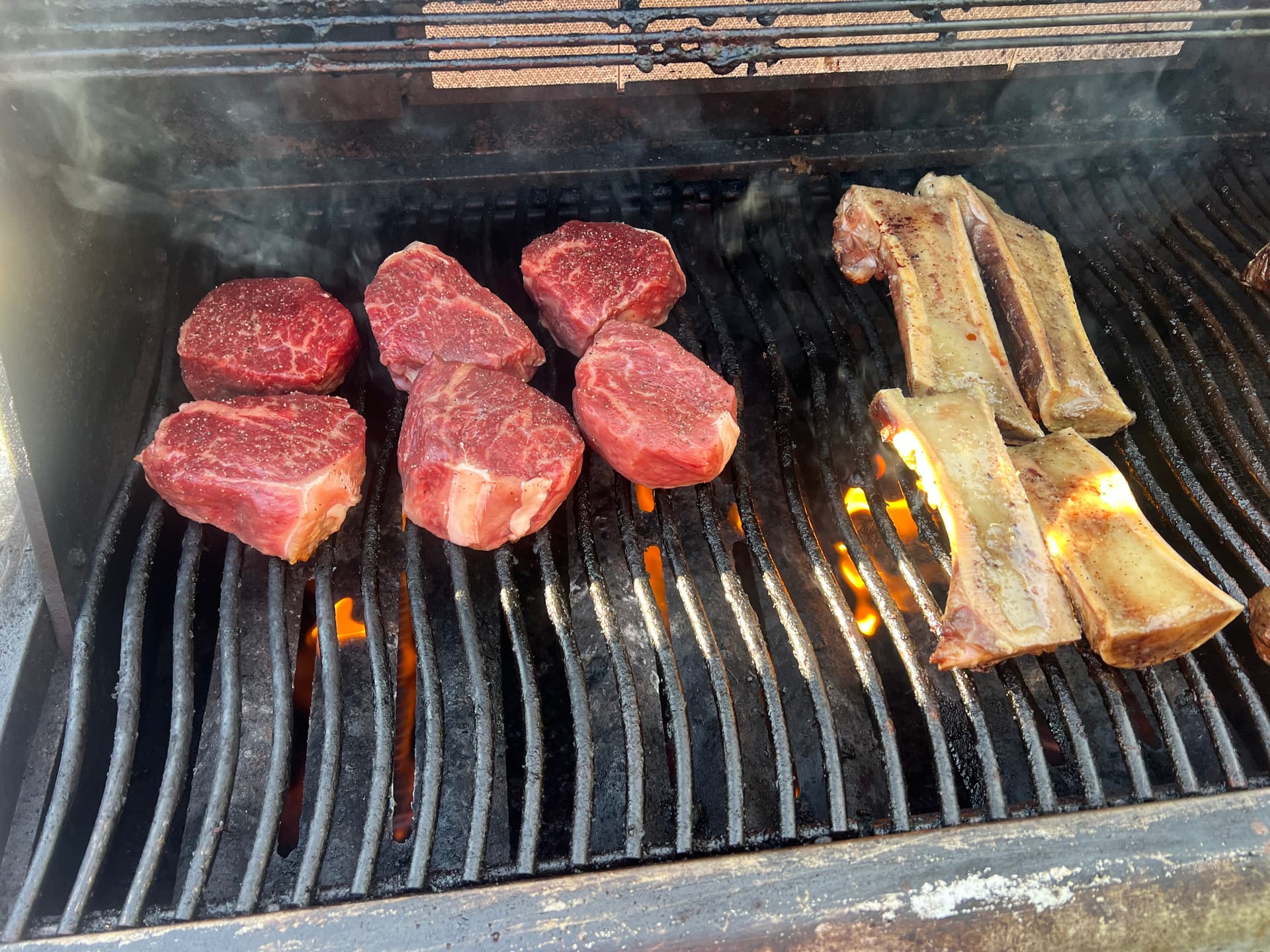 Grilled up some protein yesterday at @Frank_Murray_III for Falltacular. Morgan Ranch Strip Loin Medallions, Marrow Bones, Hangers, Chicken, Lamb Chops, Korean BBQ Short Ribs, Carne Asada, Wagyu Sliders, Tri-Tips whole and steaks, Iberico Hangers, Prawns, Sausages etc. 3-1/2hrs straight!