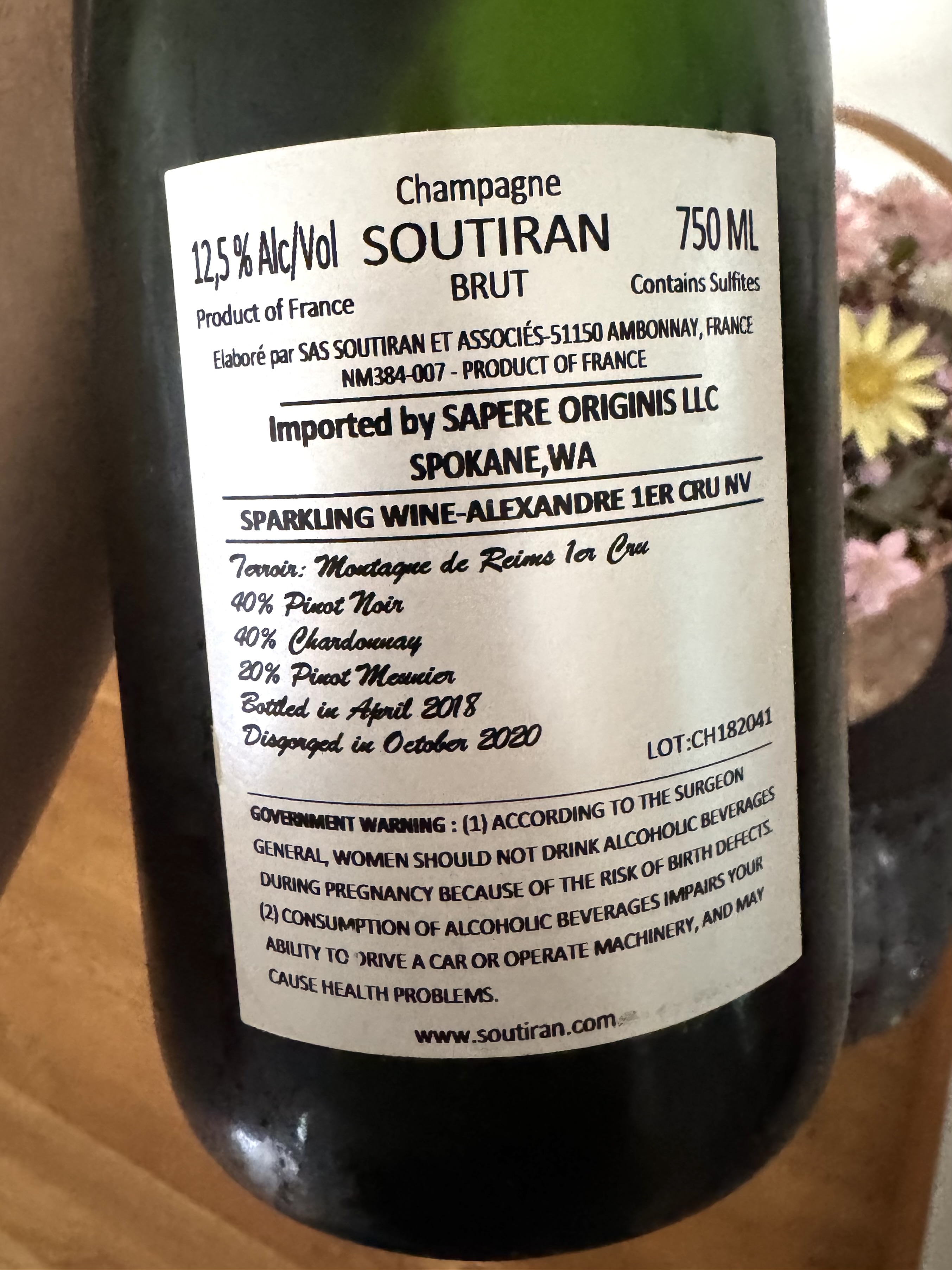 Back in the crypt, though with more of a “meh” wine than a dead wine. I used to buy Soutiran a lot years ago. Actually first tried it on a business trip to Southwest France. I doubt the wine is less good. I think my tastes in Champagne have been greatly elevated over the years. That said it was nice enough with non-geek friends. Everyone enjoyed it, but it wasn’t worth thinking about.