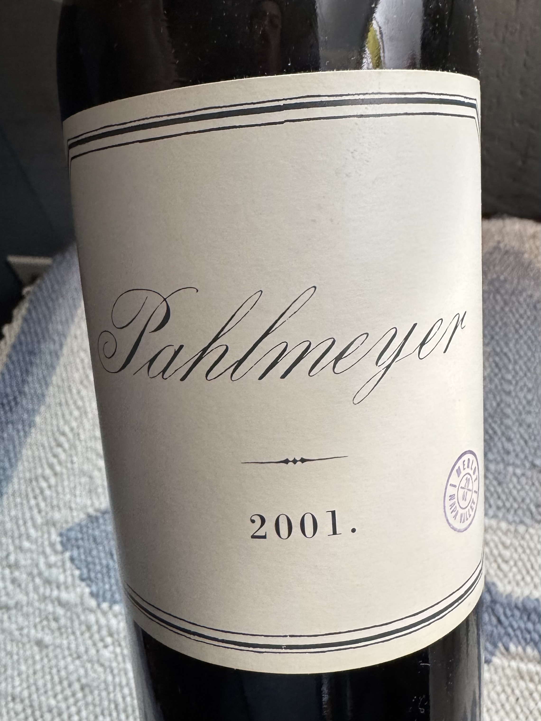 Tonight’s actual crypt selection is the 2001 Pahlmeyer Merlot. I have been through a few bottles of this with differing results. Tonight’s is a delight! There’s still good fruit, a little structure is poking through, and it’s not showing heat at all. The only problem is that it will likely put me to sleep before the Sunday Night Football game starts. It’s a little heady.