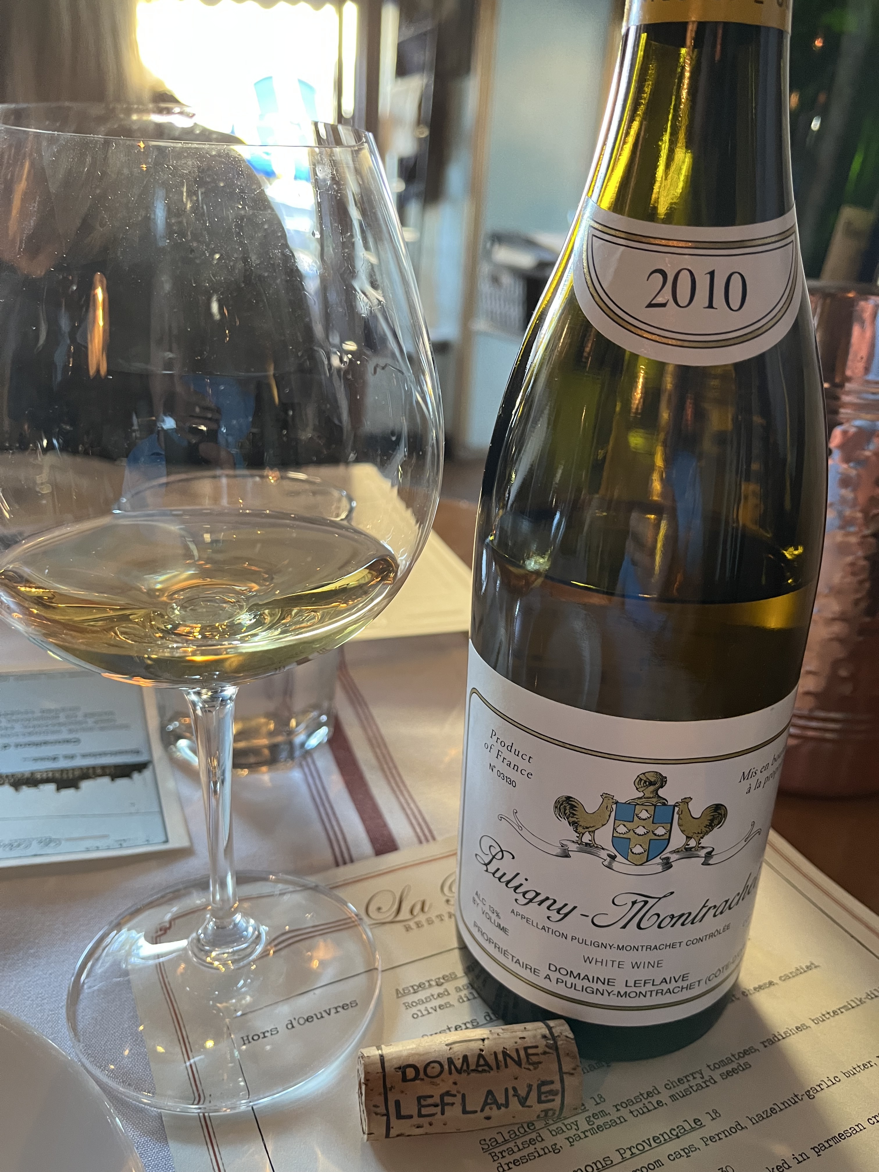 I guess we had just missed Taylor Swift and Bradly Cooper by a few days…the Leflaive shows the greatness of the 2010 vintage…yet this bottle not as grand as last one…little white mushroom and baked apples showing…nice volume and mouthfeel…honeycomb, lemon marmalade, white flower florals…crushed flint-stone…some reduction match strike…creamy smooth, yet lacking vibrancy…little dull…nice barrel vanilla spice…all in all Leflaive at age 14 for AOC satisfies! 93pts