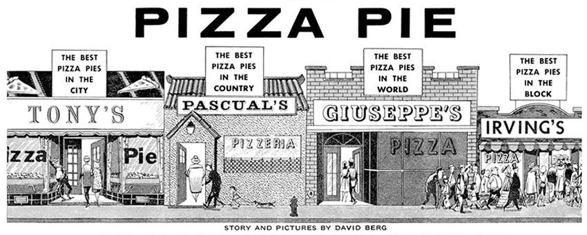 Late Nite with David Letterman used to do this skit where the interviewer would had down to the street and interview pizza shop owners who advertised along the lines of “World’s Best Pizza” or “World’s Greatest Pizza.” It was pretty funny.
