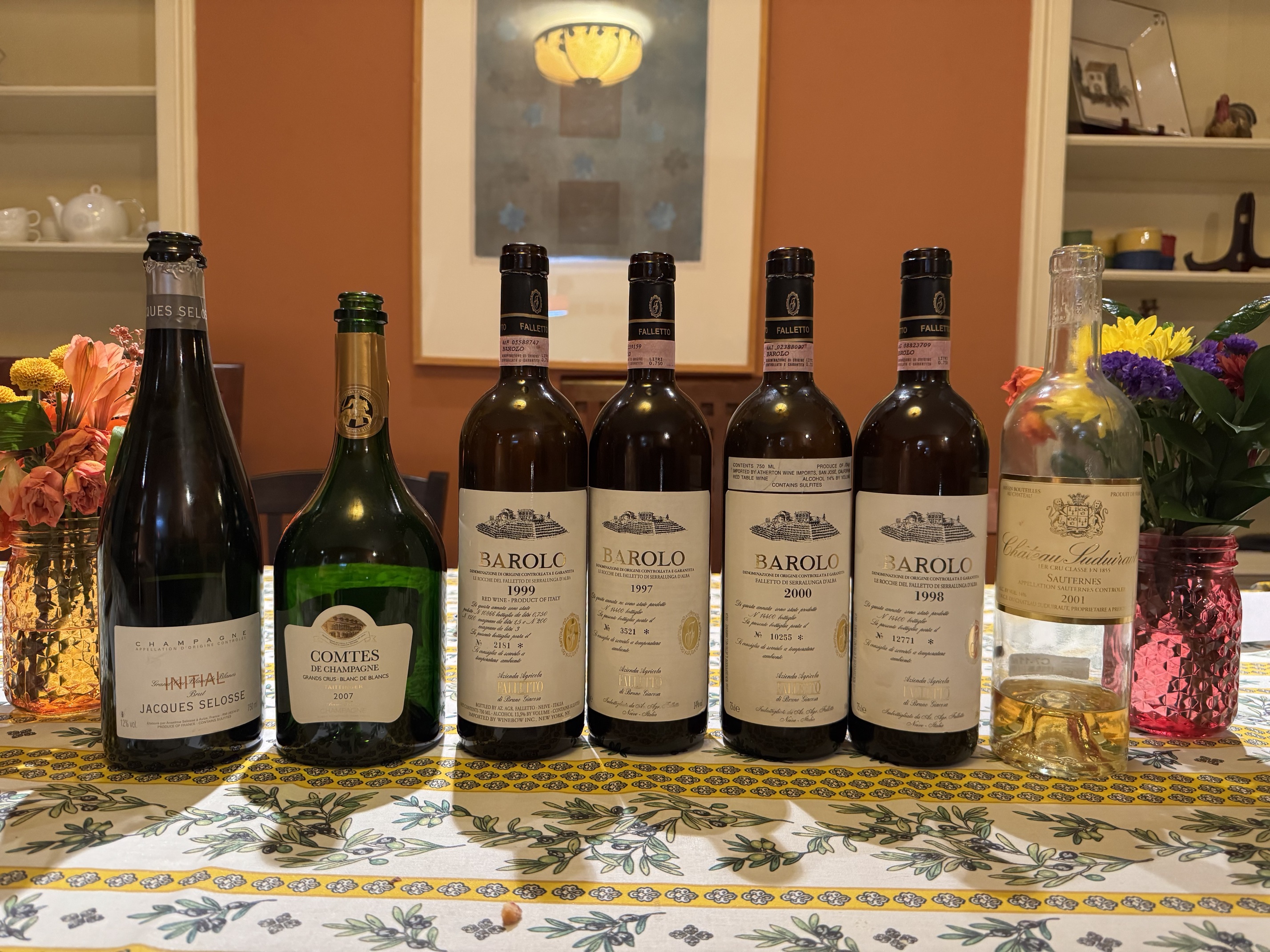 Big crew and feast. Everything showing nicely. ‘98 Giacosa was the best of the vertical(ish), but the ‘99 was so youthful and spritely, heading to the head of the class in 5 or 10 years.