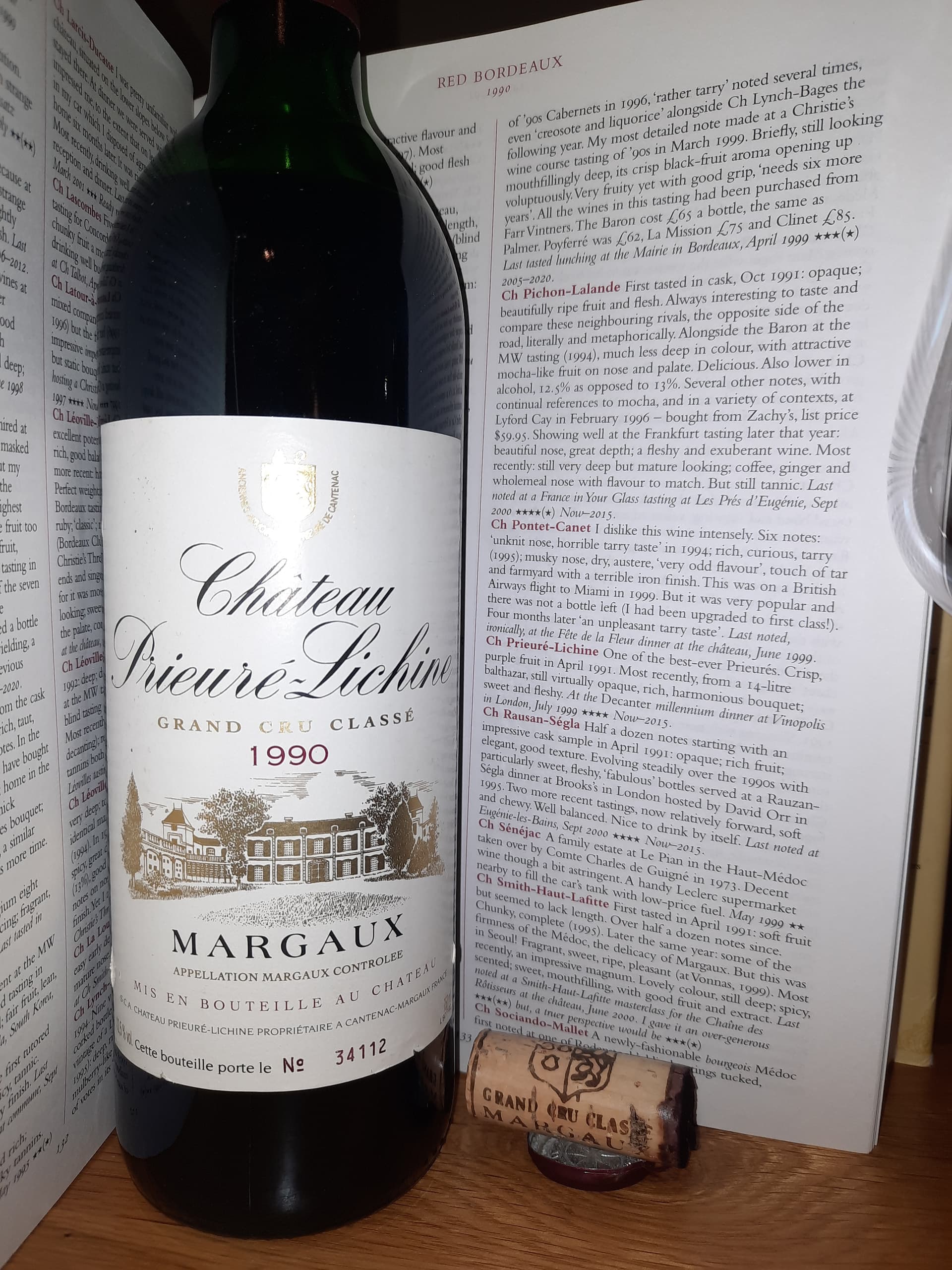 It’s been a while, but I remember Prieure-Lichine 1990 as a good Bordeaux with lovely fruit (a bit plummy), medium depth and decent length, but not very complex, lacking elegance, but a satisfying drink with food