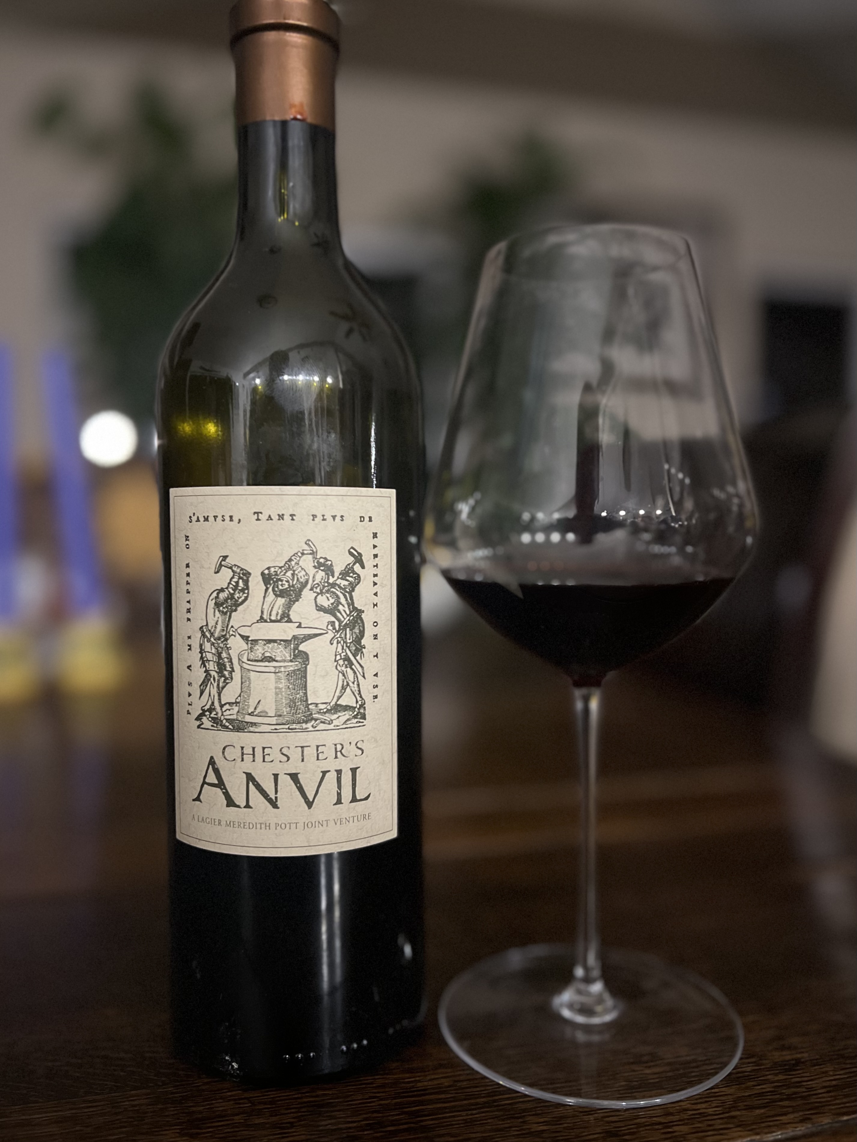 When I finally met Aaron a few yrs later I asked him about the Chester’s Anvil wines. He told us a funny story about the brand’s inspiration- a Napa old-timer, farmer named Chester, I think on Mt Veeder who drove around on an old tractor. I’m a bit fuzzy on the details, but I think Chester asked Aaron (and maybe Steve Lagier) to help move an old anvil which turned out to be huge and impossibly heavy.