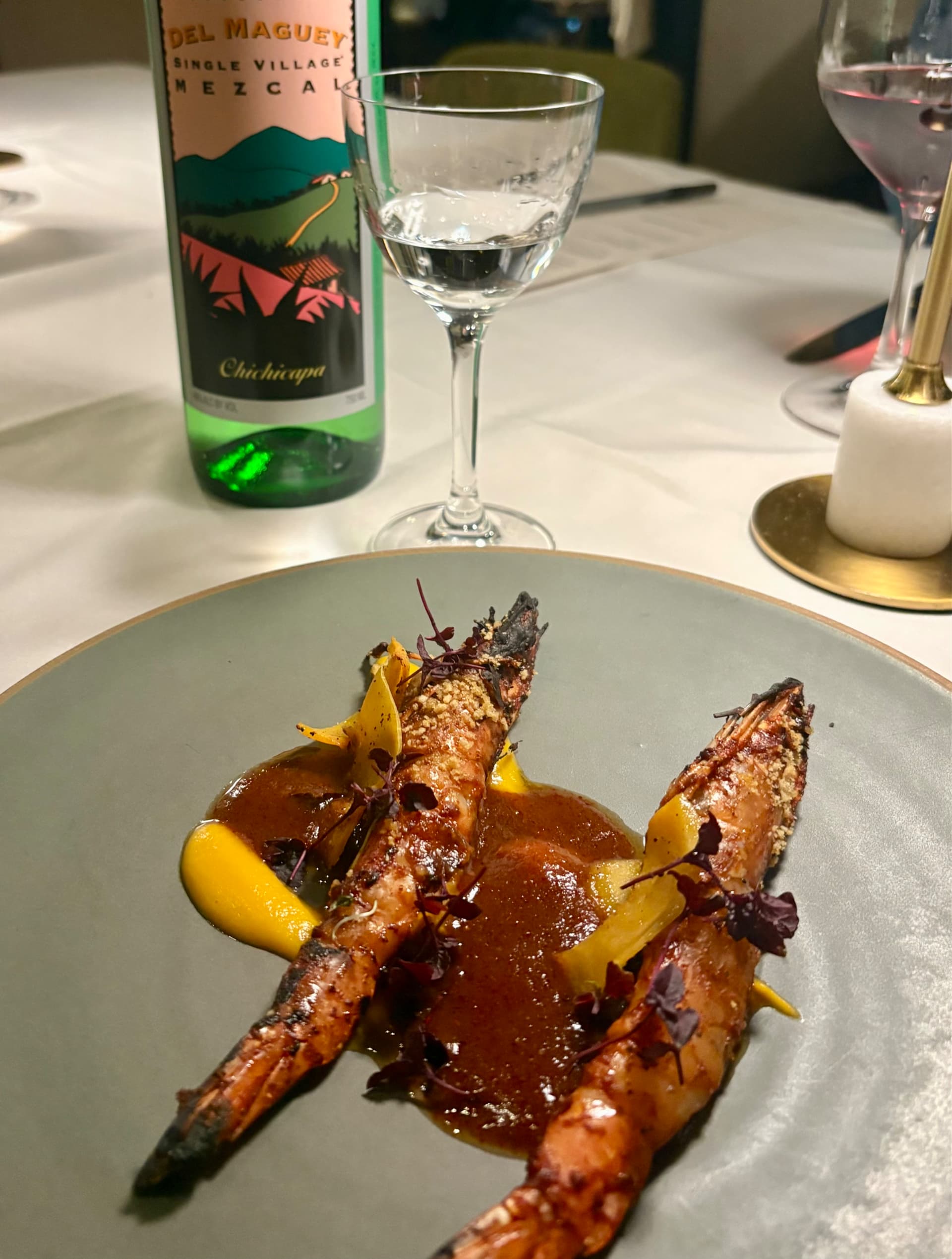 One of the wine pairings at Topolobampo and paired with grilled crystal blue prawns in a red mole sauce. A blend of 66% Grenache, 18% Syrah, 8% Counoise and 8% Mourvedre. This was the best of the wine pairing wines. It had integrated tannins and a silky smoothness. Light to medium red color. Mostly cherry notes with some berries and a woodiness on the finish. 91 points.
