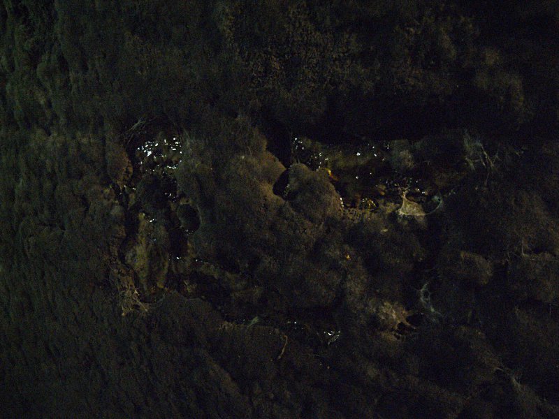 One of the longer straight stretches of cellar, the walls black with mould.