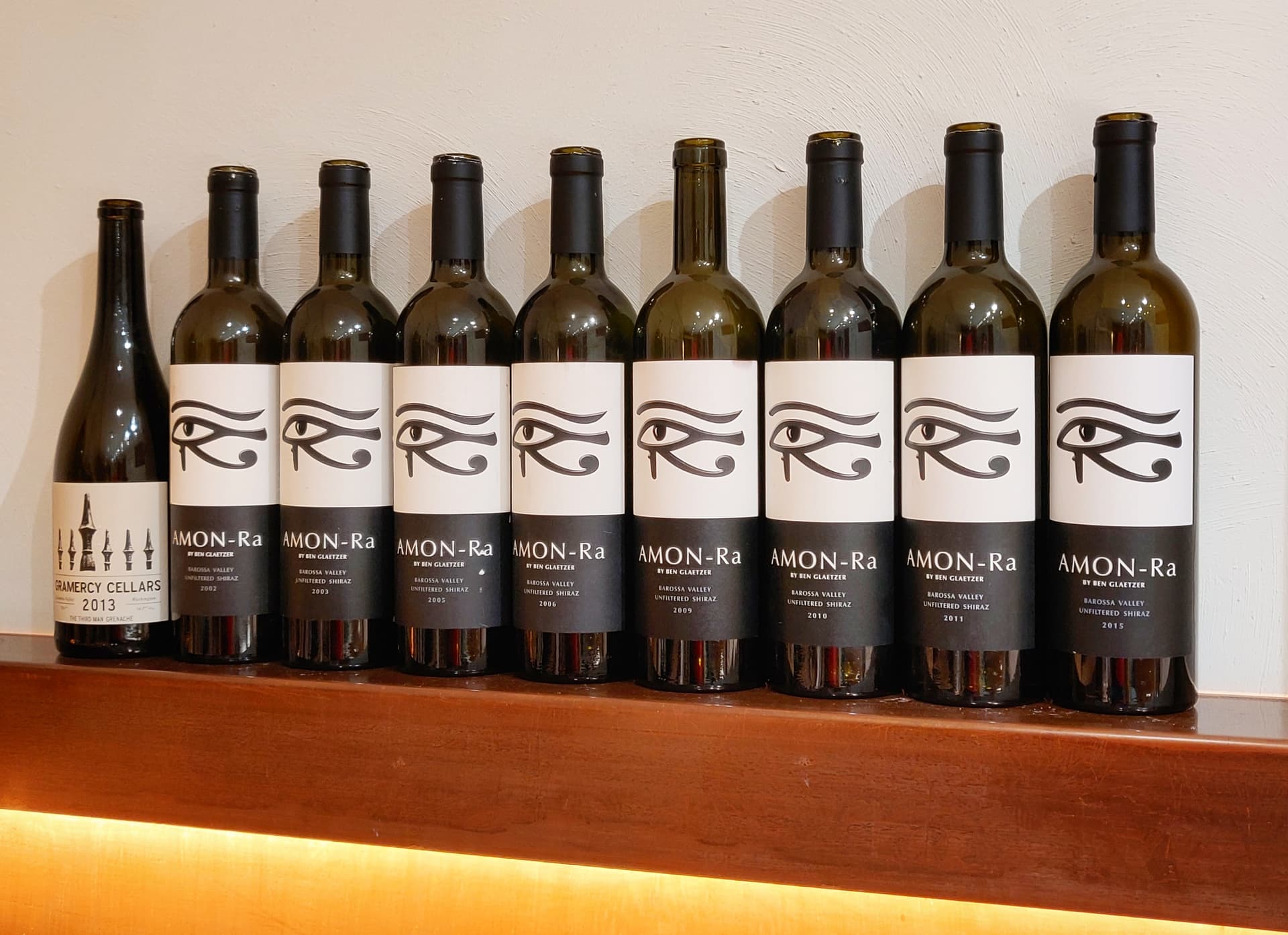 This tasting came into being after we had a bottle of Ben Glaetzer’s Amon-Ra in another tasting and some people commented how they had a bottle or two of Amon-Ra in their cellar. Once it became obvious that we actually had enough bottles for a serious vertical, one was quickly set up.