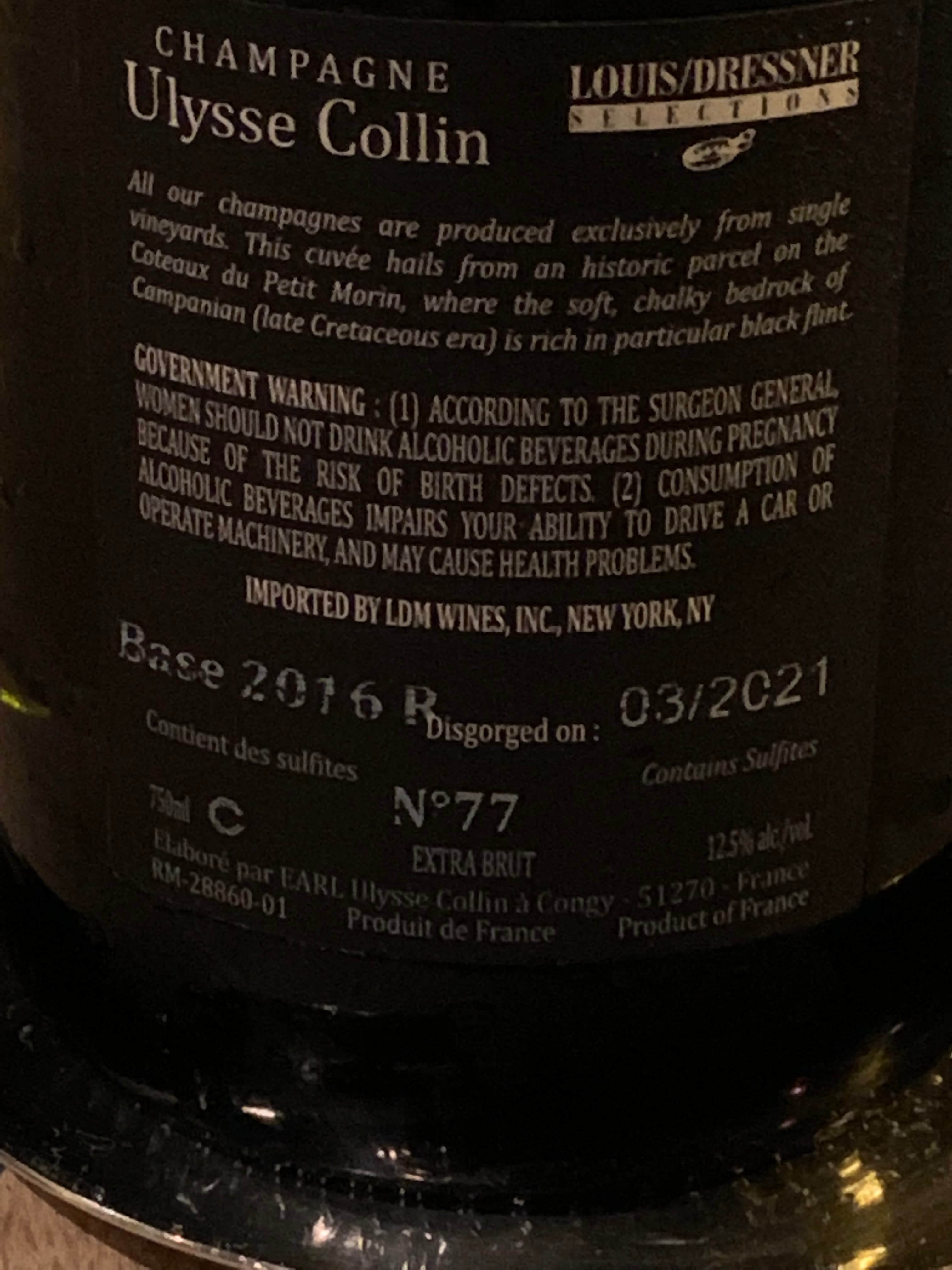 Ulysse Collin Blanc De Blancs Extra Brut Les Roises, Base 2016, disgorged 03/2021.