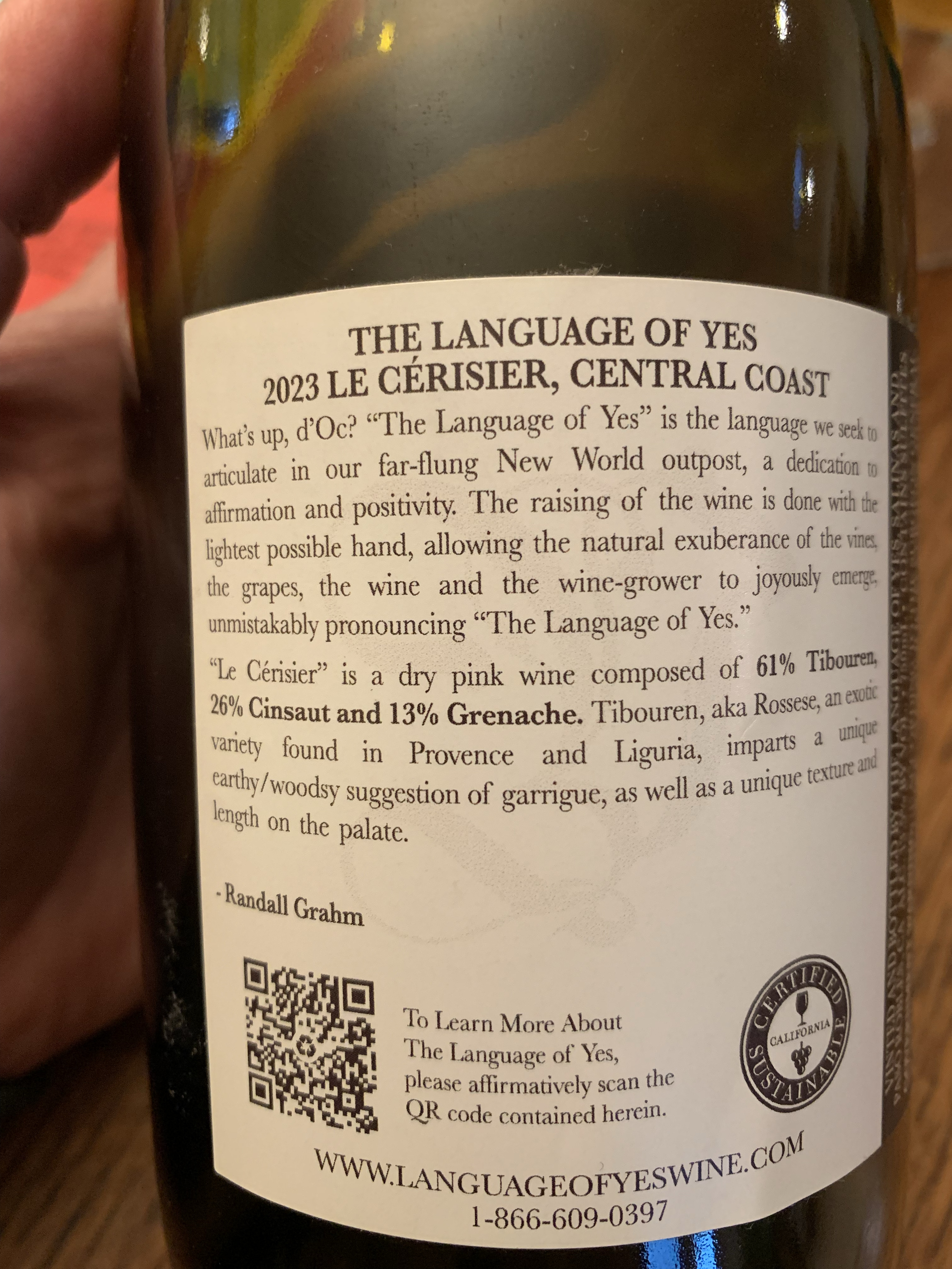 As Joe says, the best known Tibouren producer is Clos Cibonne in Provence, making excellent roses and also some red Tibouren. While not similar to what you list here, I will say that Cibonne rose has some oxidative quality, with aging under flor. I don’t think that is a feature of the grape, but rather the winemaking. It is possible that Randall’s goal here was influenced by those wines and things may or may not have gone off the rails. The oxidative impact in Cibonne wines is mild in my experience and definitely does not veer into butterscotch.