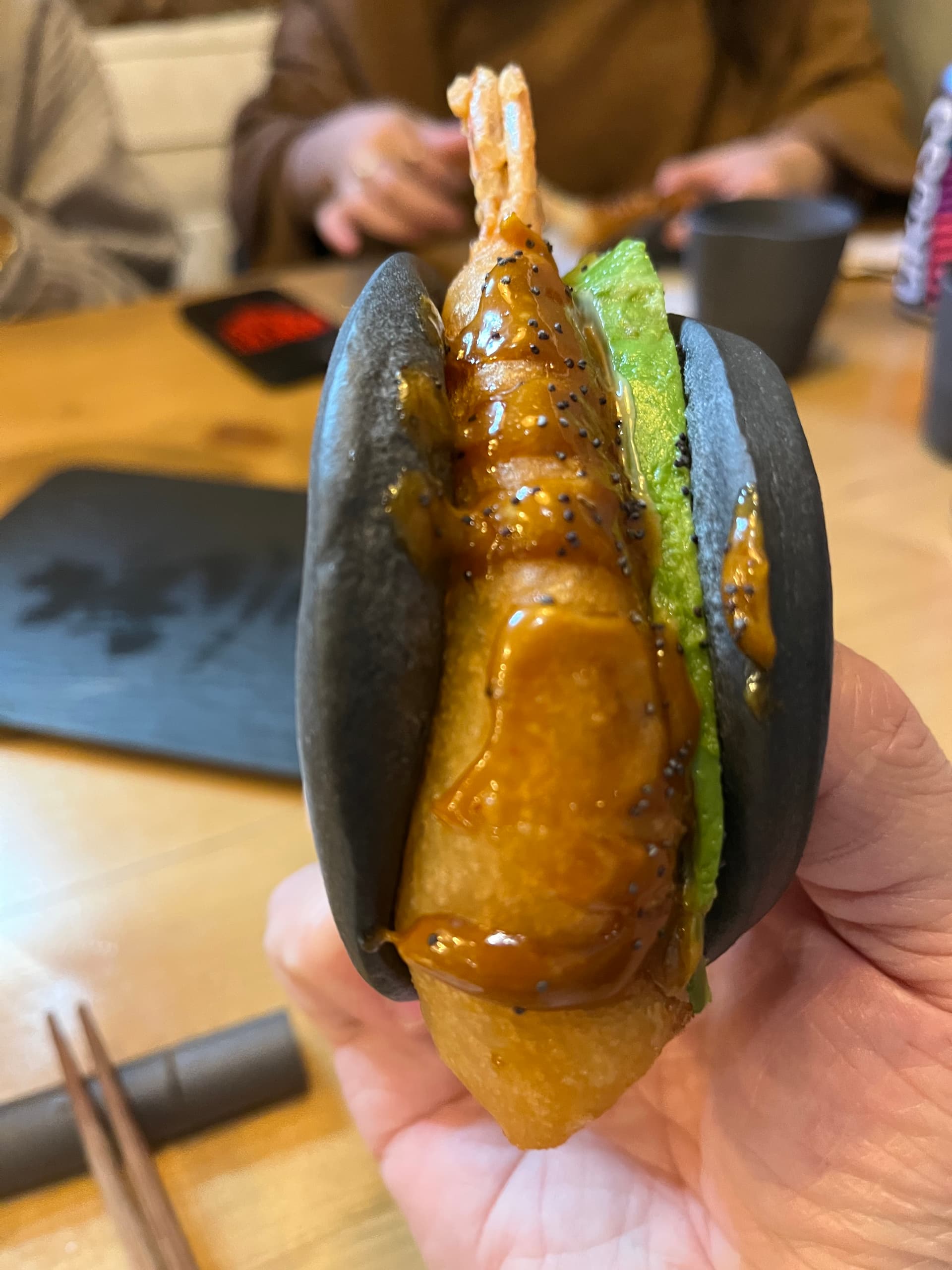 So energetic. Beams of electric-citrus spiked acidity. Saline for days. Quenching. Killer with salty/spicy seafood driven menu from Casa 887 (tempura prawns on squid ink bao below). -